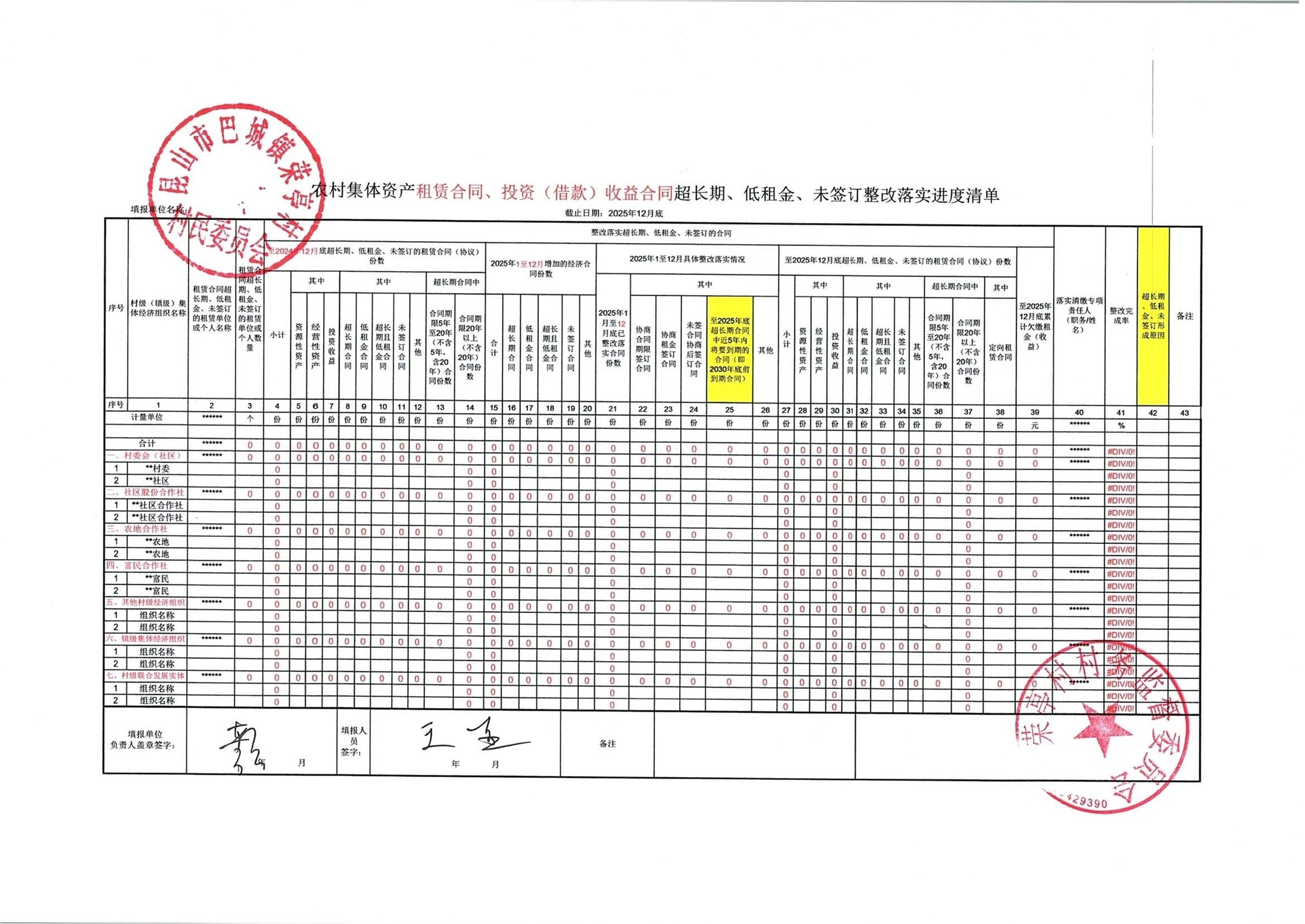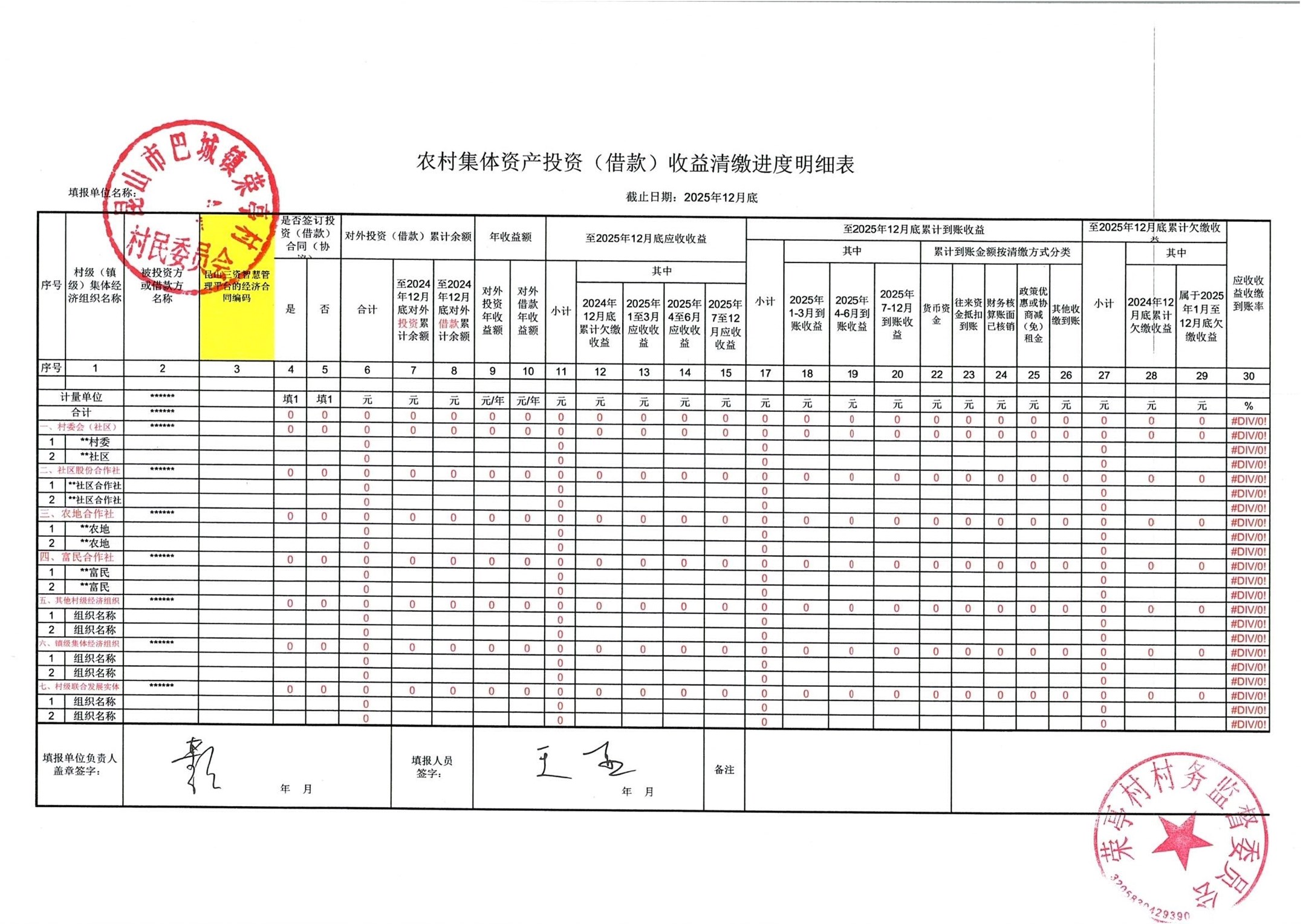 2025年第四季度农村集体资产经济合同收缴进度调查表