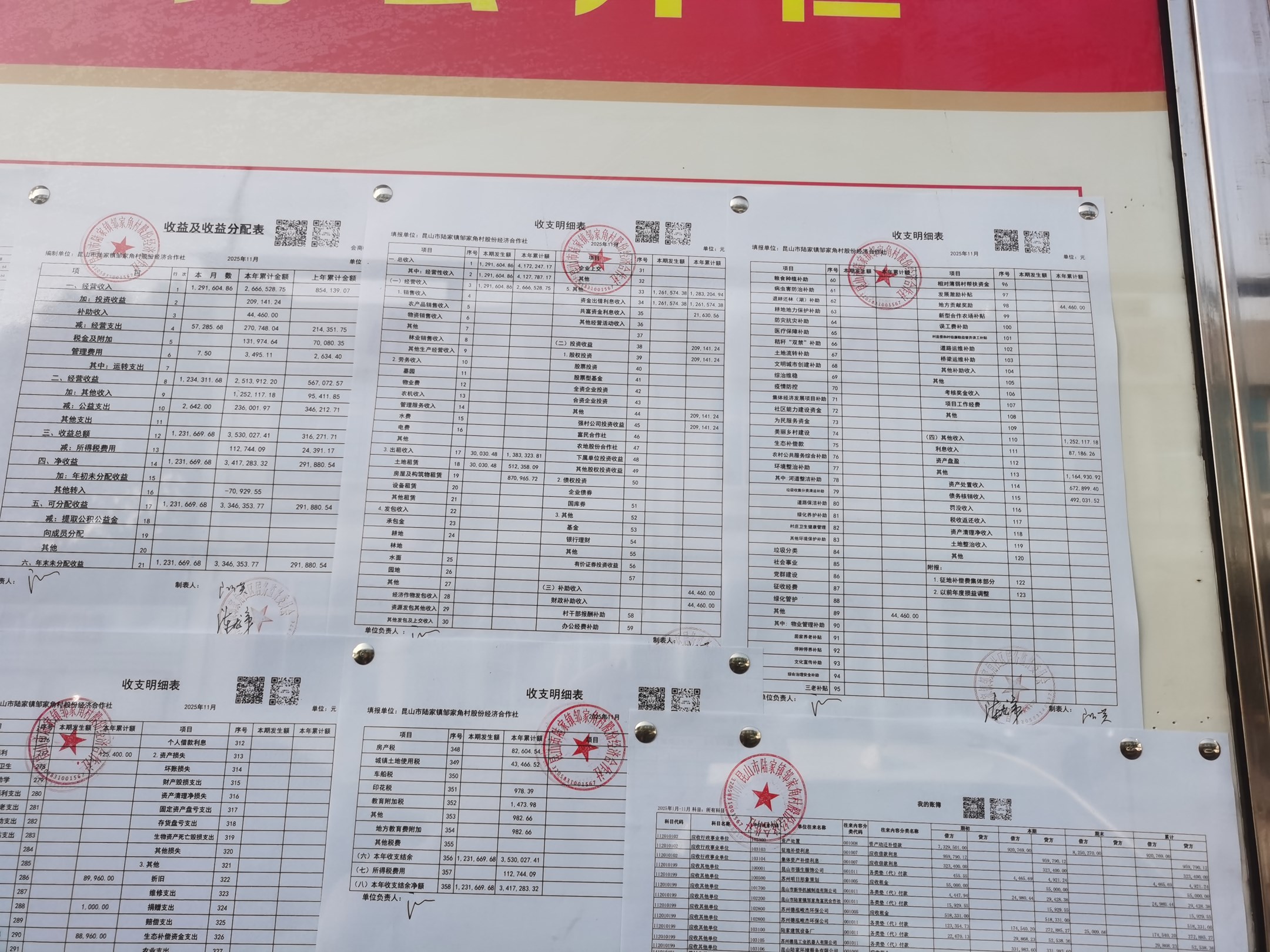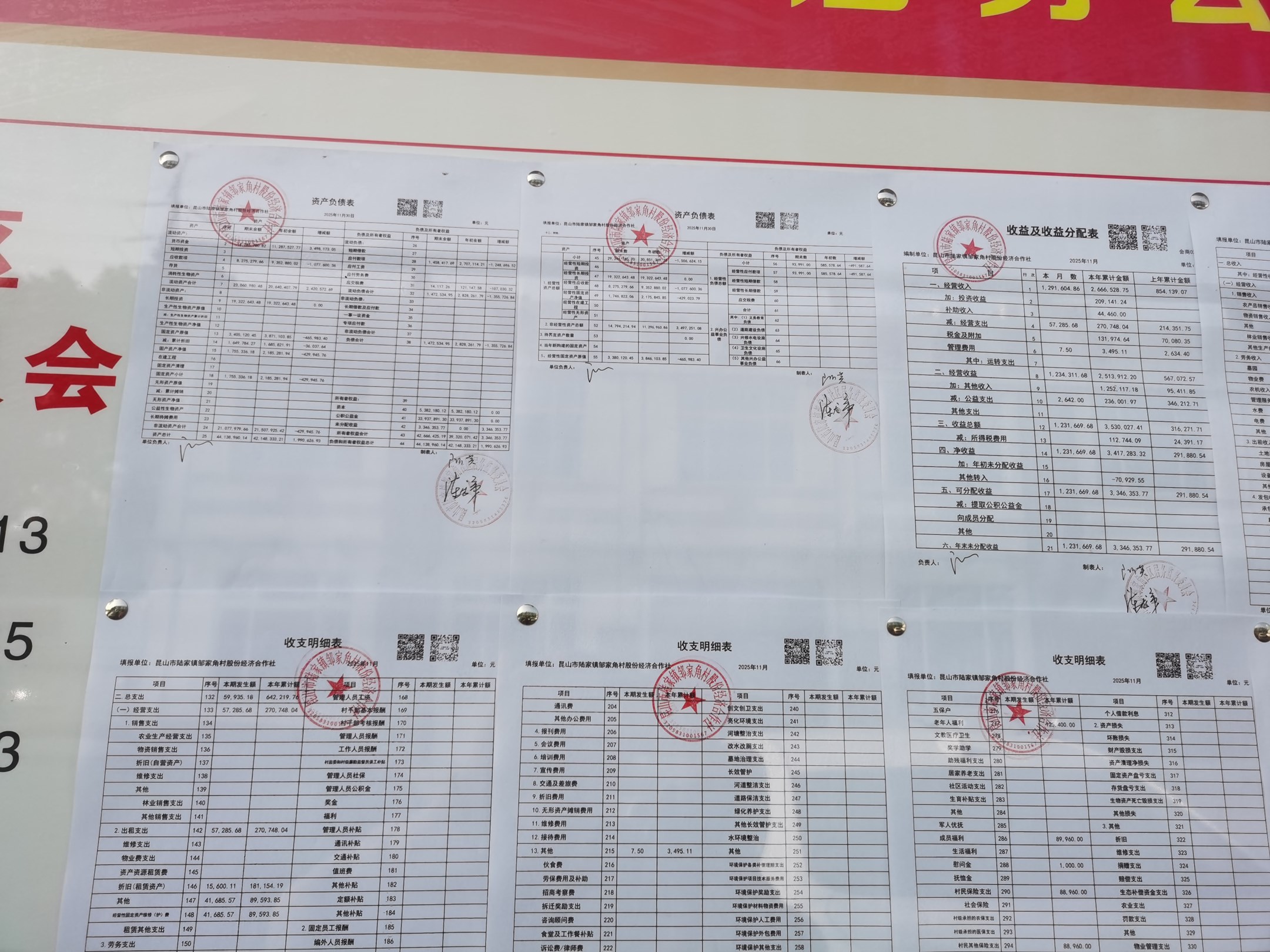 邹家角村股份经济合作社2025年11月份财务公开