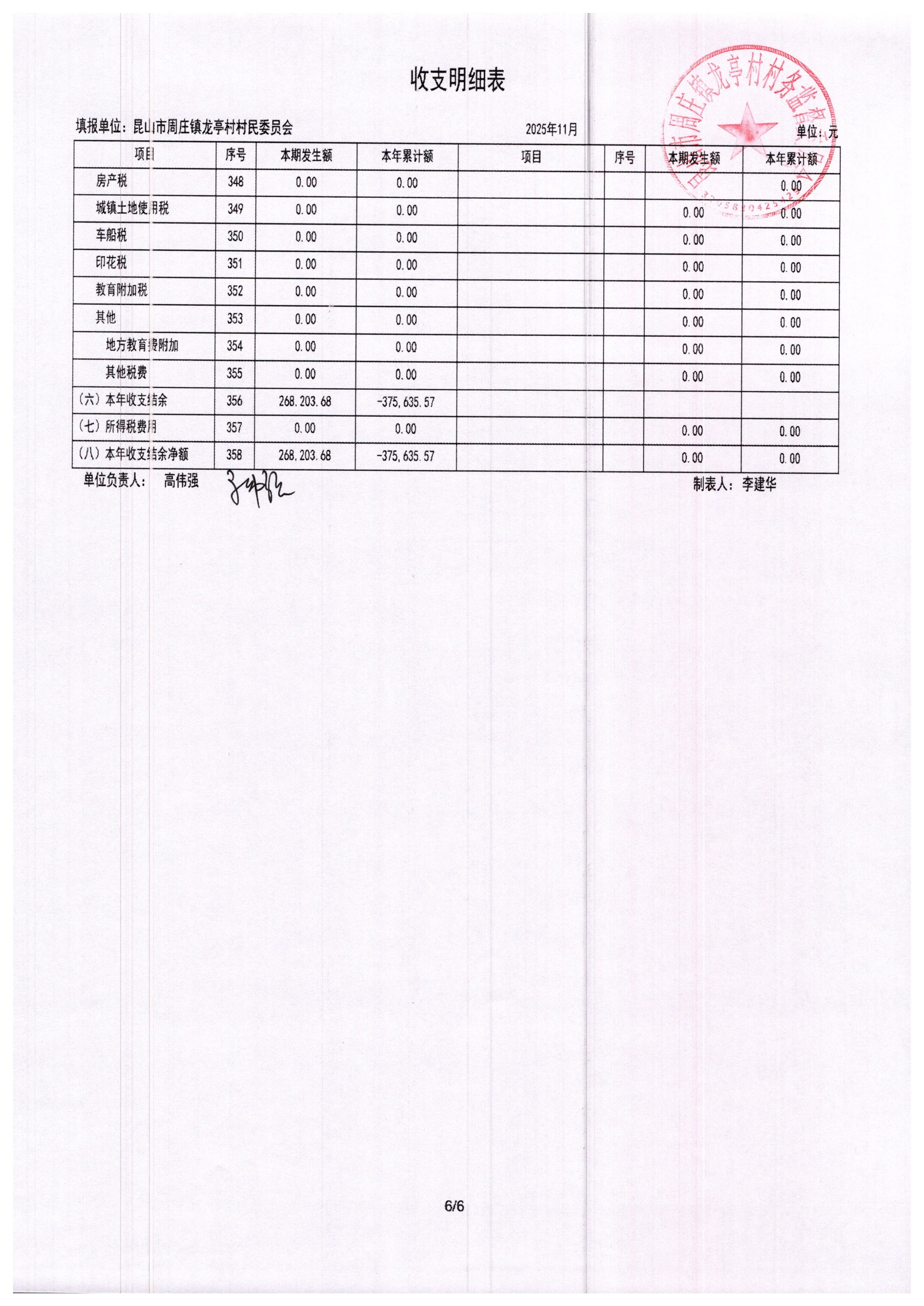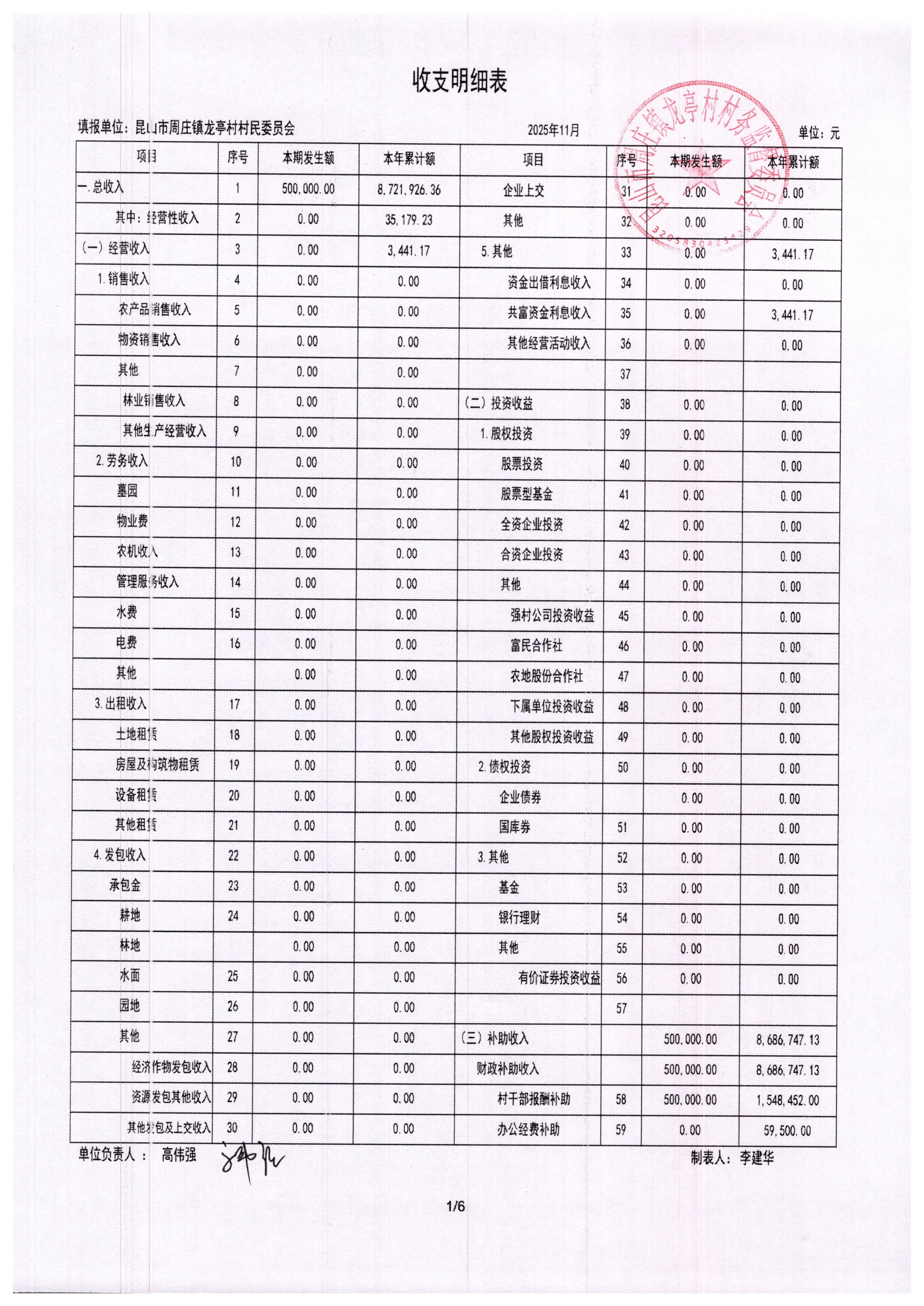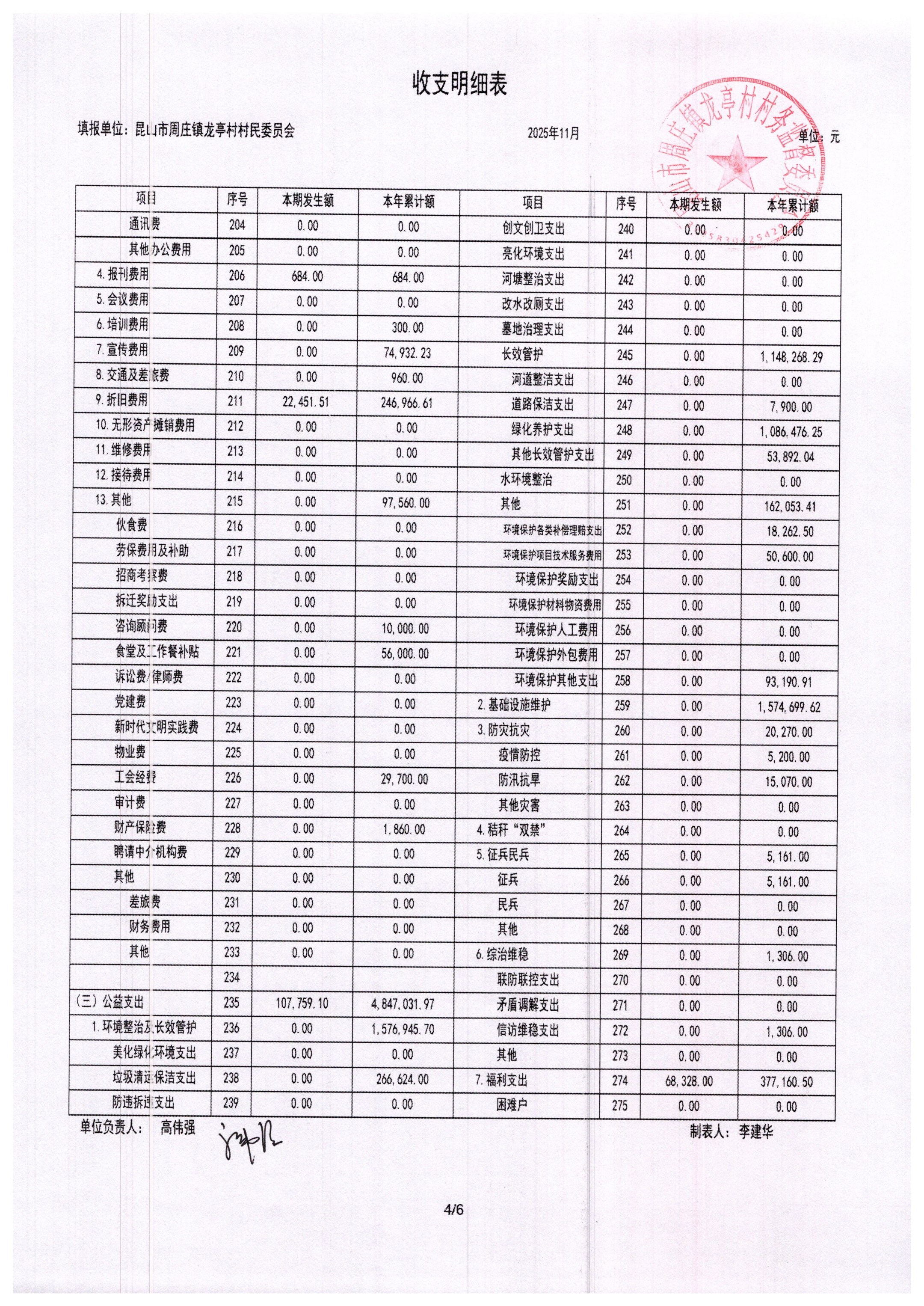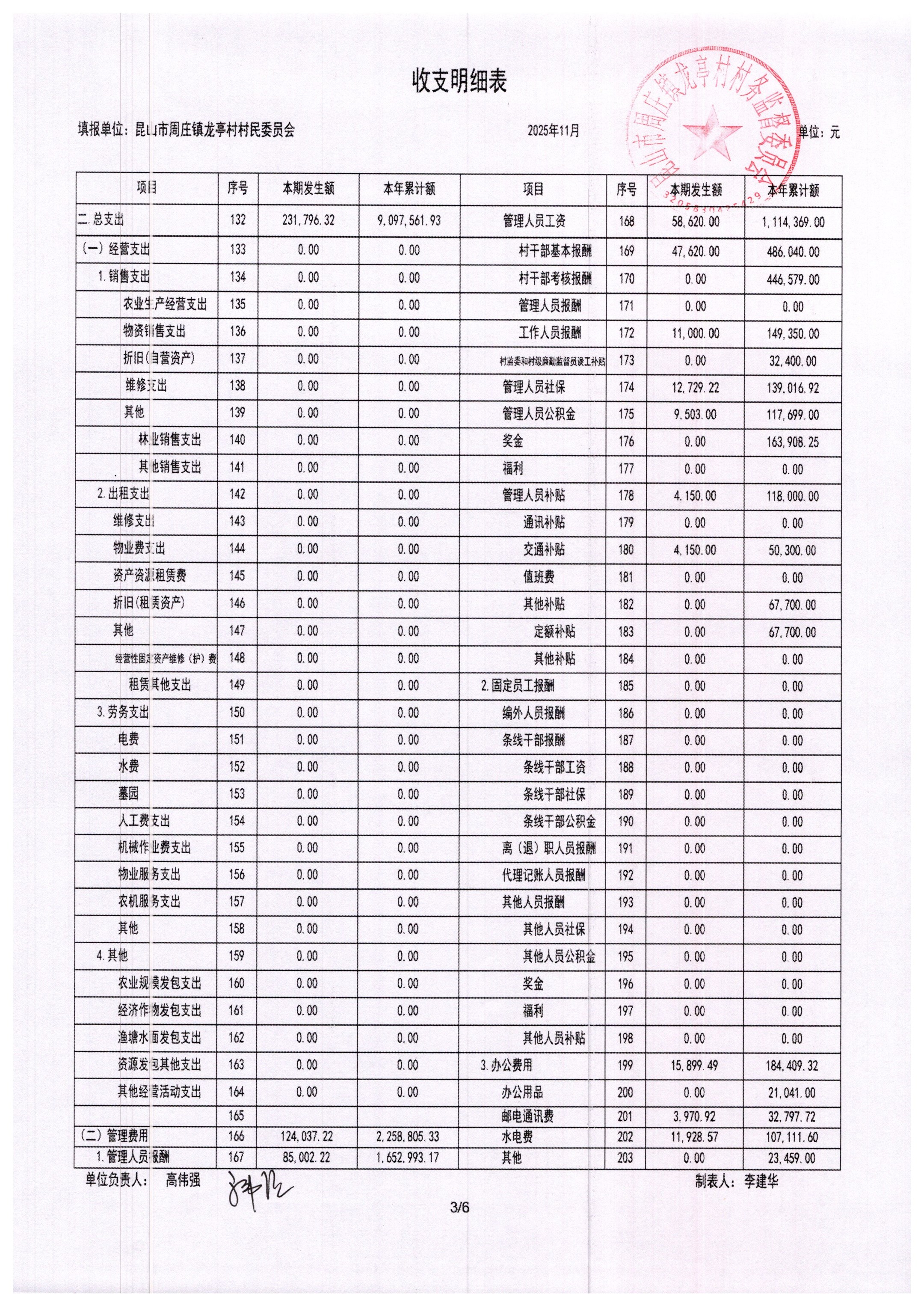 2025年11月村委会财务报表