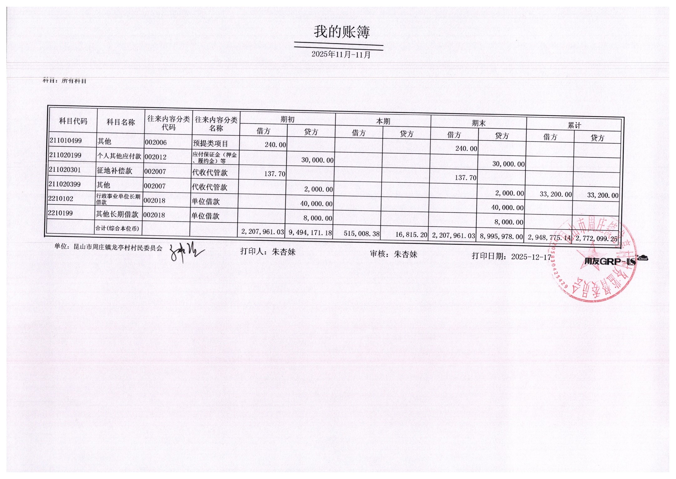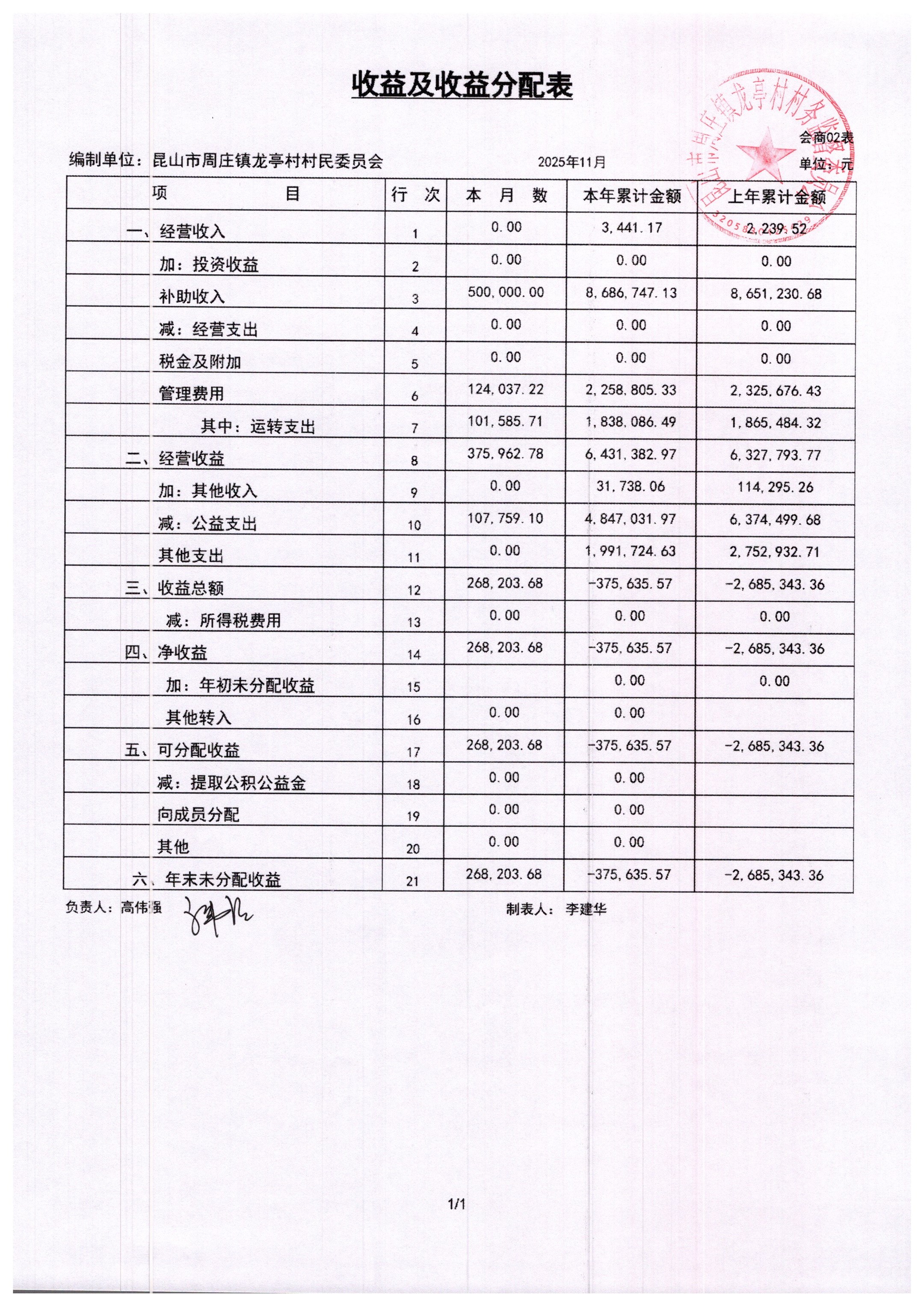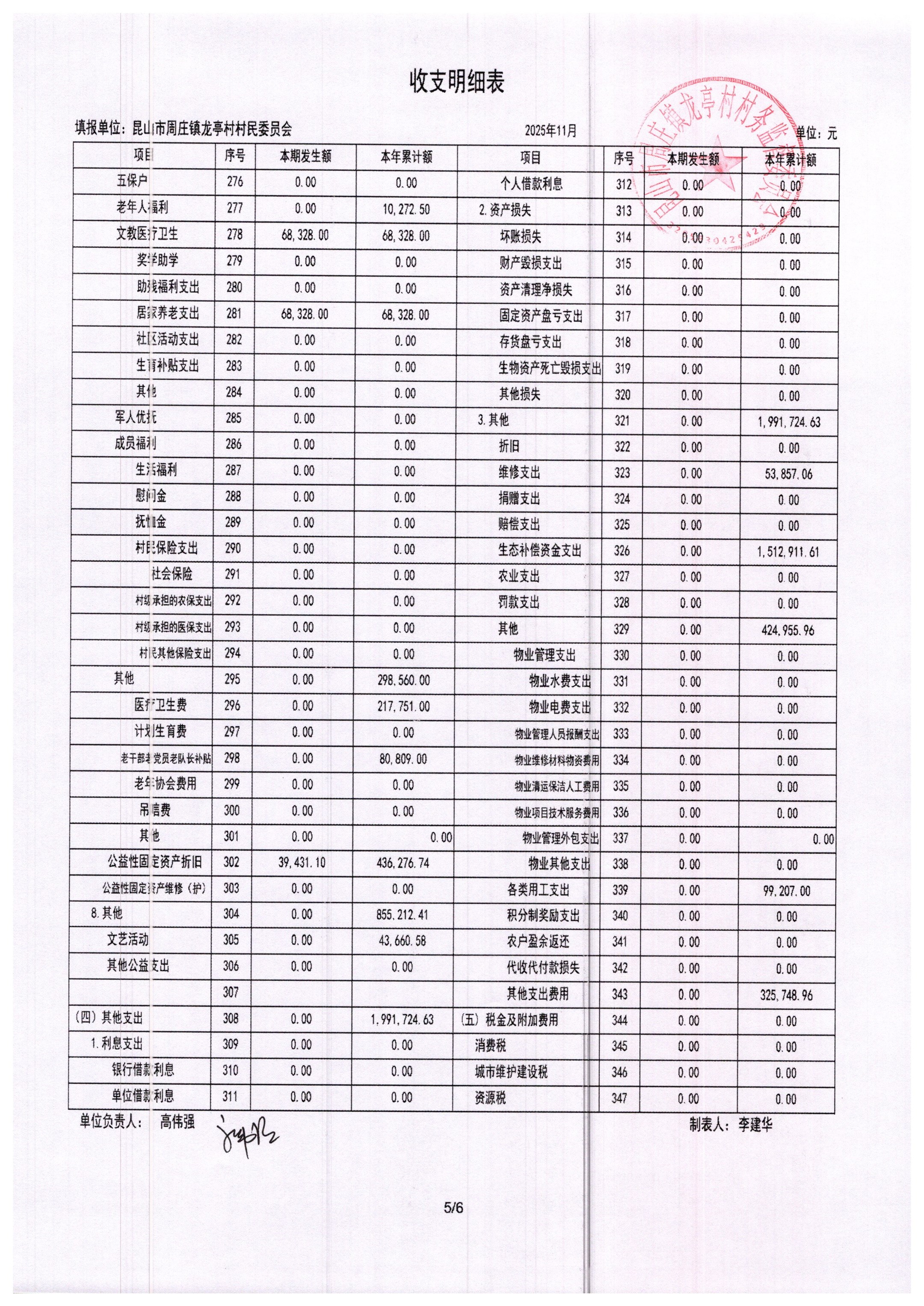 2025年11月村委会财务报表
