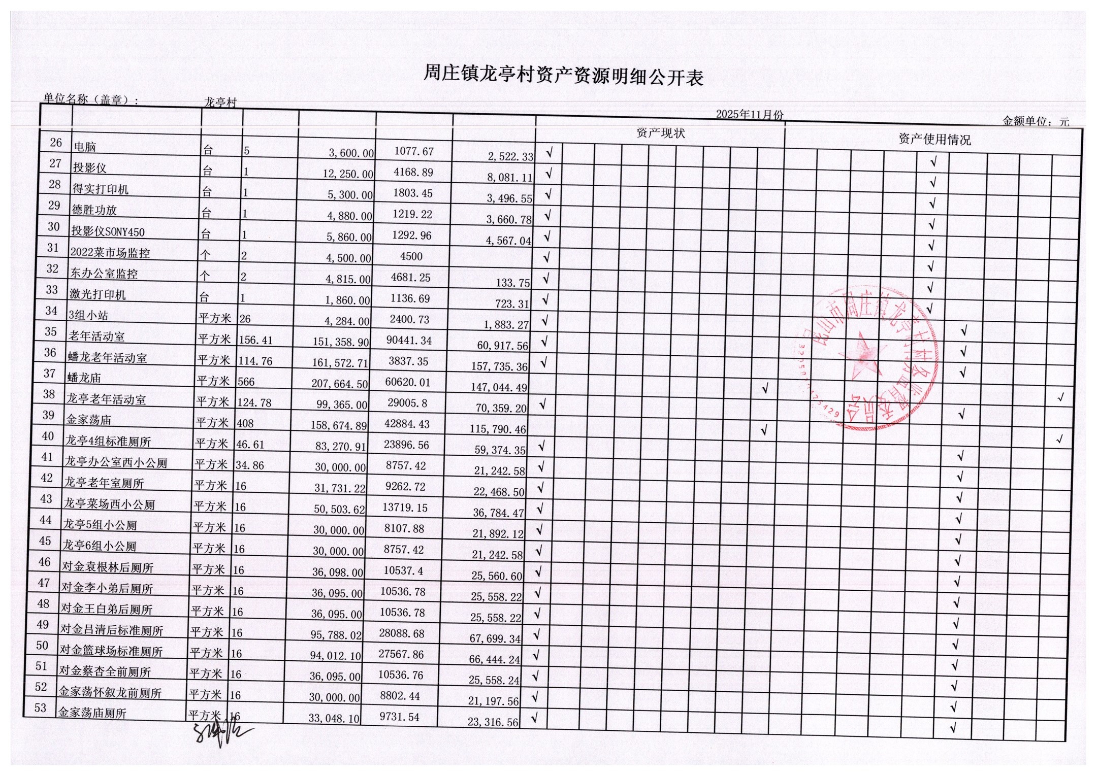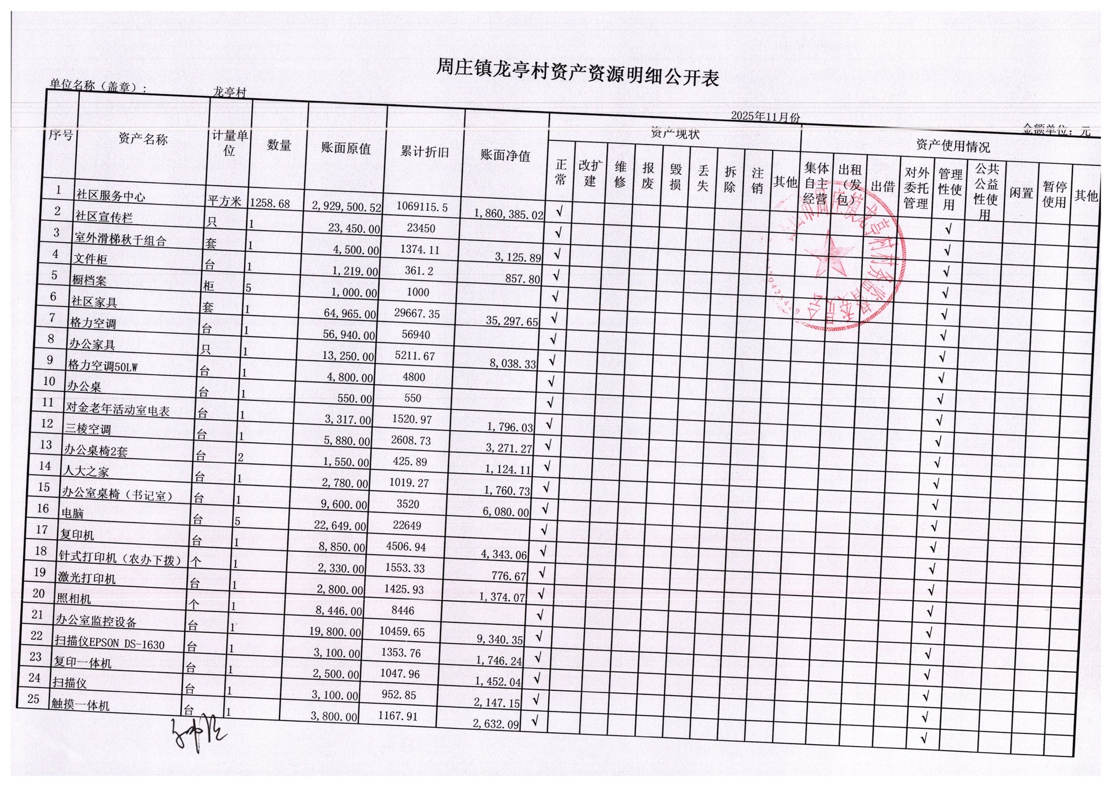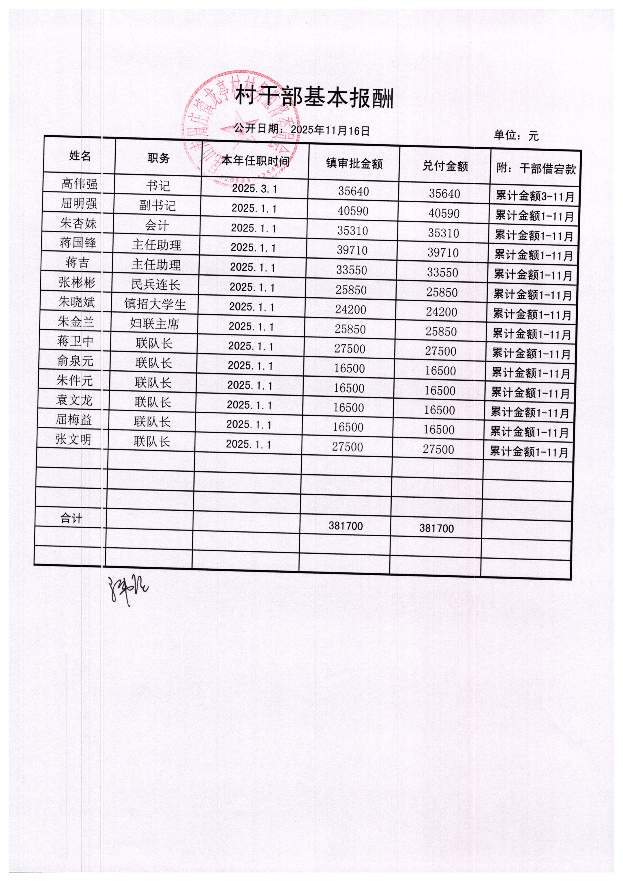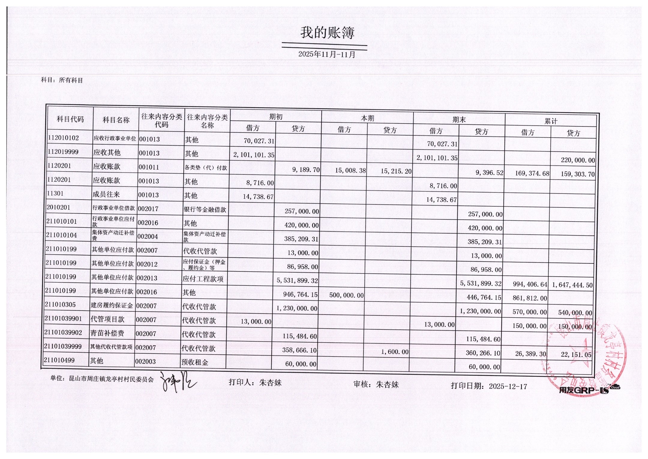2025年11月村委会财务报表