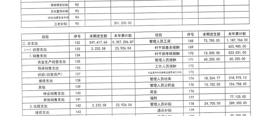 斜塘村村委会2025年11月份财务公开