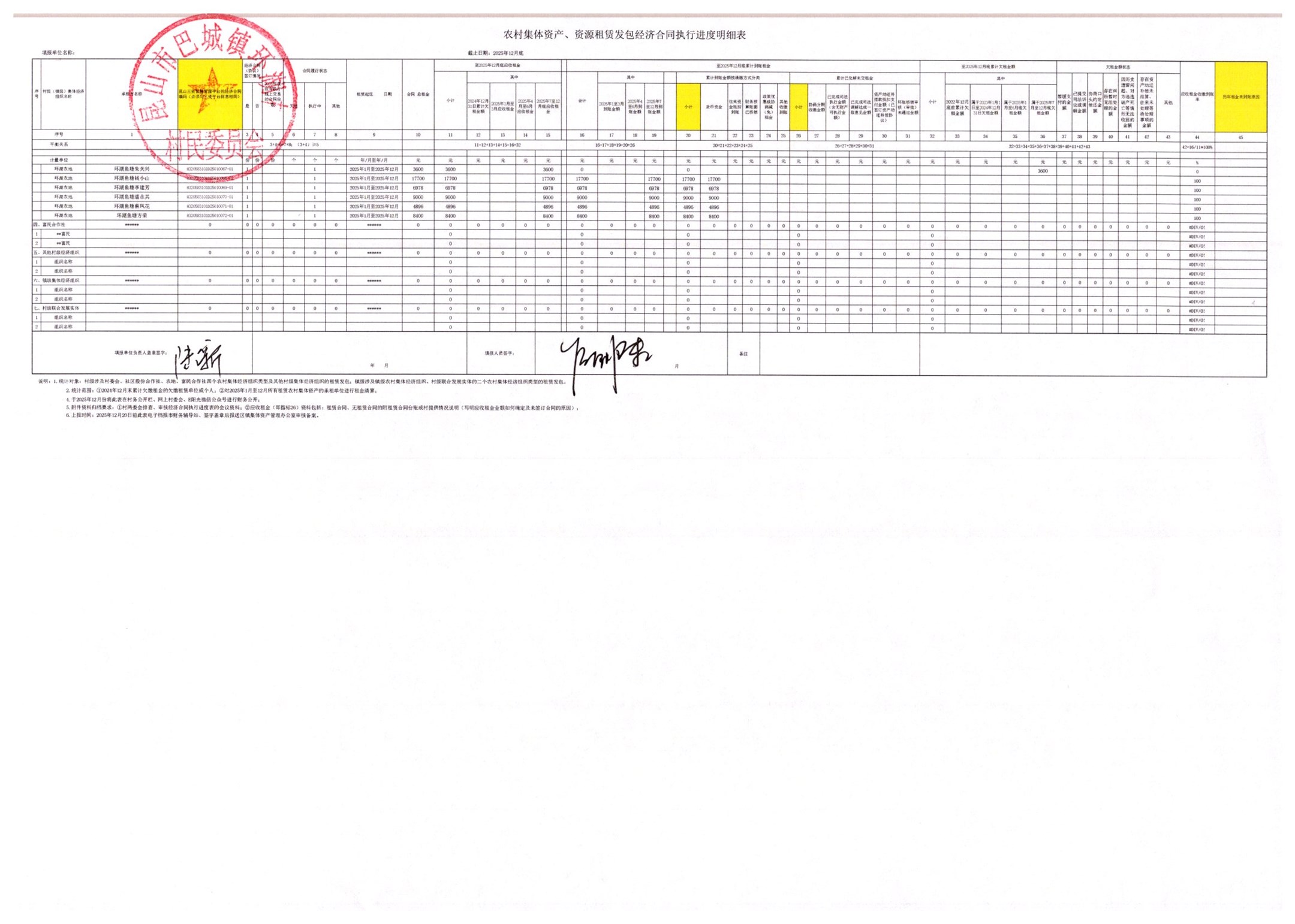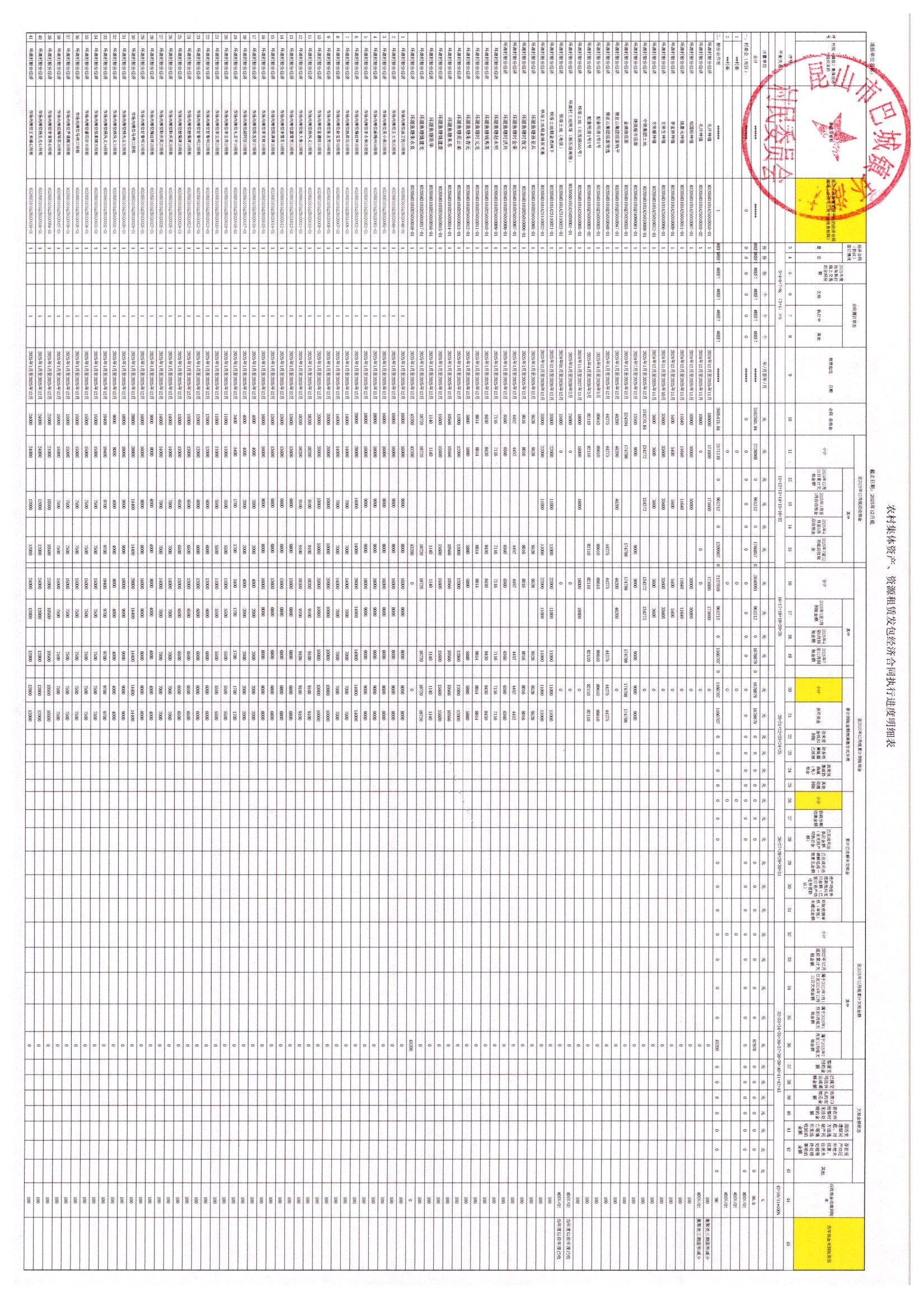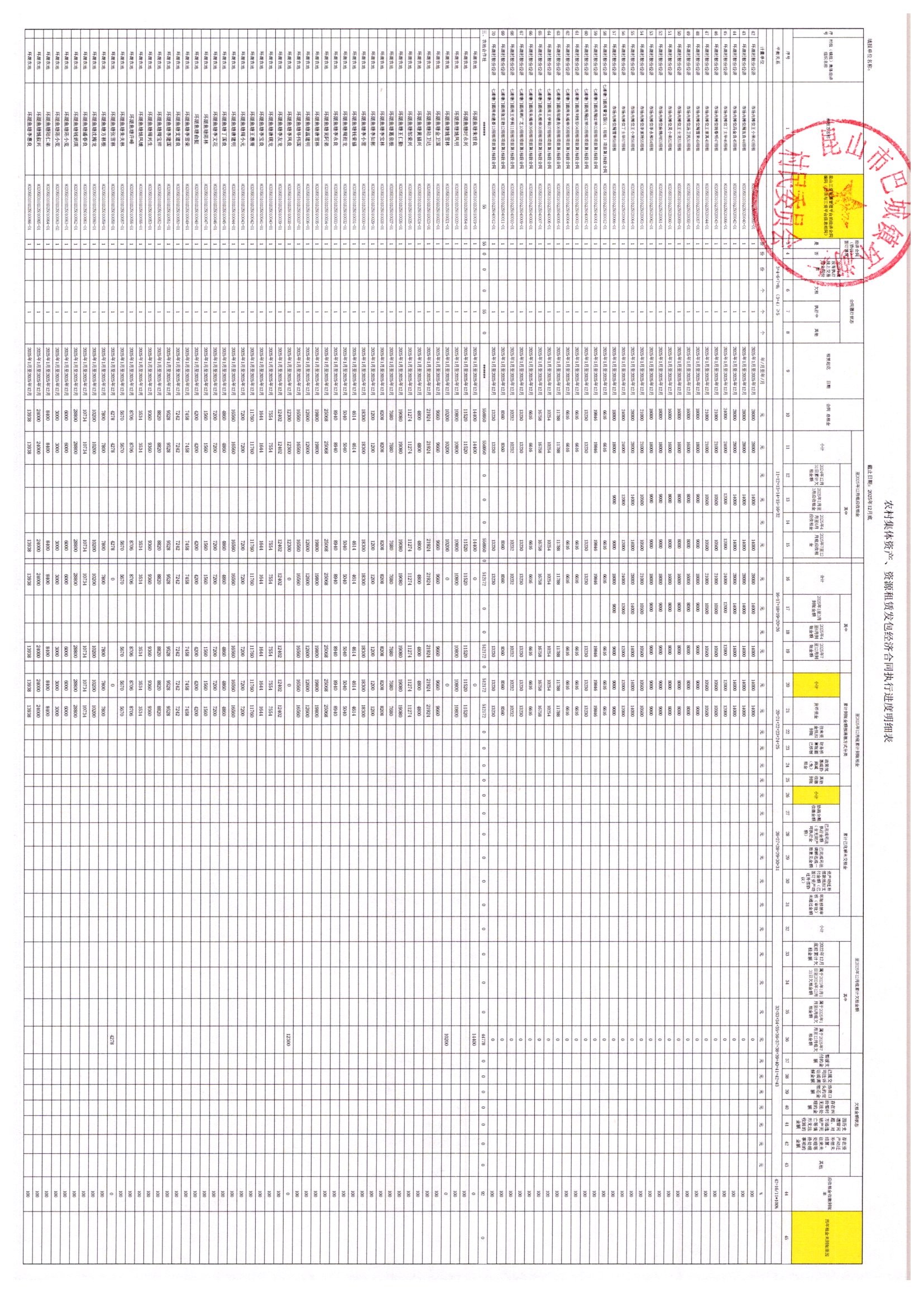 2025年12月农村集体资产、资源租赁发包经济合同执行进度明细表