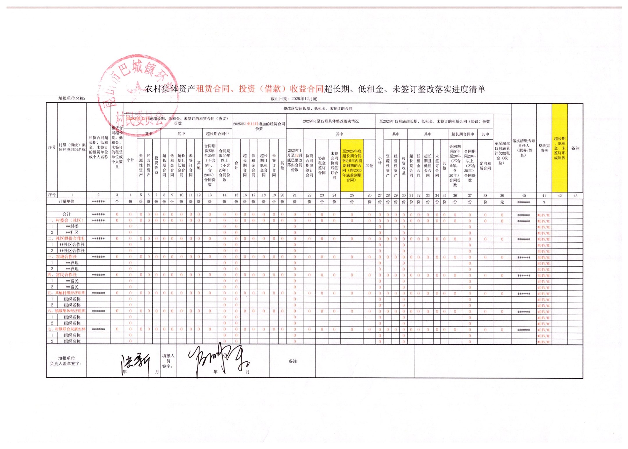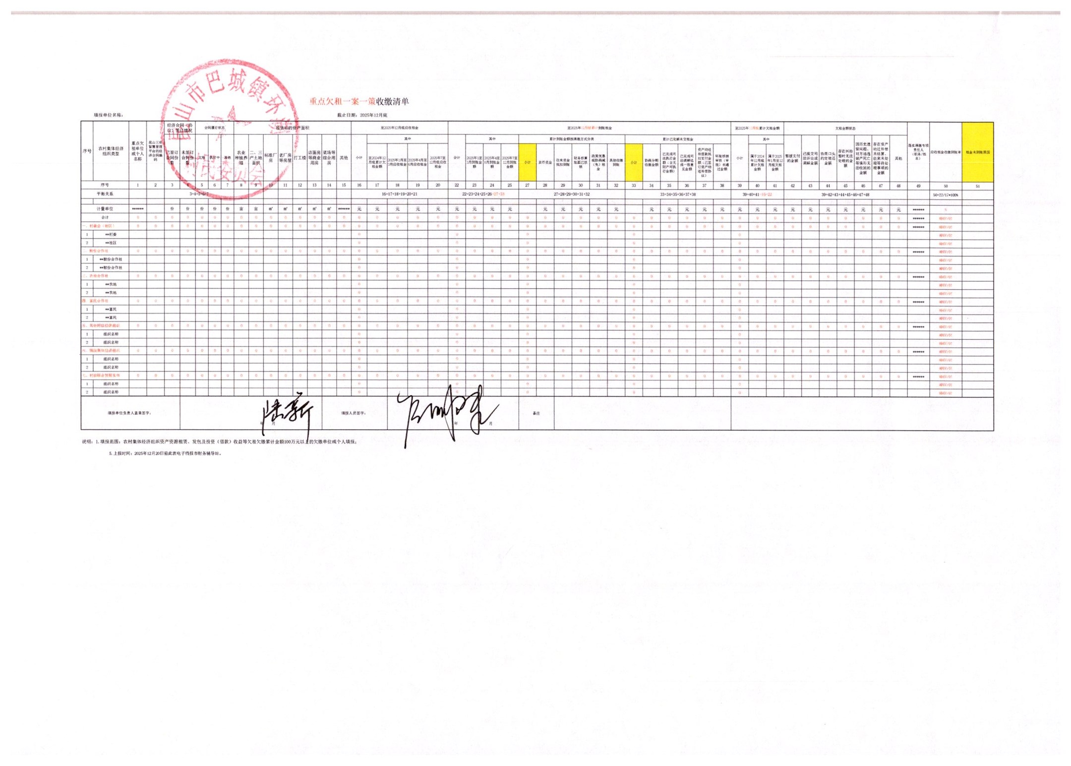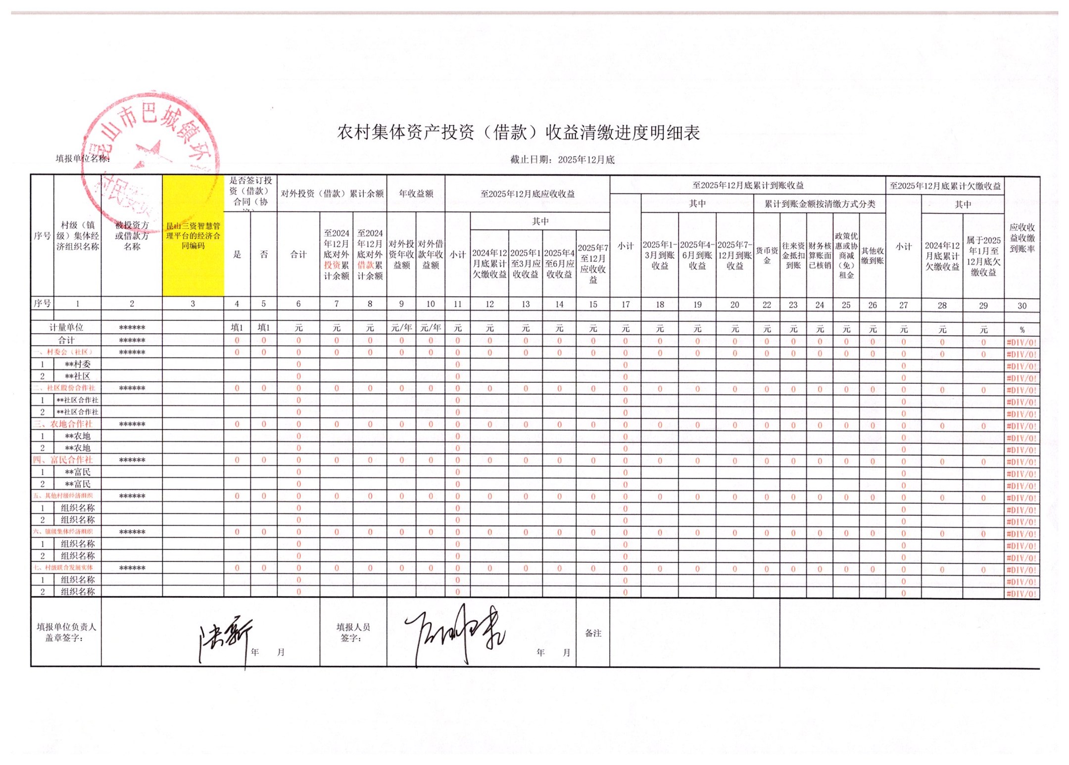 2025年12月农村集体资产、资源租赁发包经济合同执行进度明细表