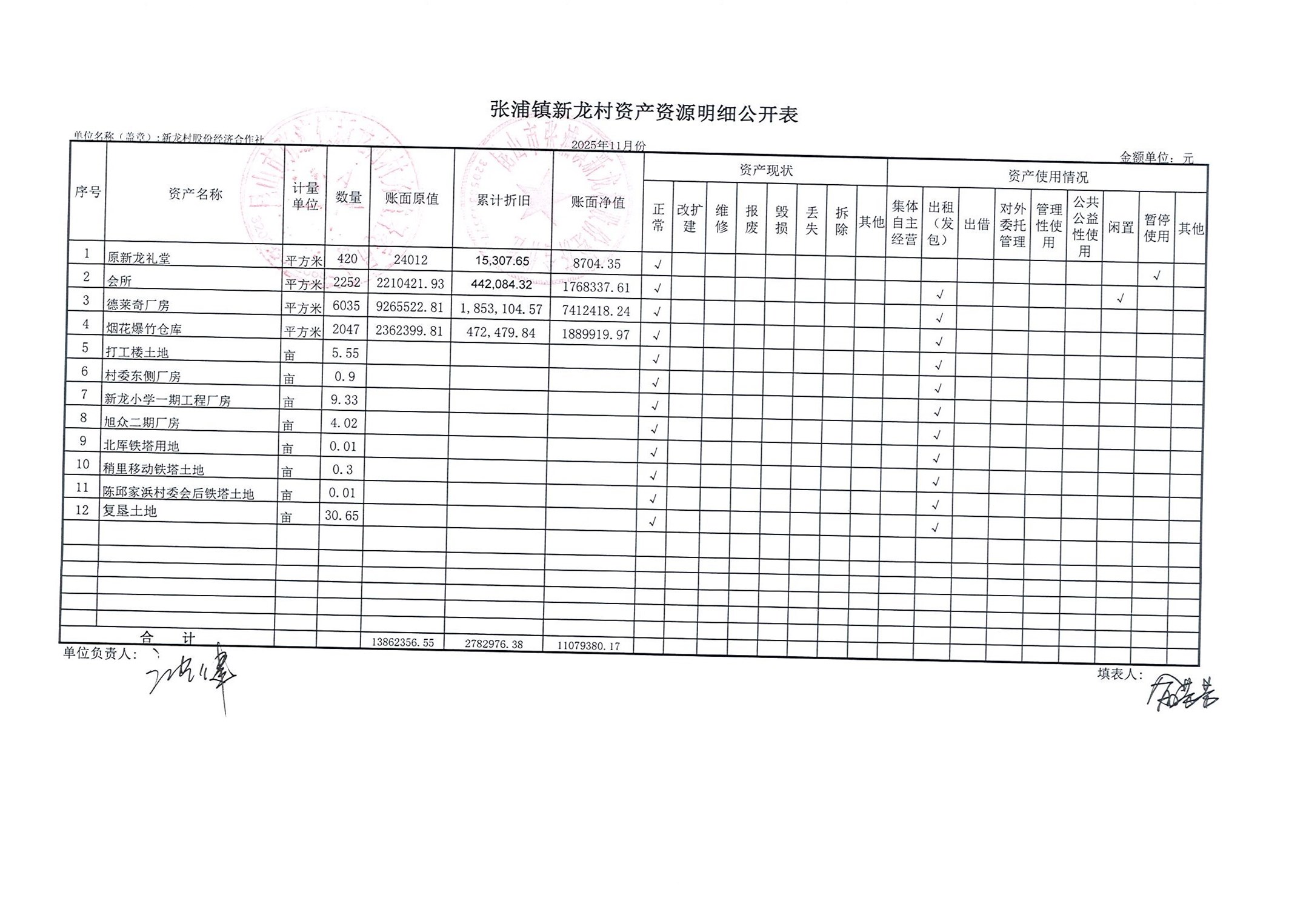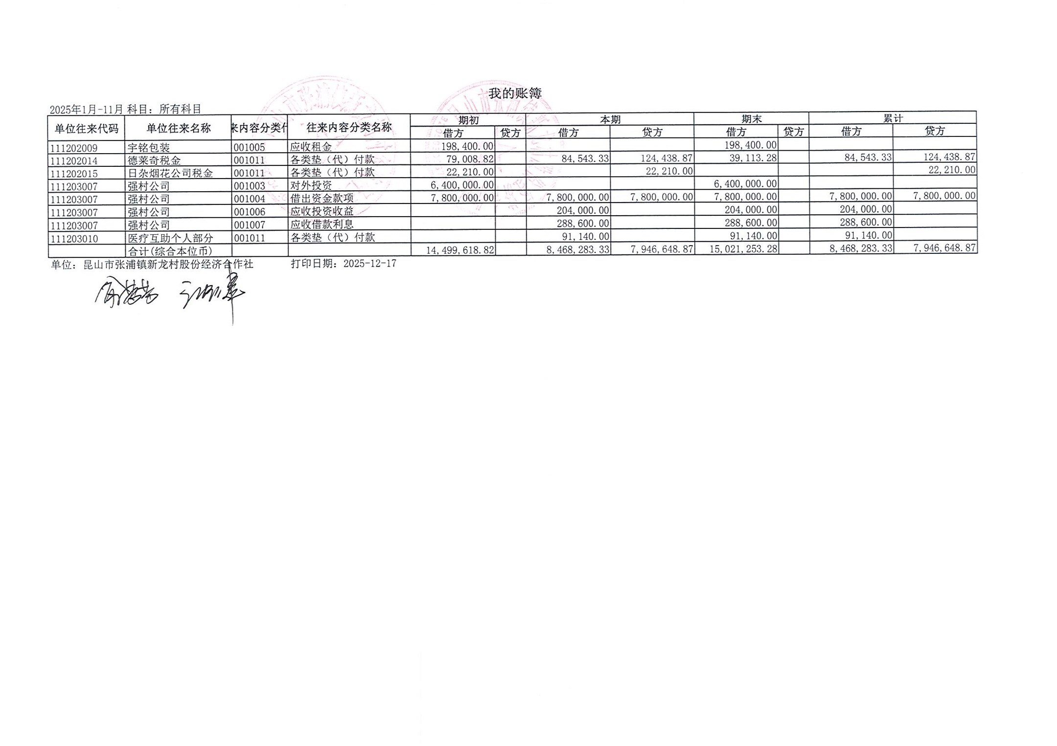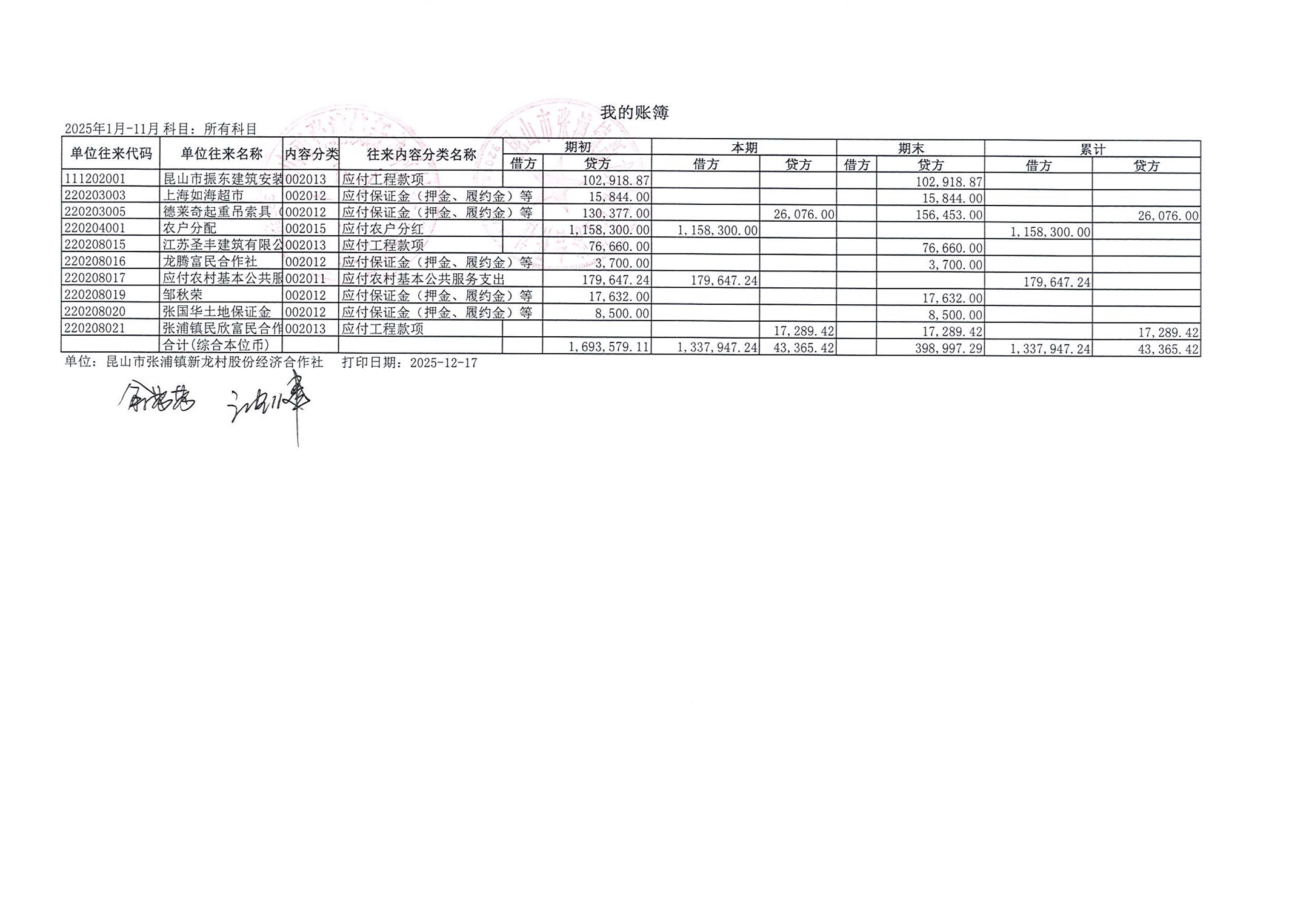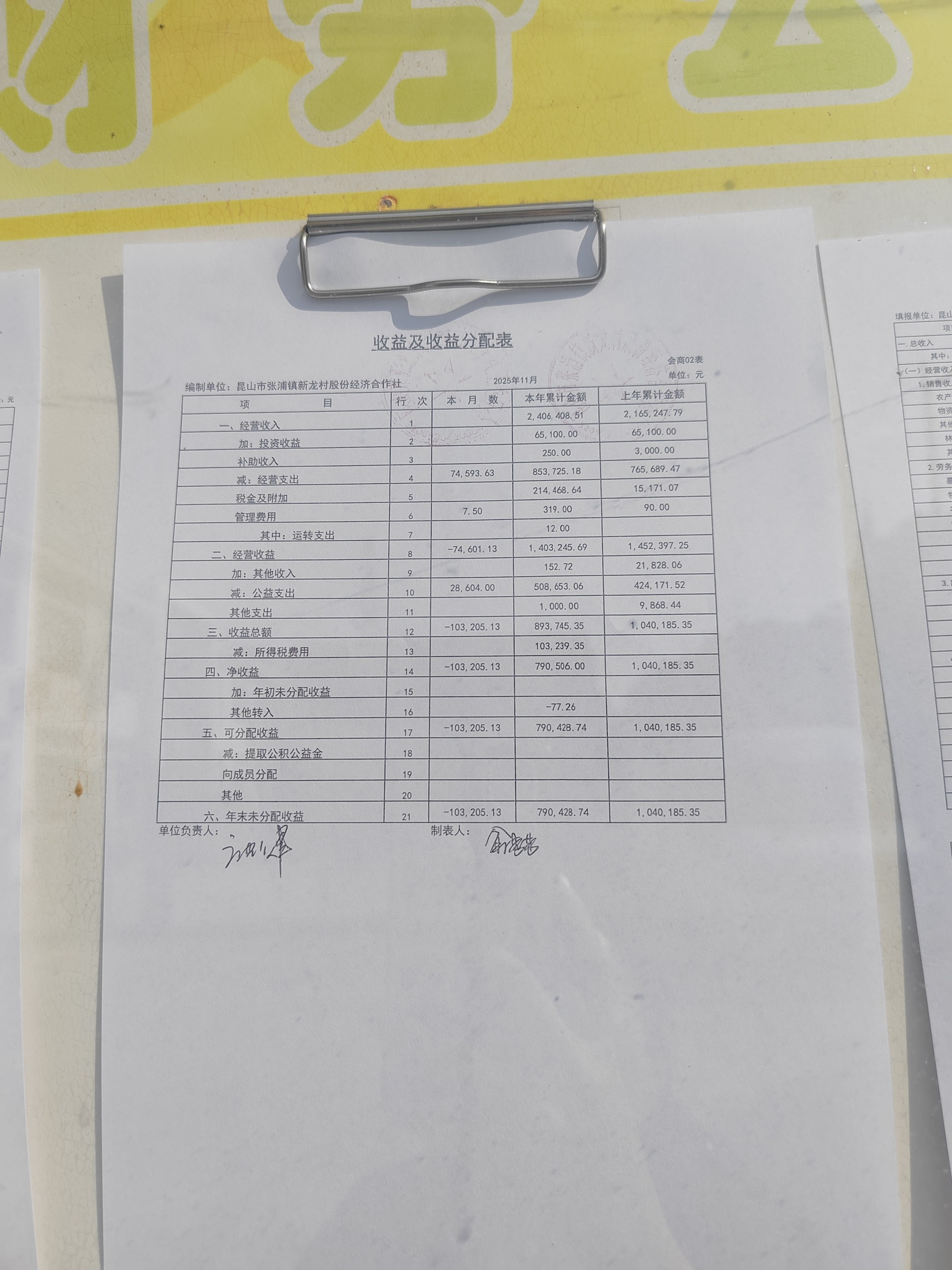 2025年张浦镇新龙村股份经济合作社11月财务公开