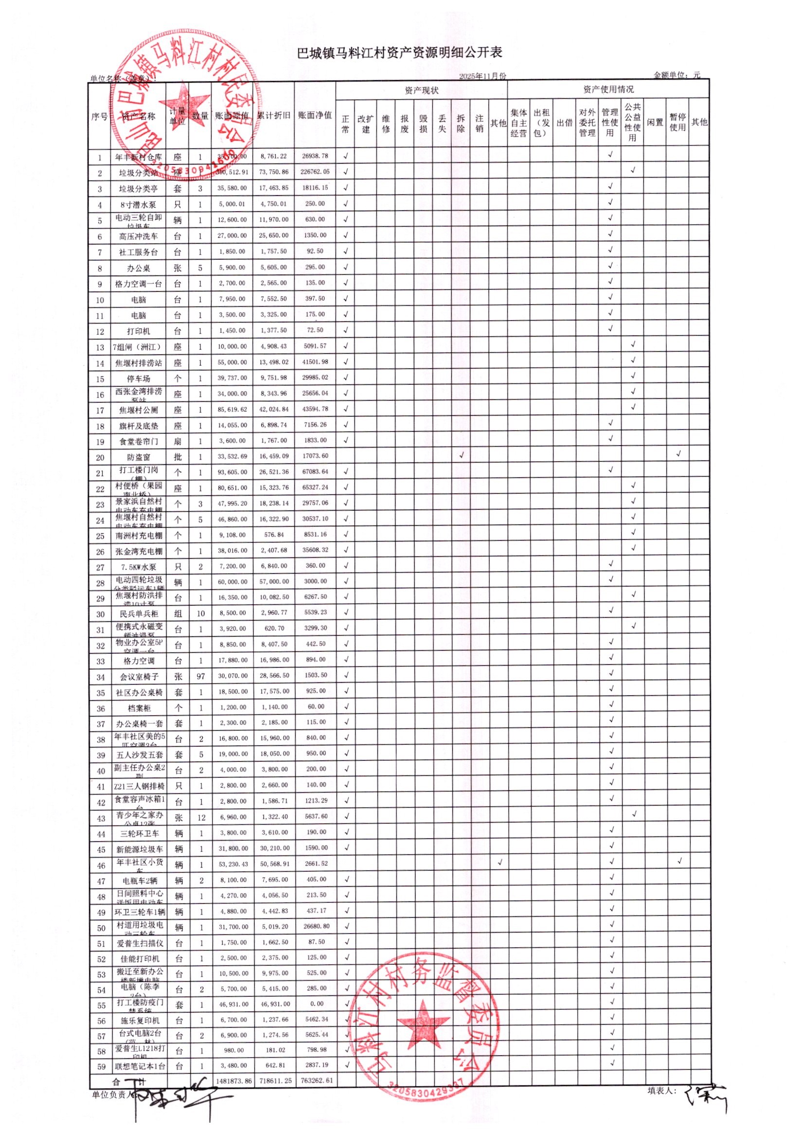 村盖章事项名录
