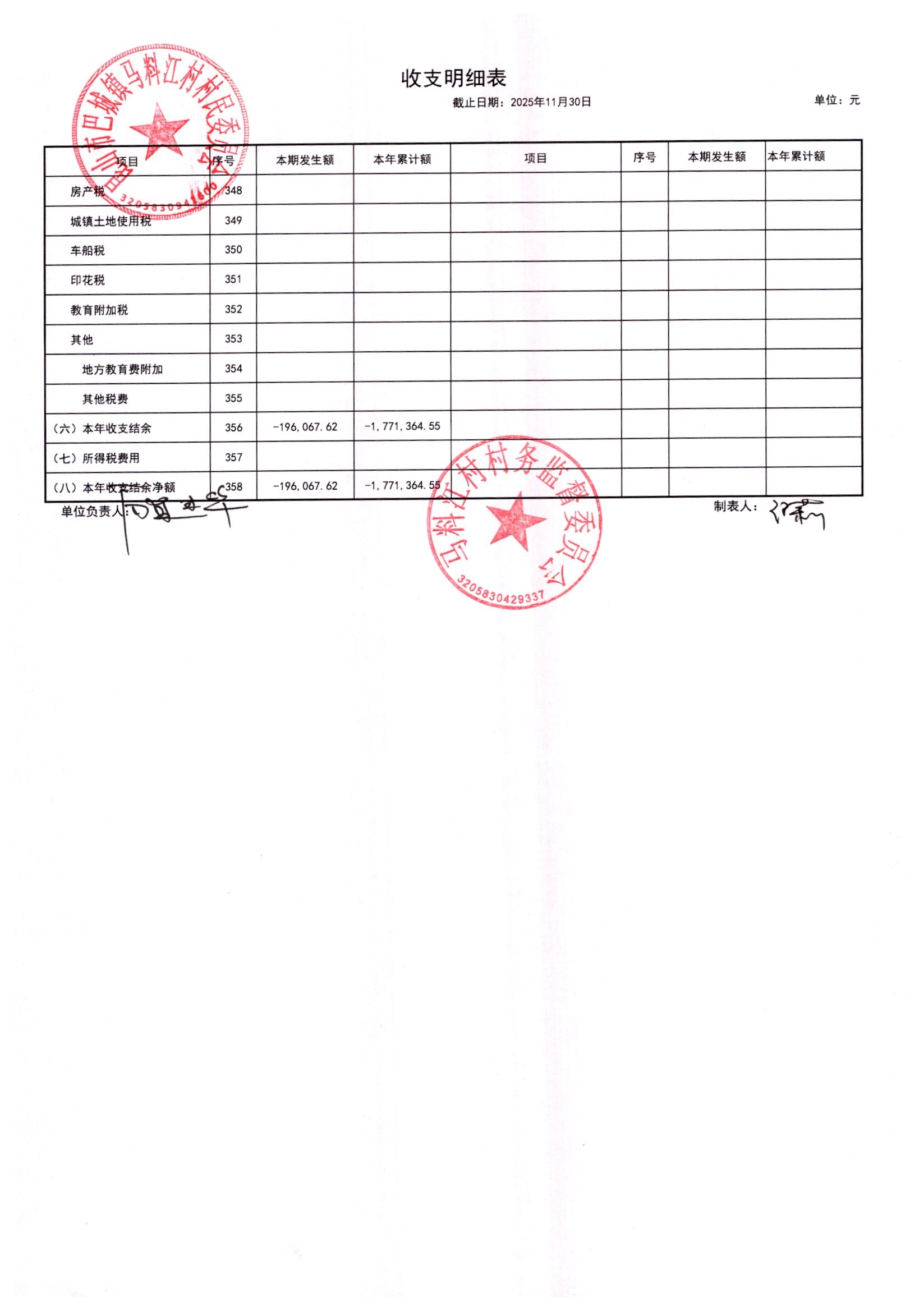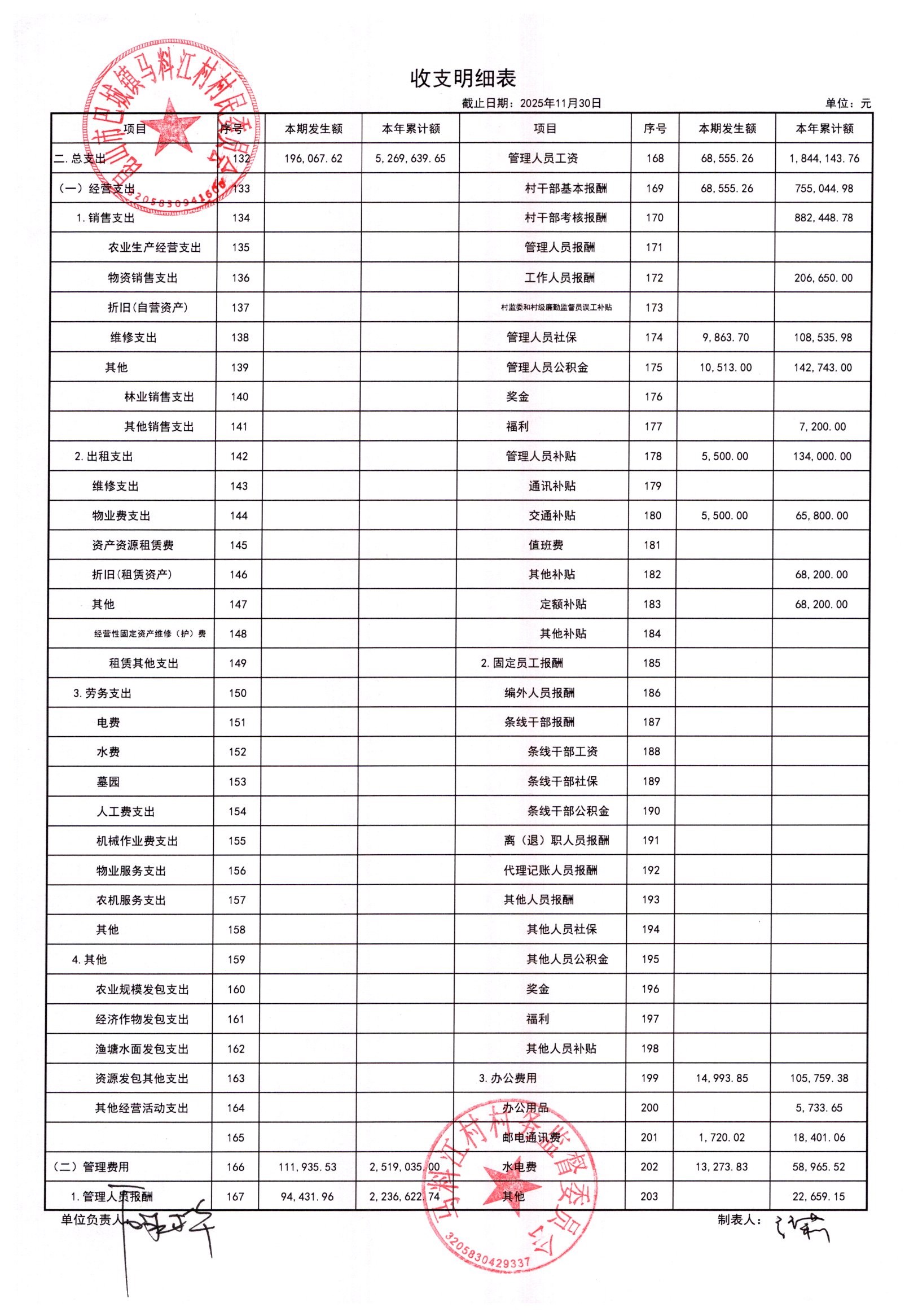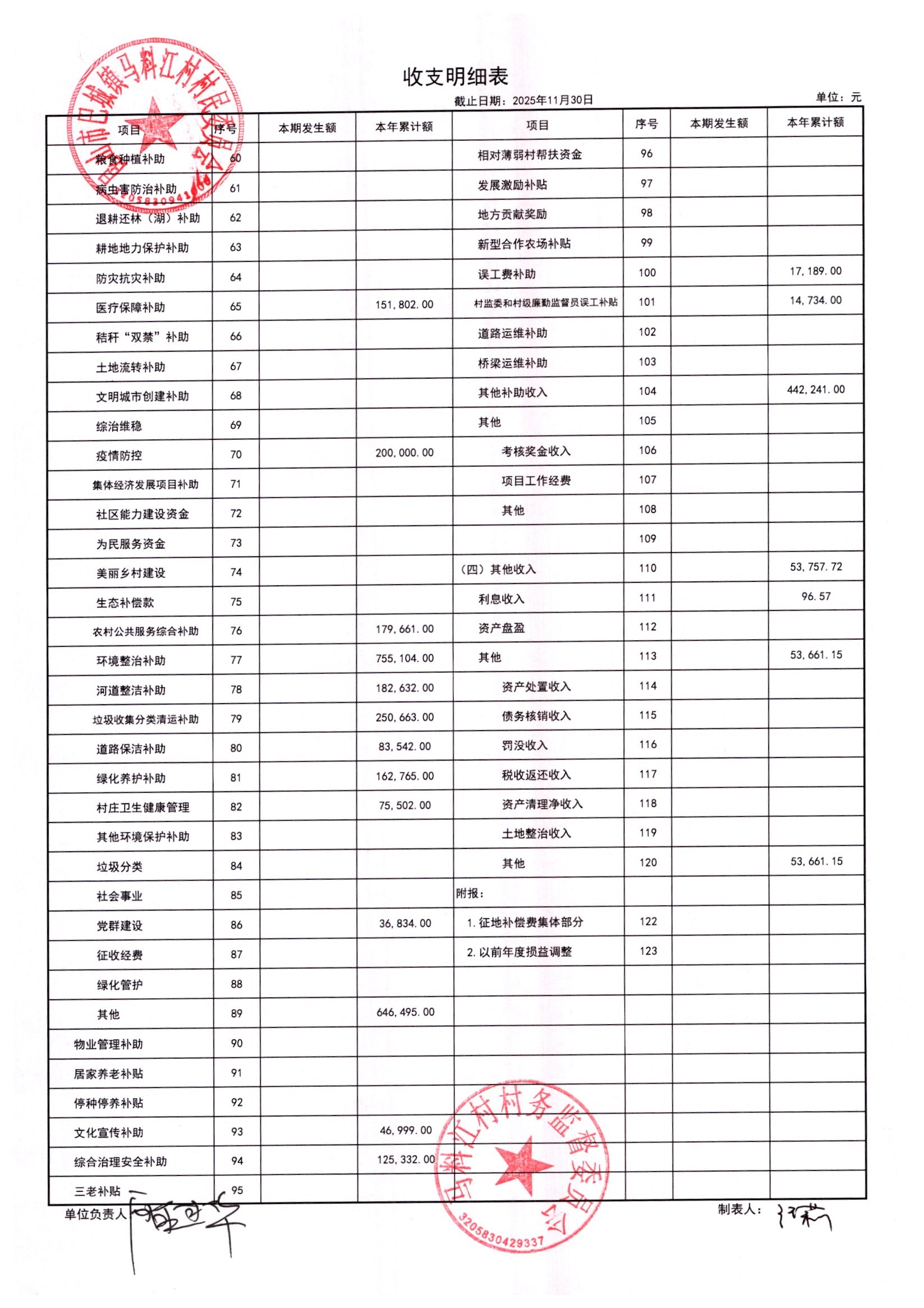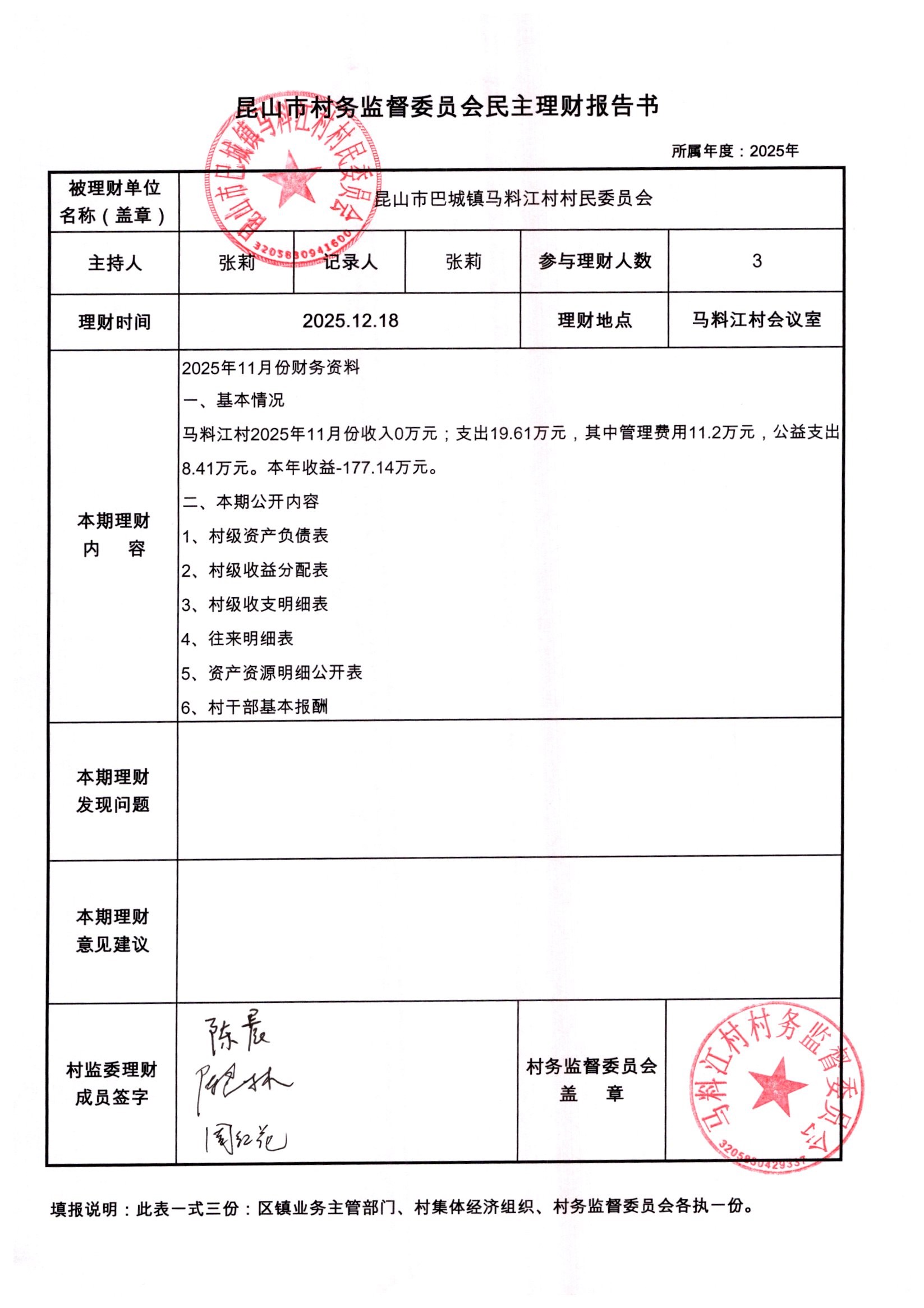 马料江村-2025年12月份财务公开内容