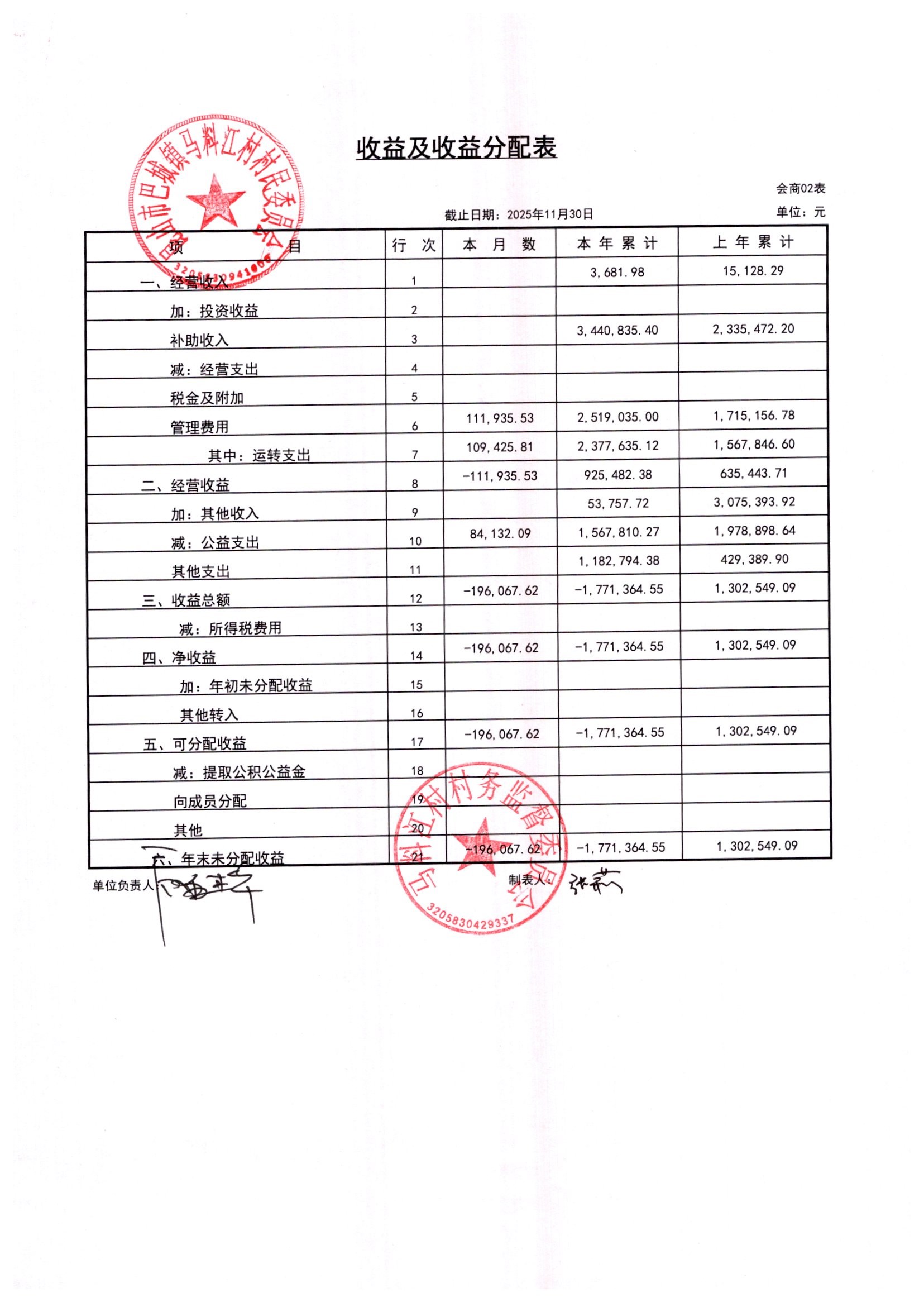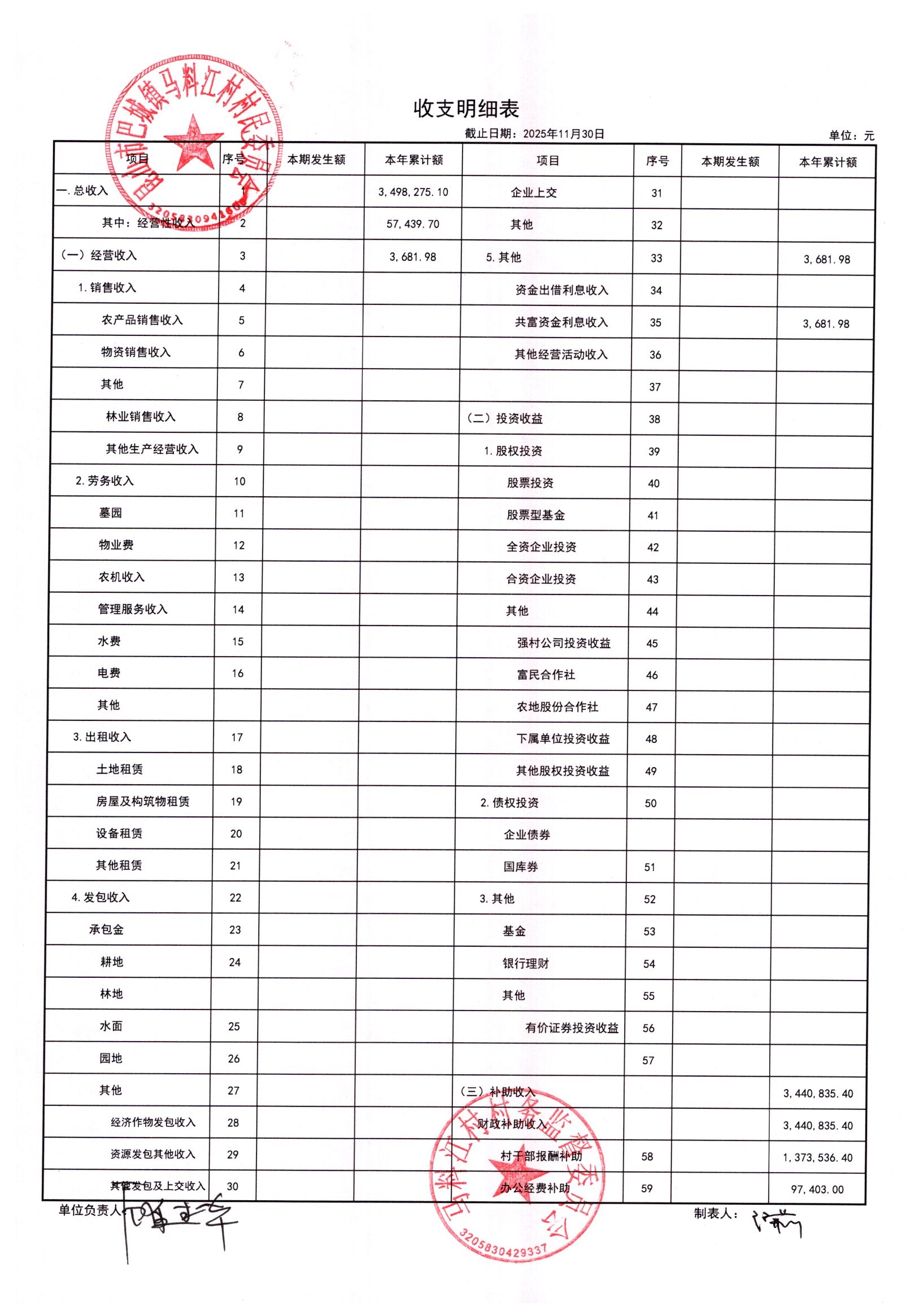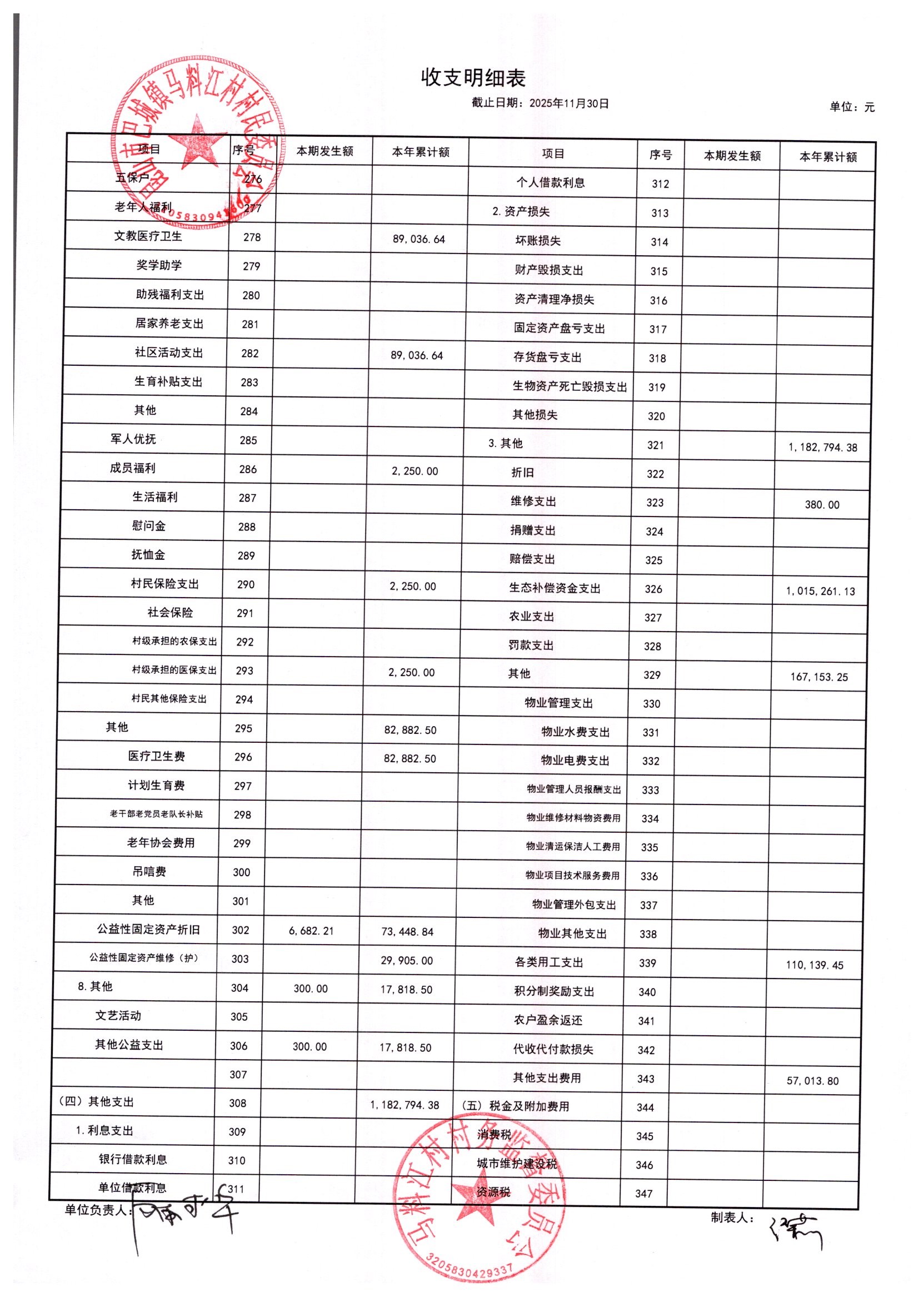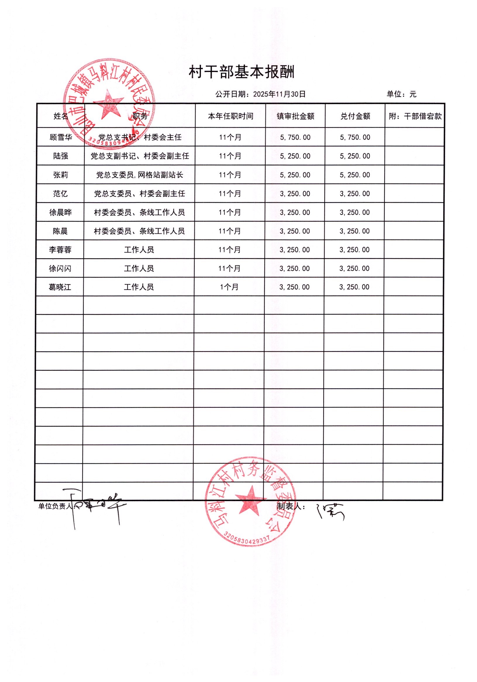 马料江村-2025年12月份财务公开内容