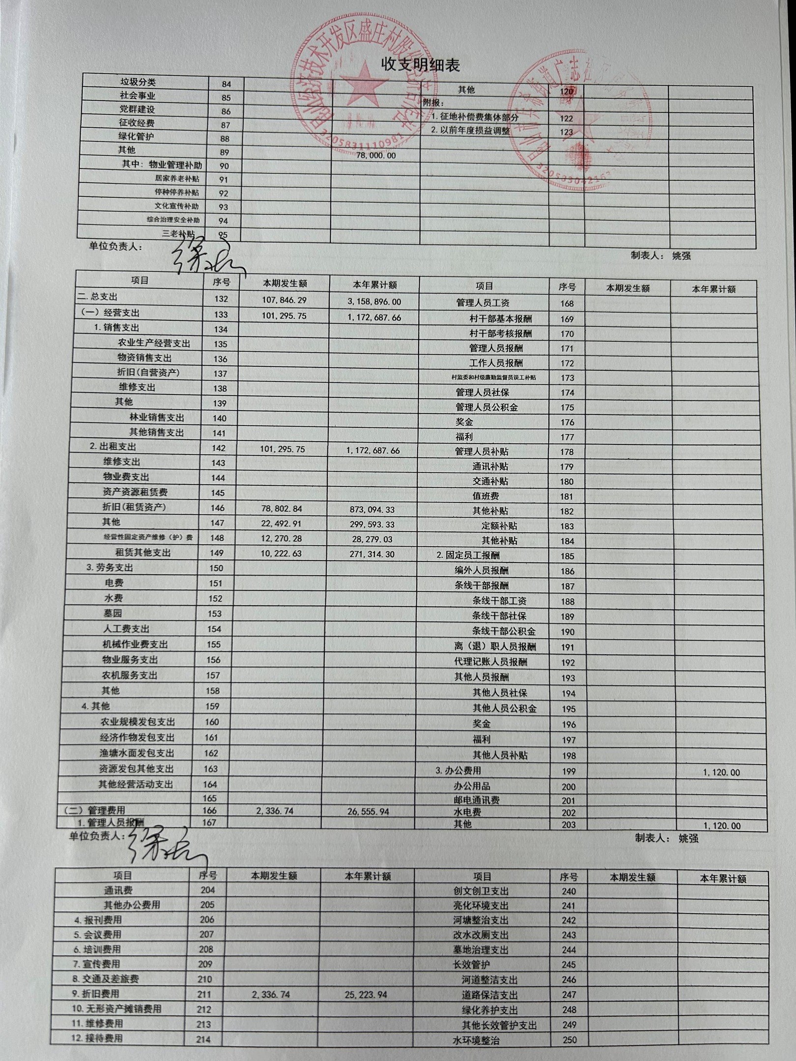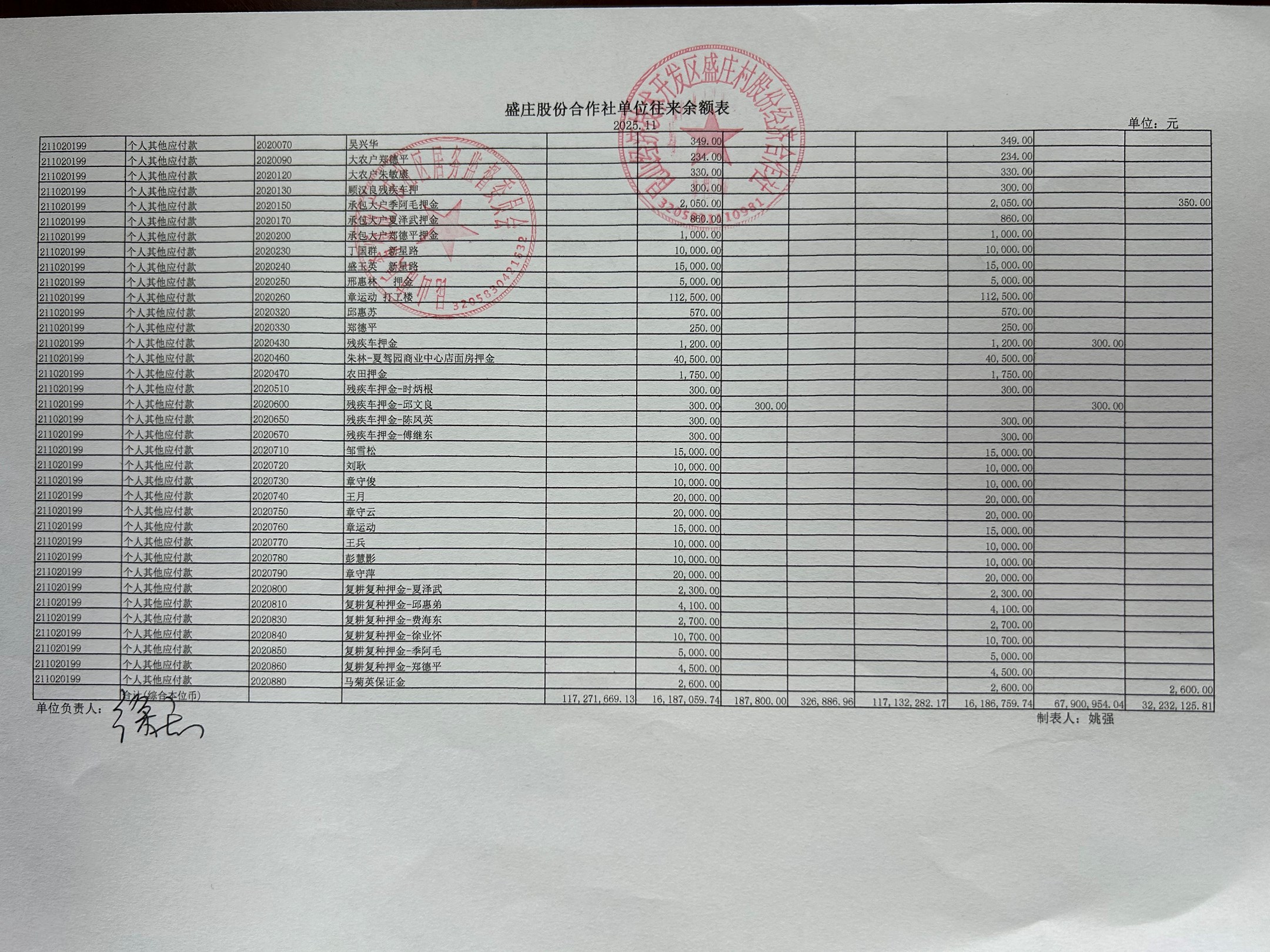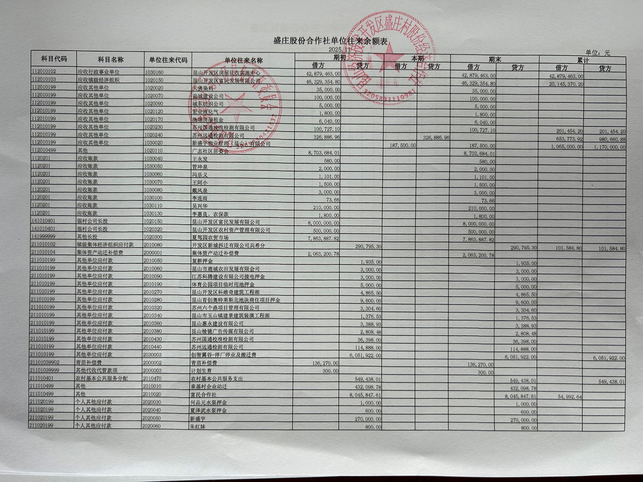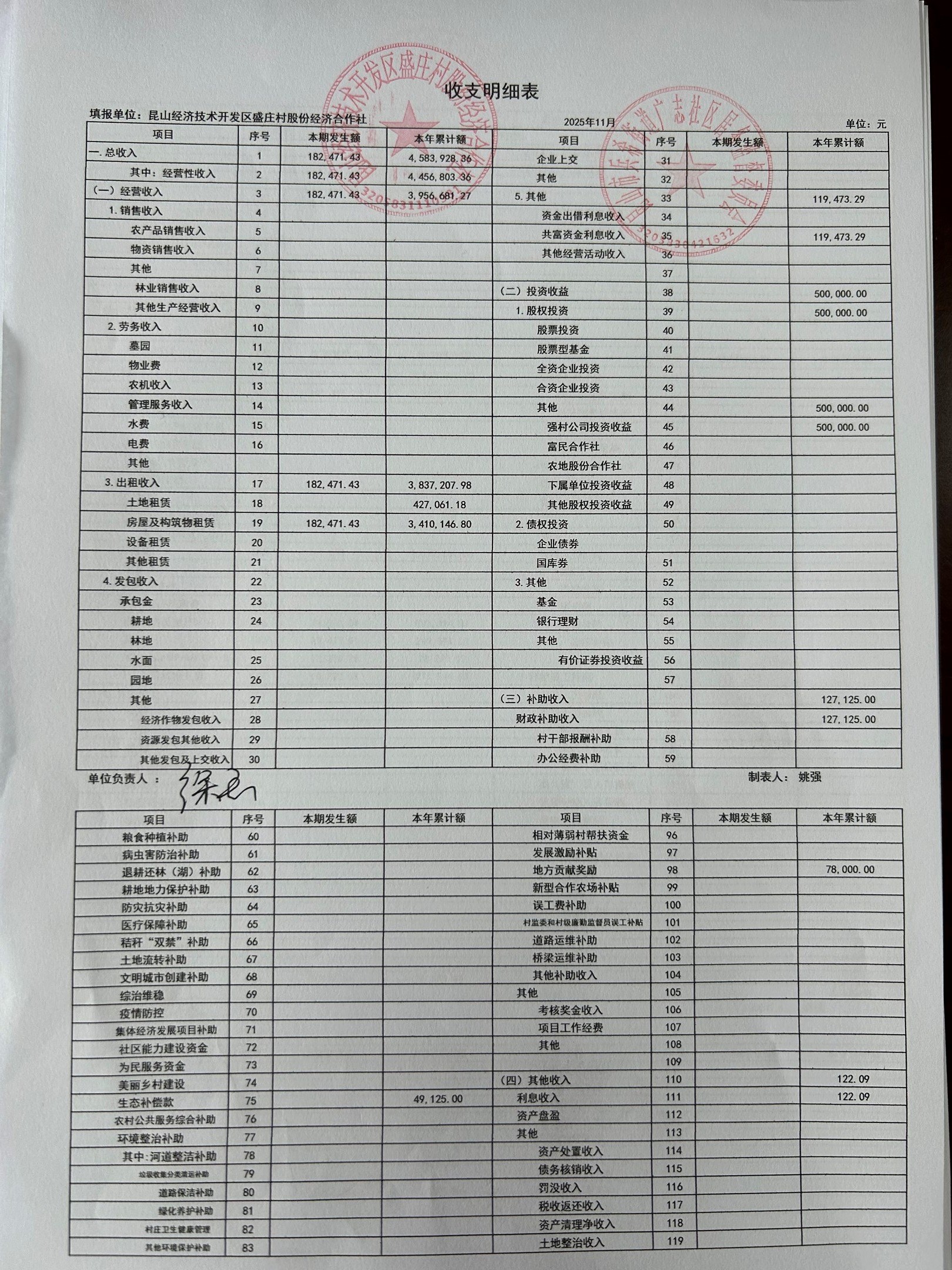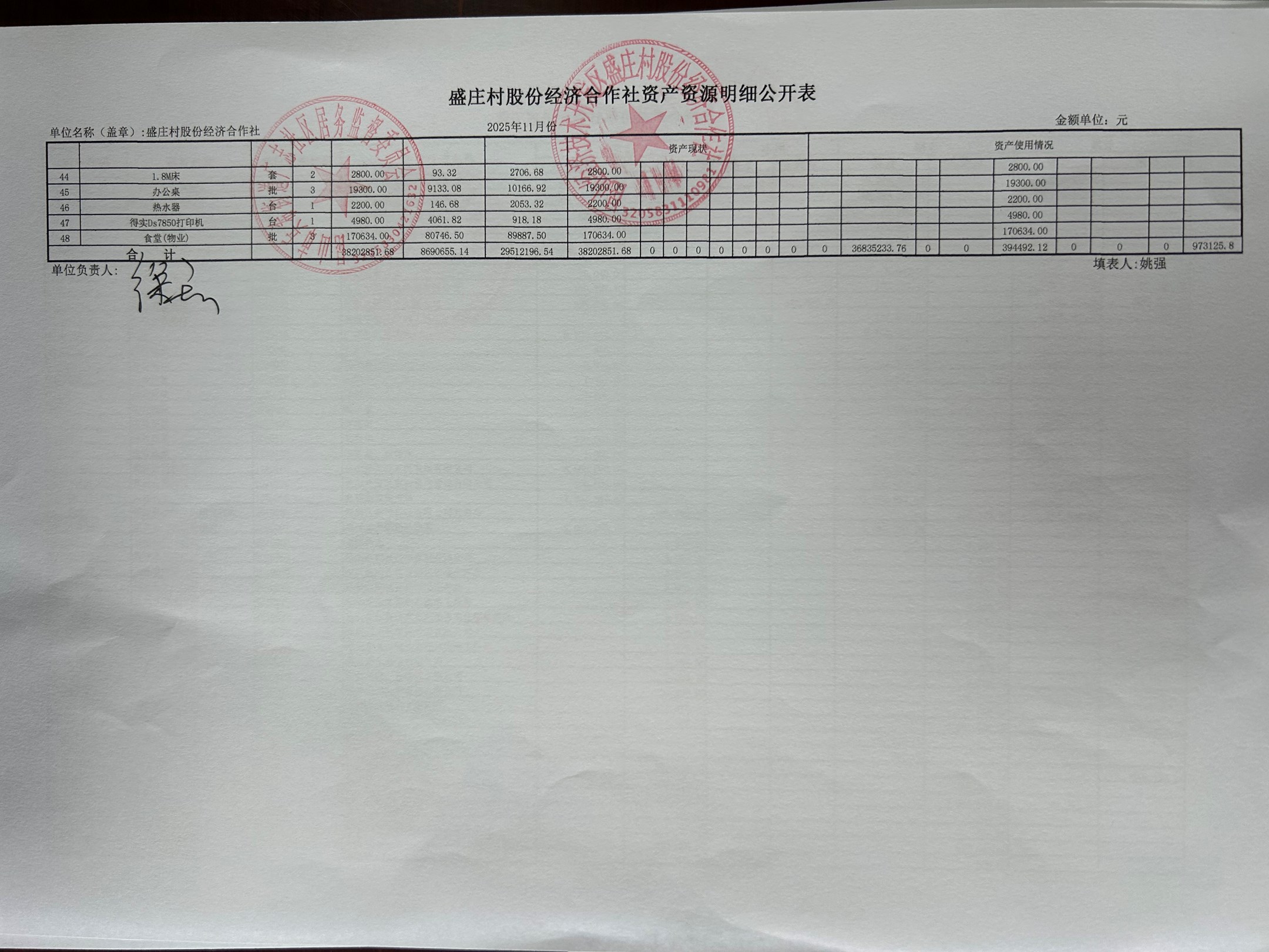 2025年11月份盛庄村股份经济合作社财务公开资料