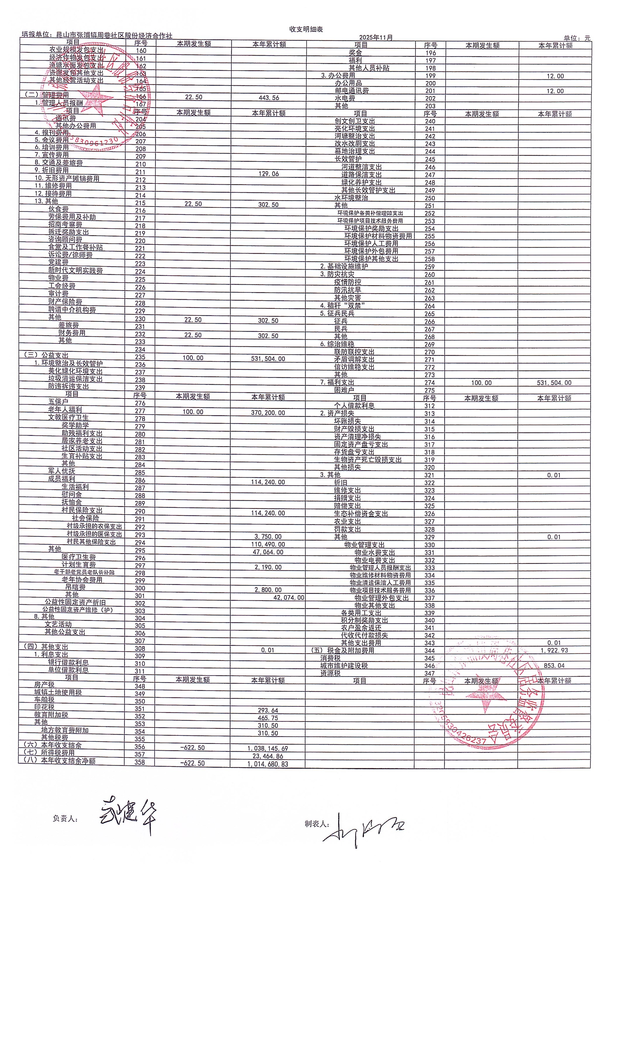 2025年11月财务定期公开
