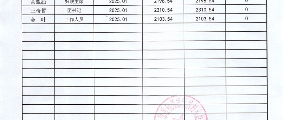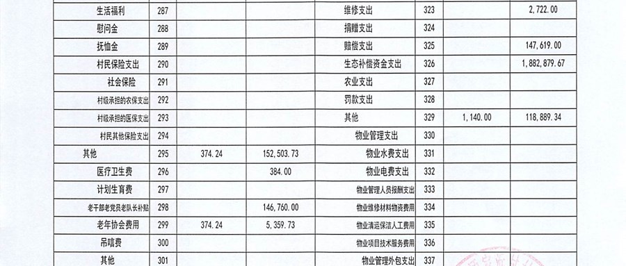 2025年11月份村委会财务公开