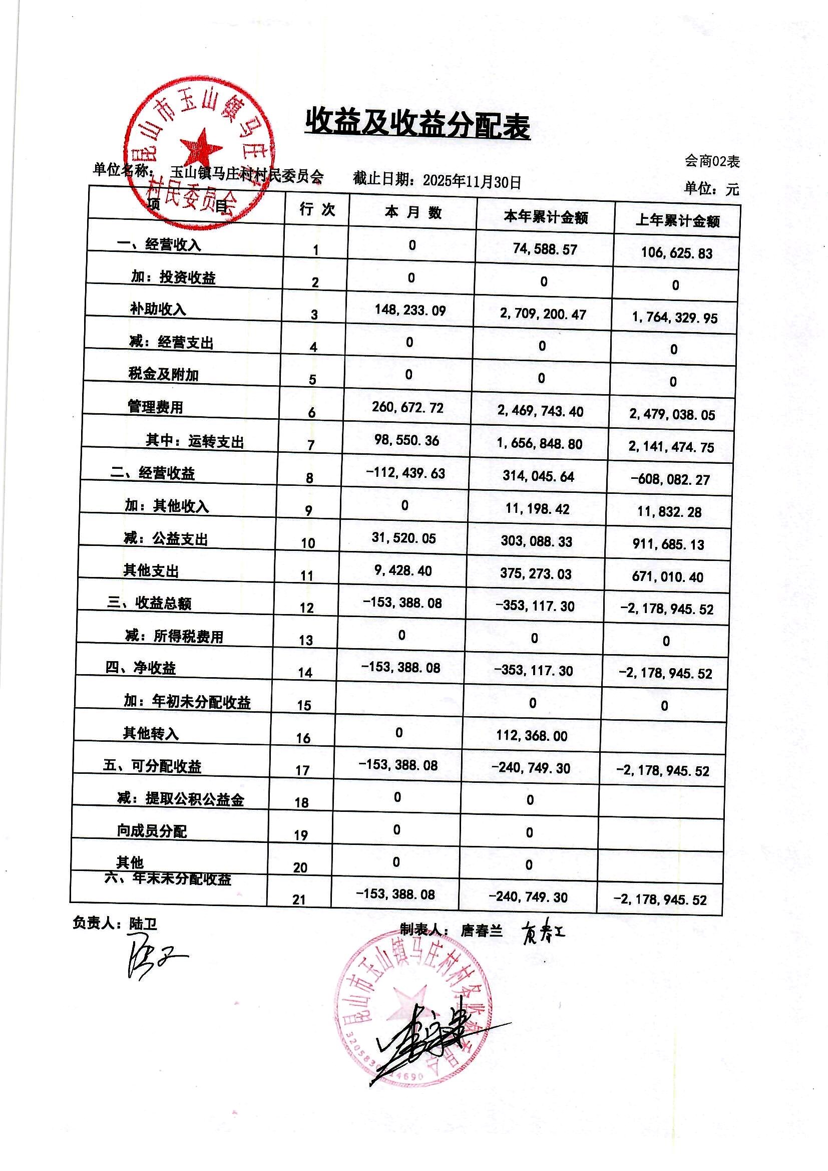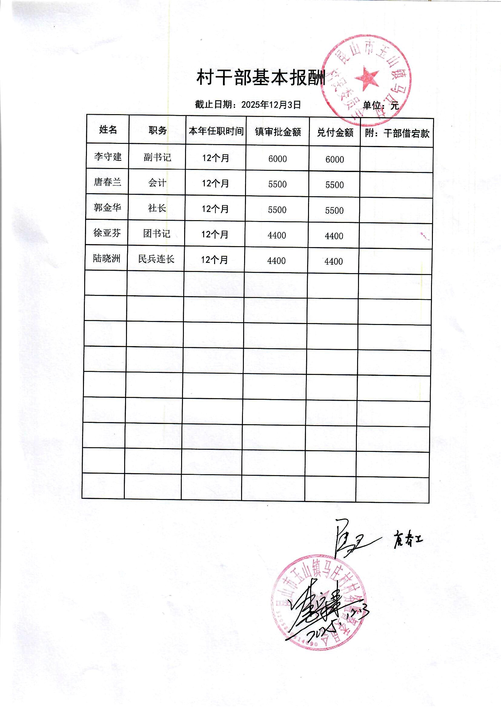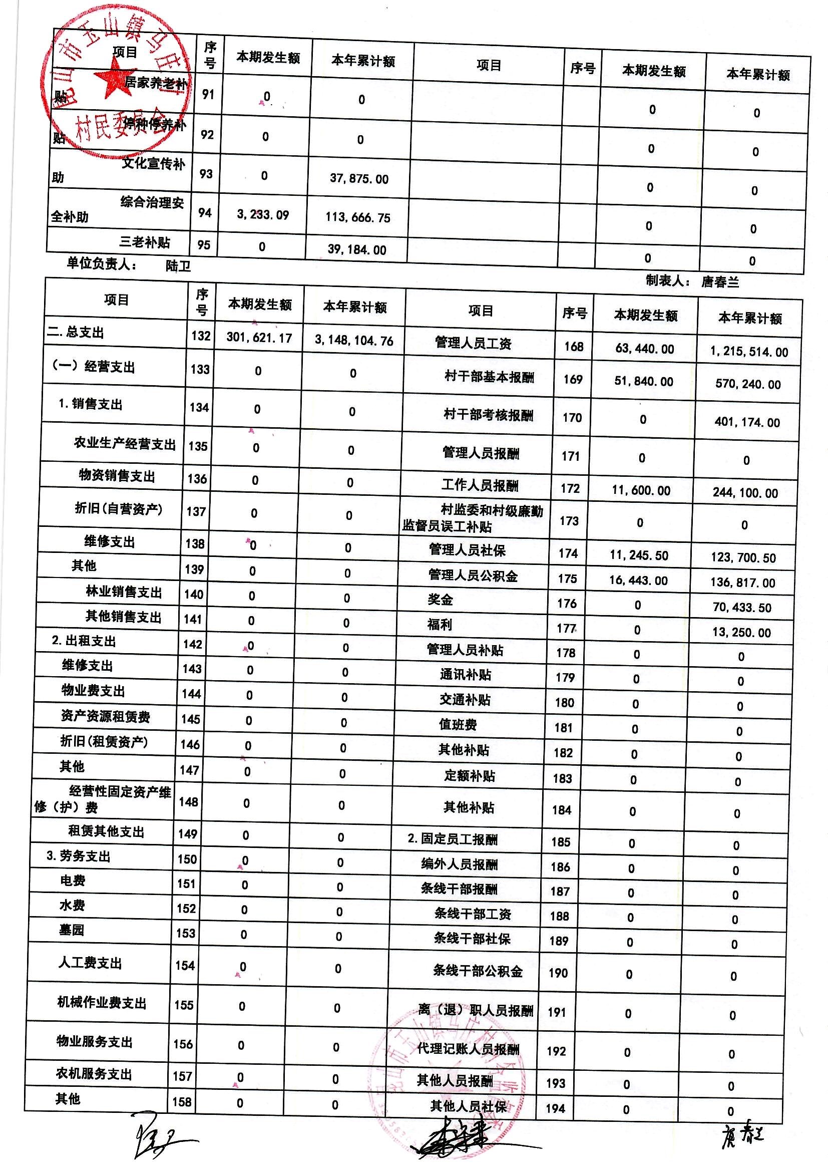 高新区马庄村村民委员会2025年12月财务公开及12月村干部基本报酬