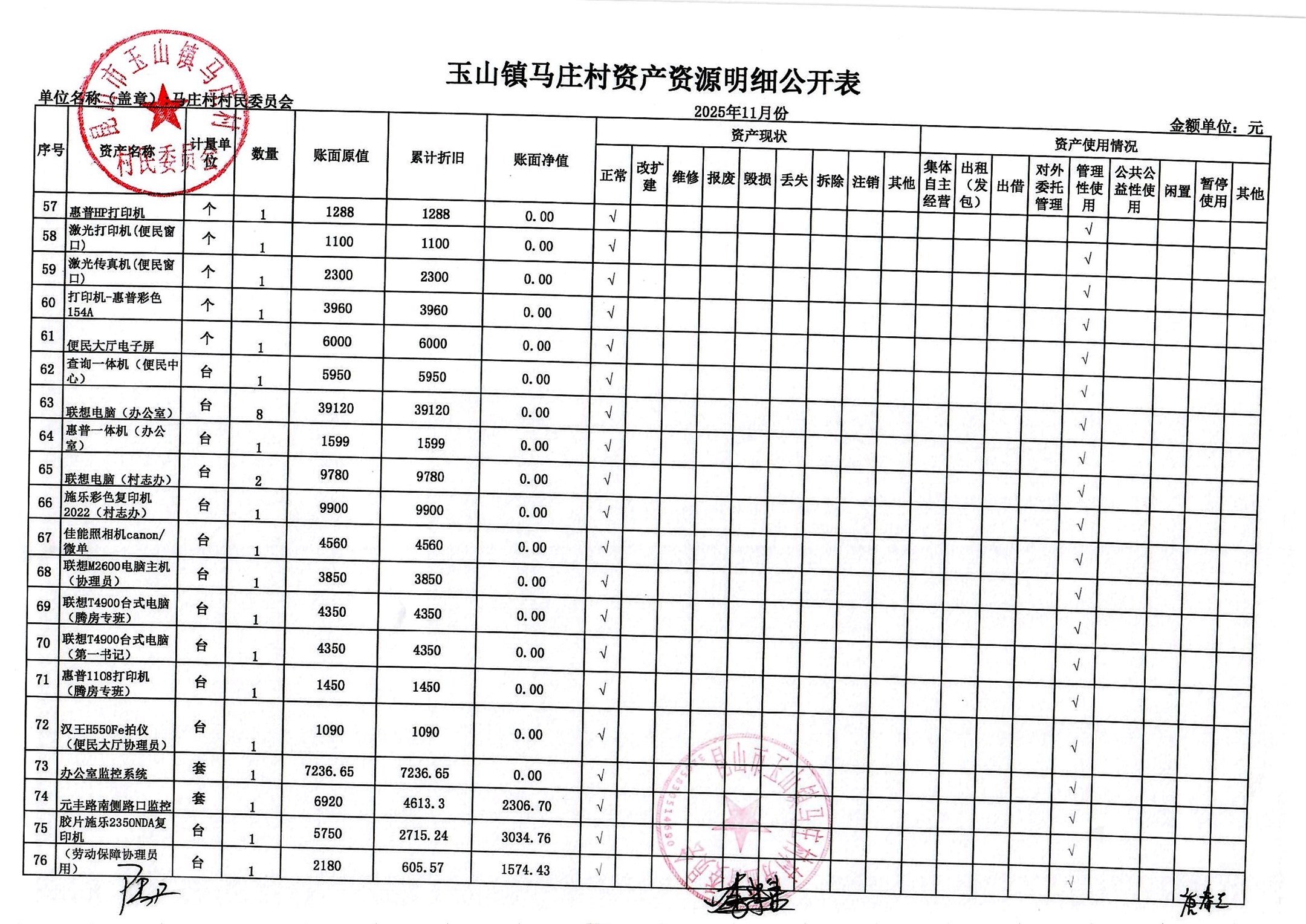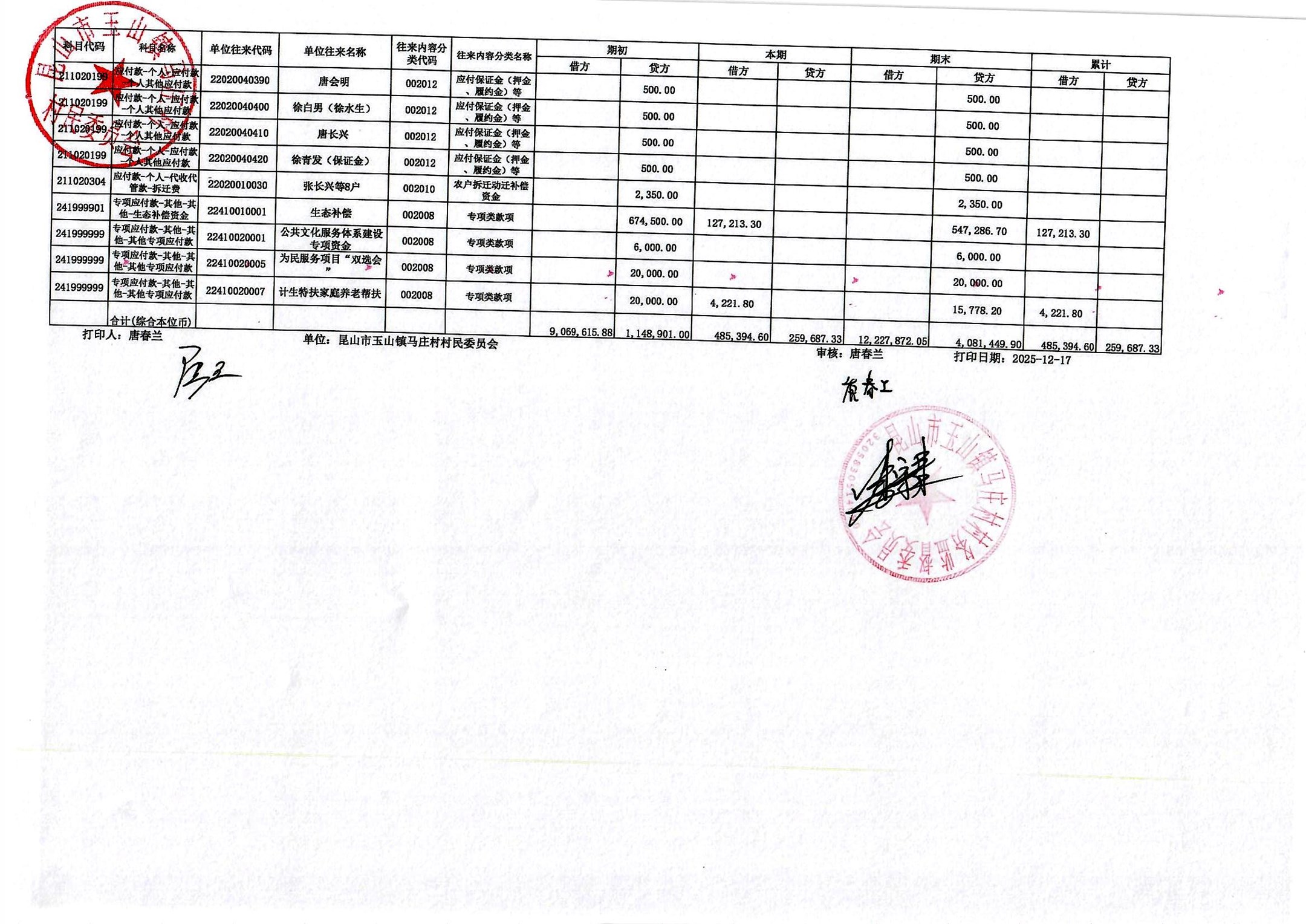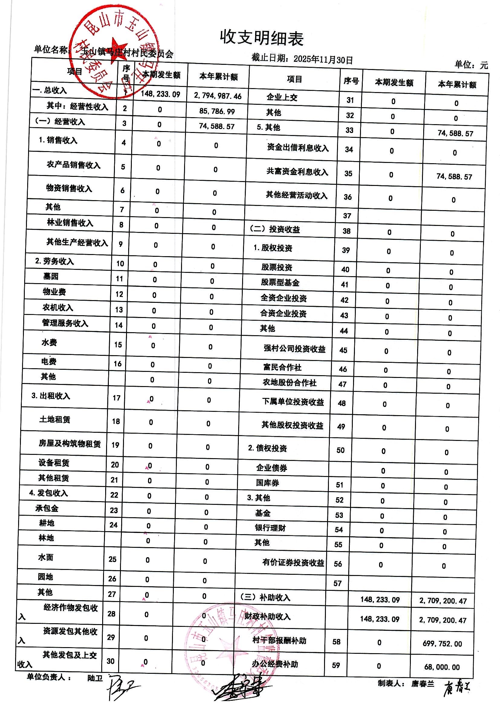 高新区马庄村村民委员会2025年12月财务公开及12月村干部基本报酬