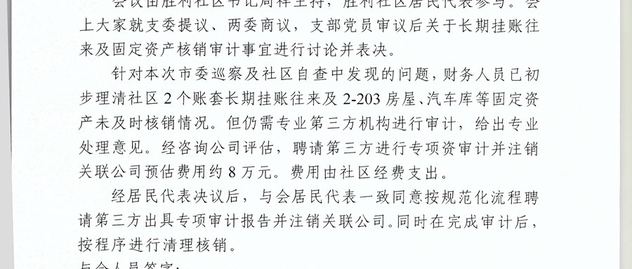关于长期挂账往来及固定资产核销审计事宜决议会