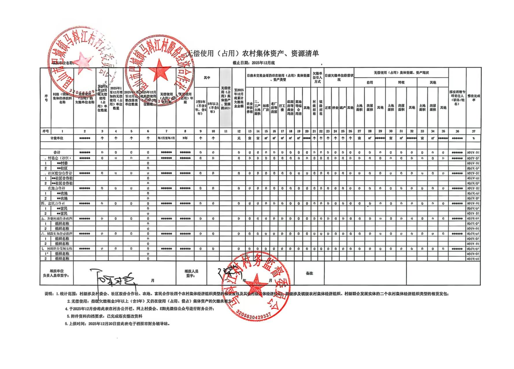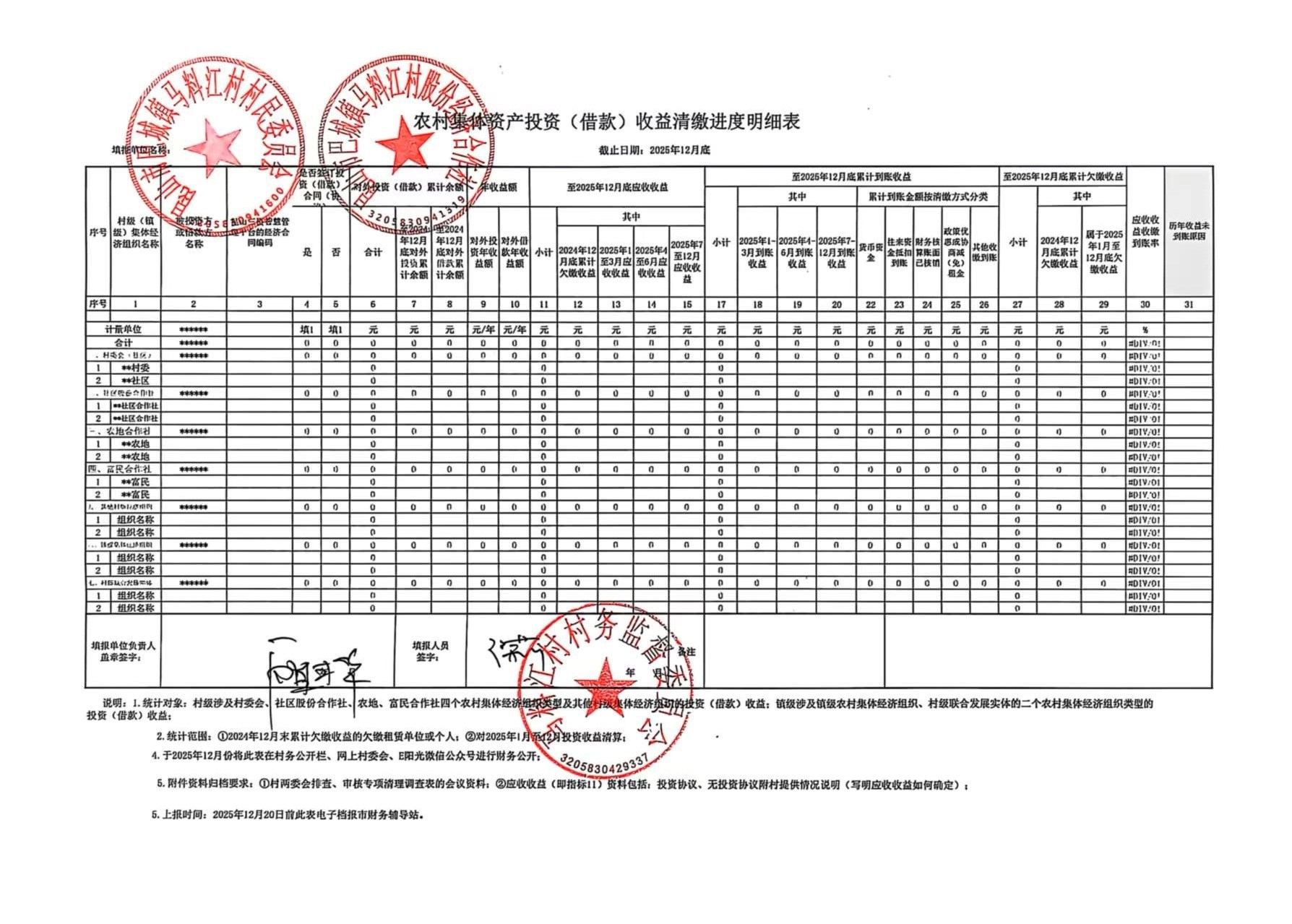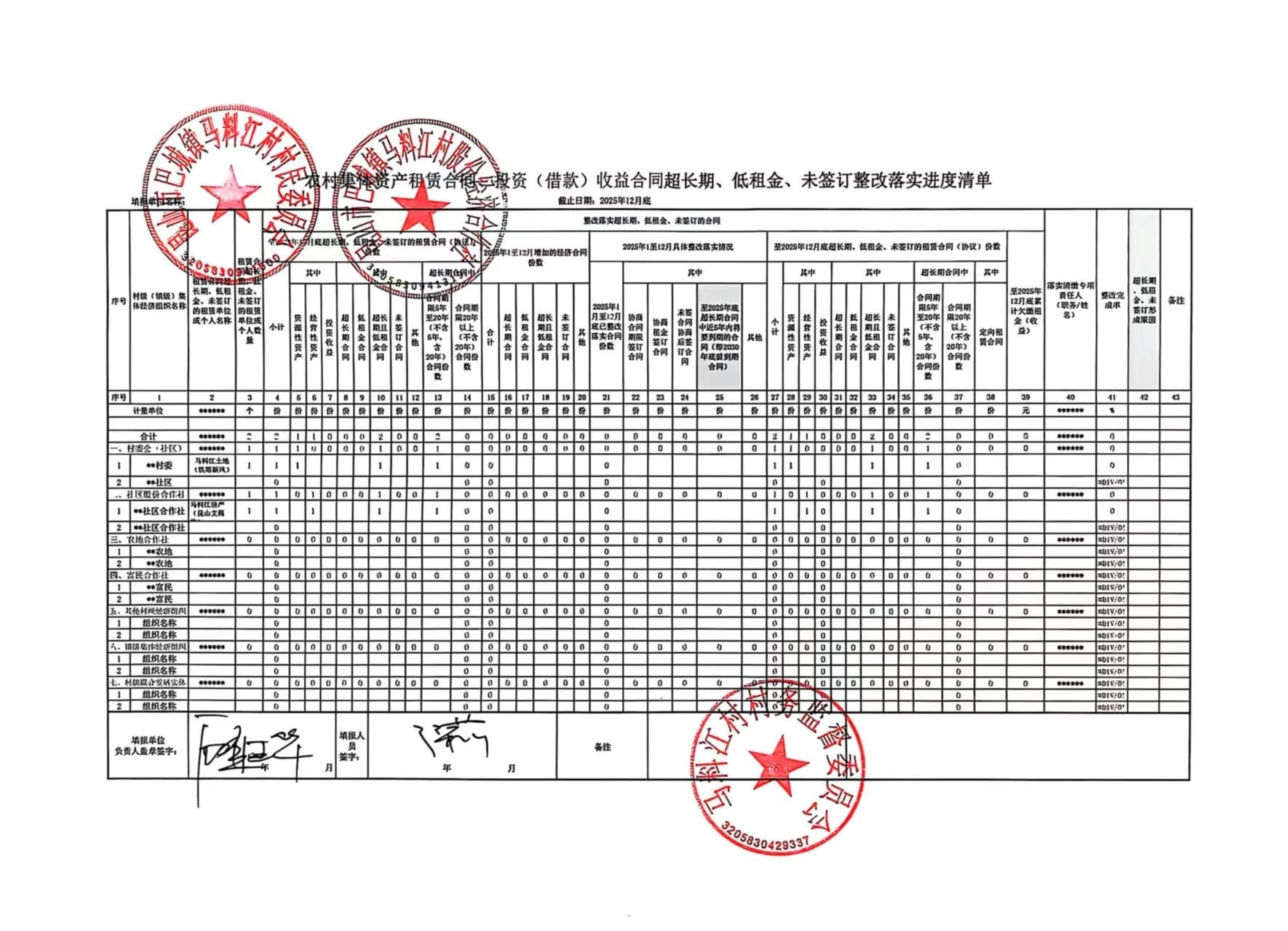 12月底农村集体资产资源经济合同收缴进度调查表(6张表)