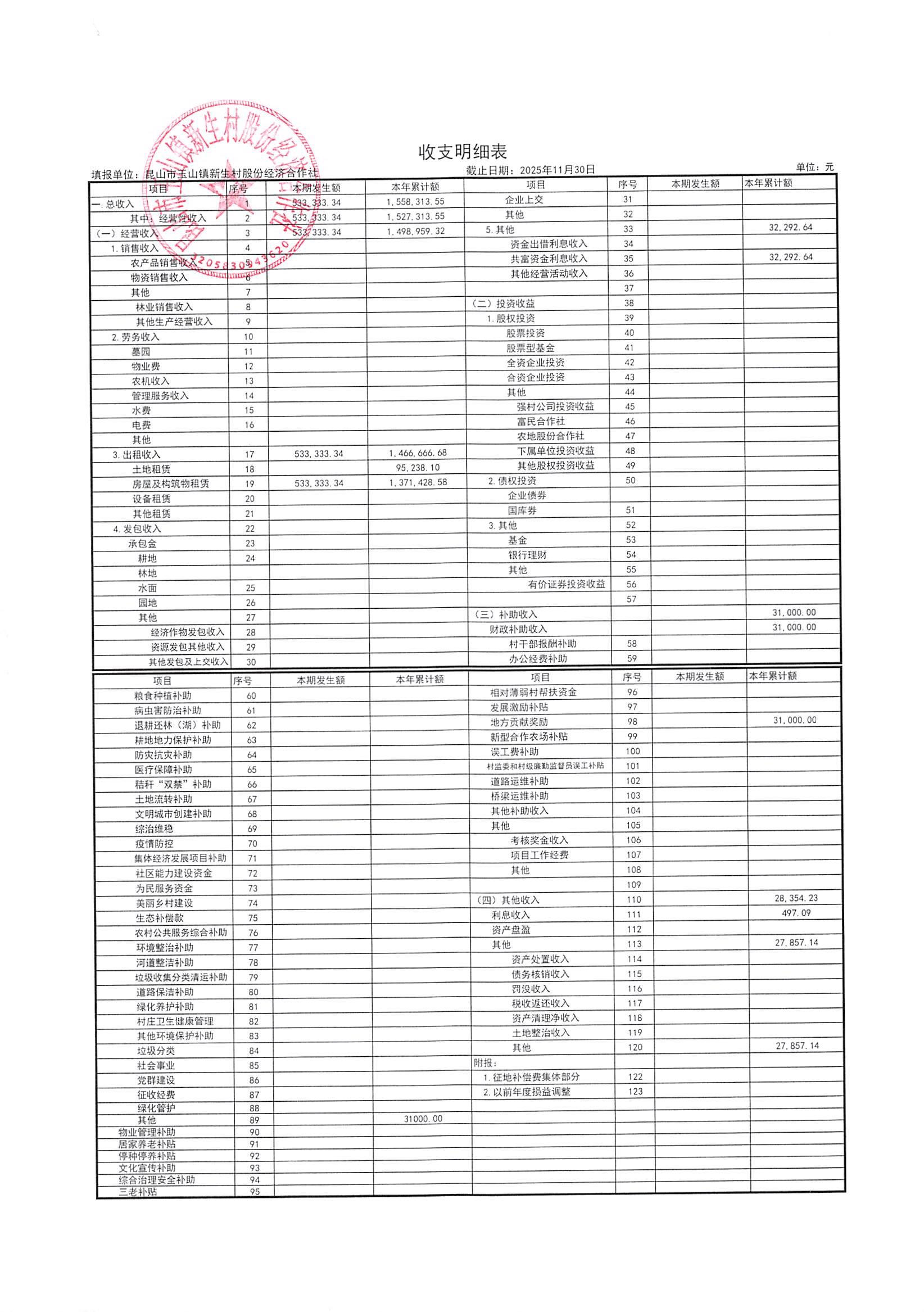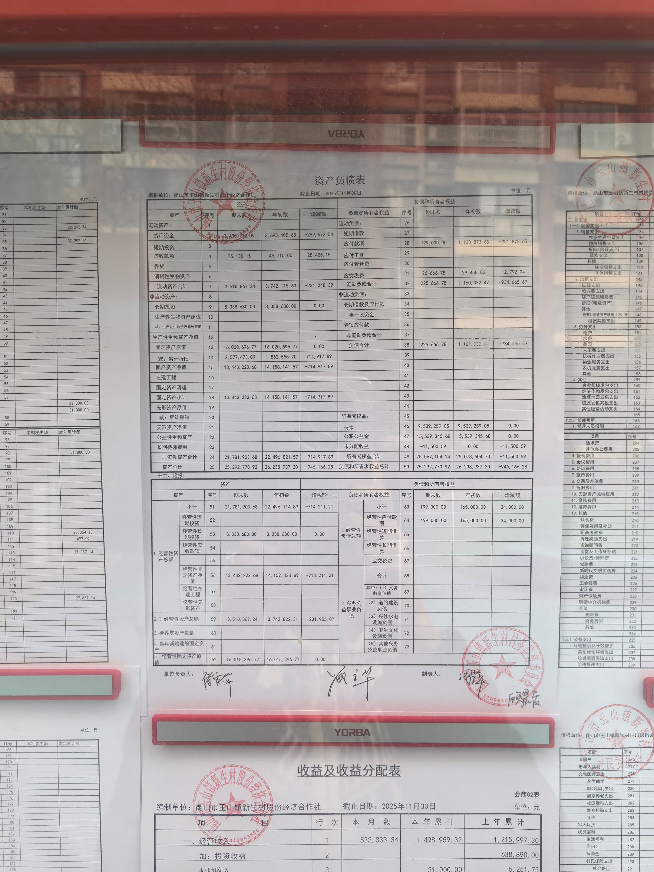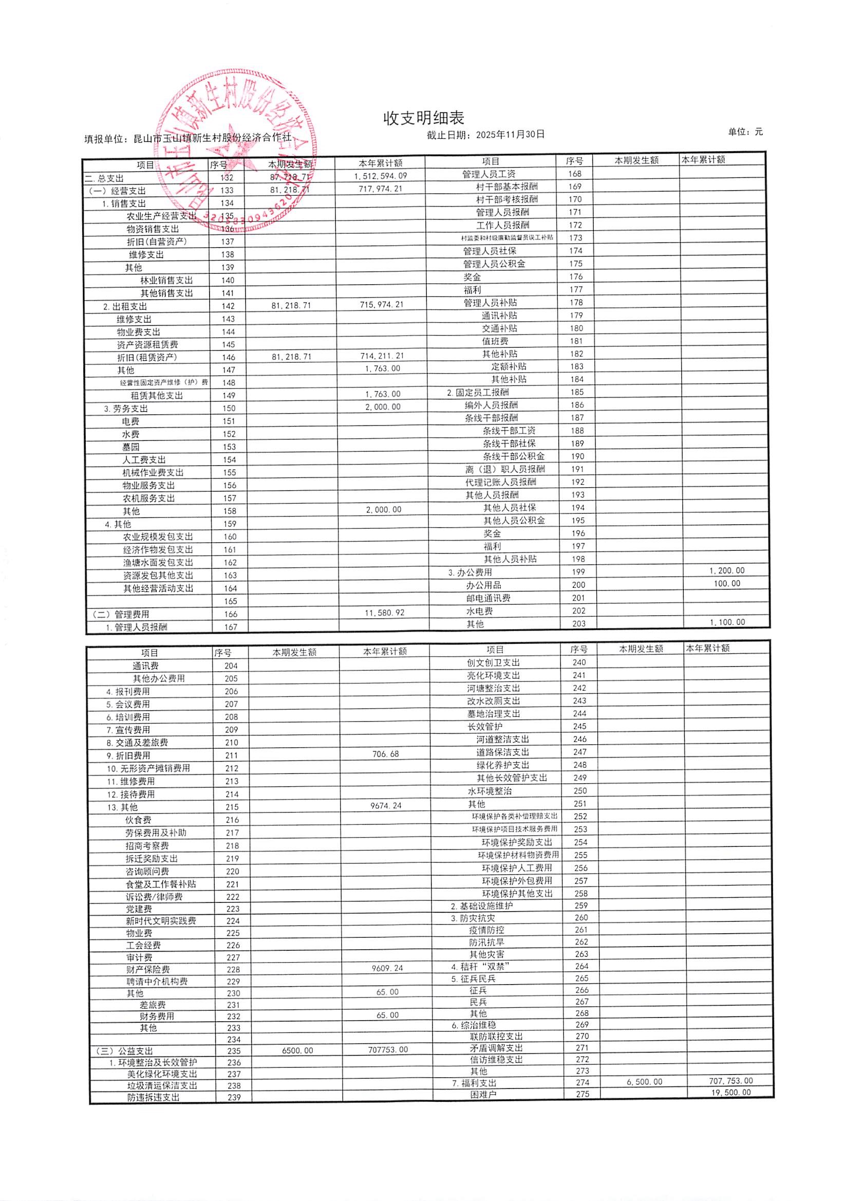 2025年12月新生村股份经济合作社财务公开
