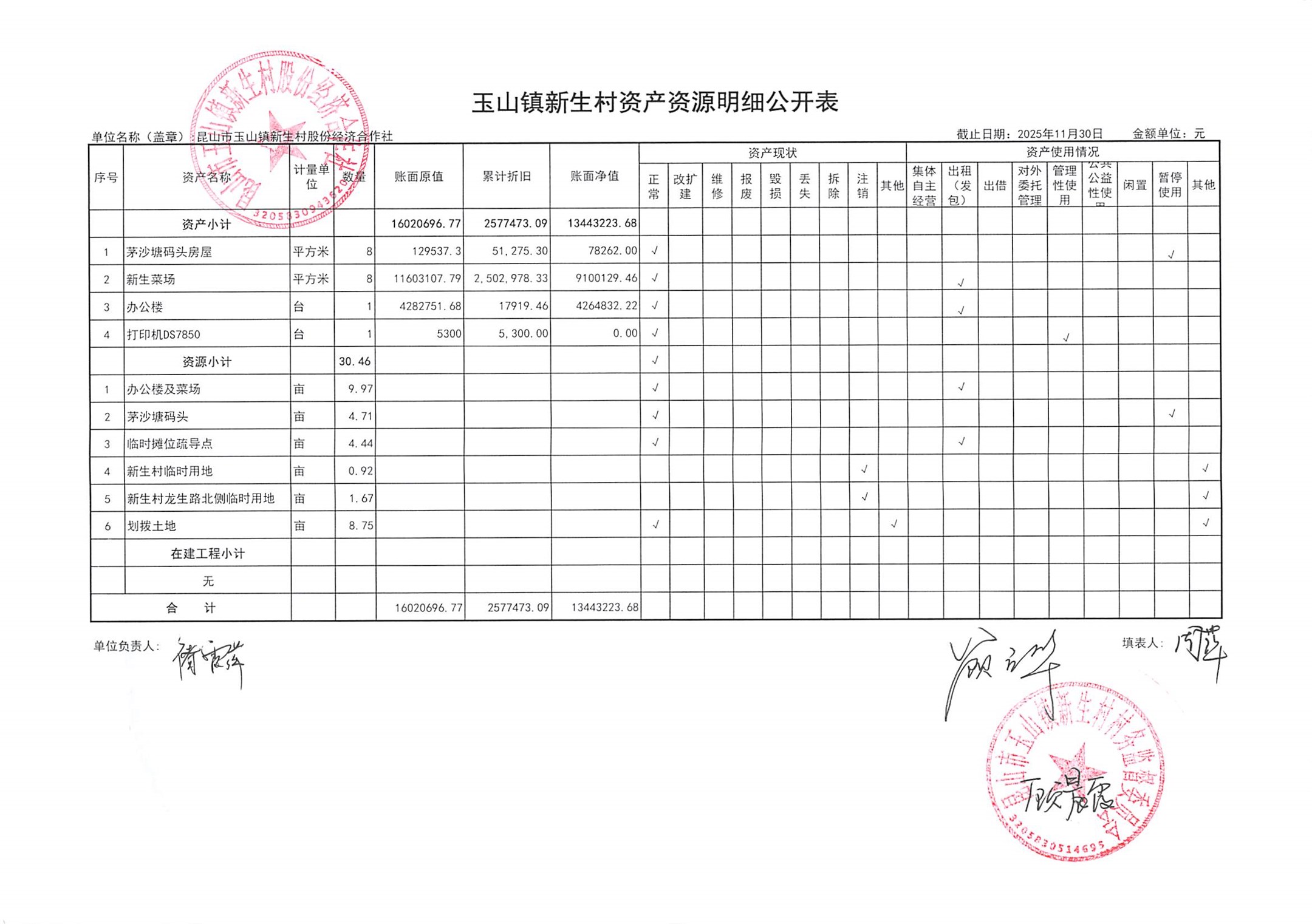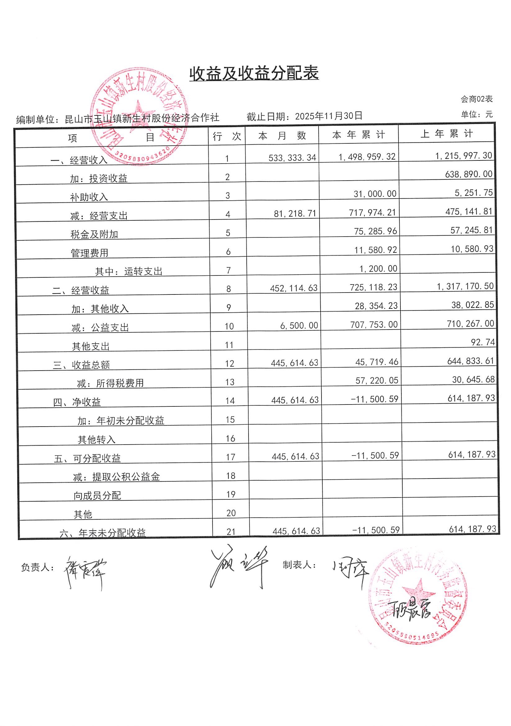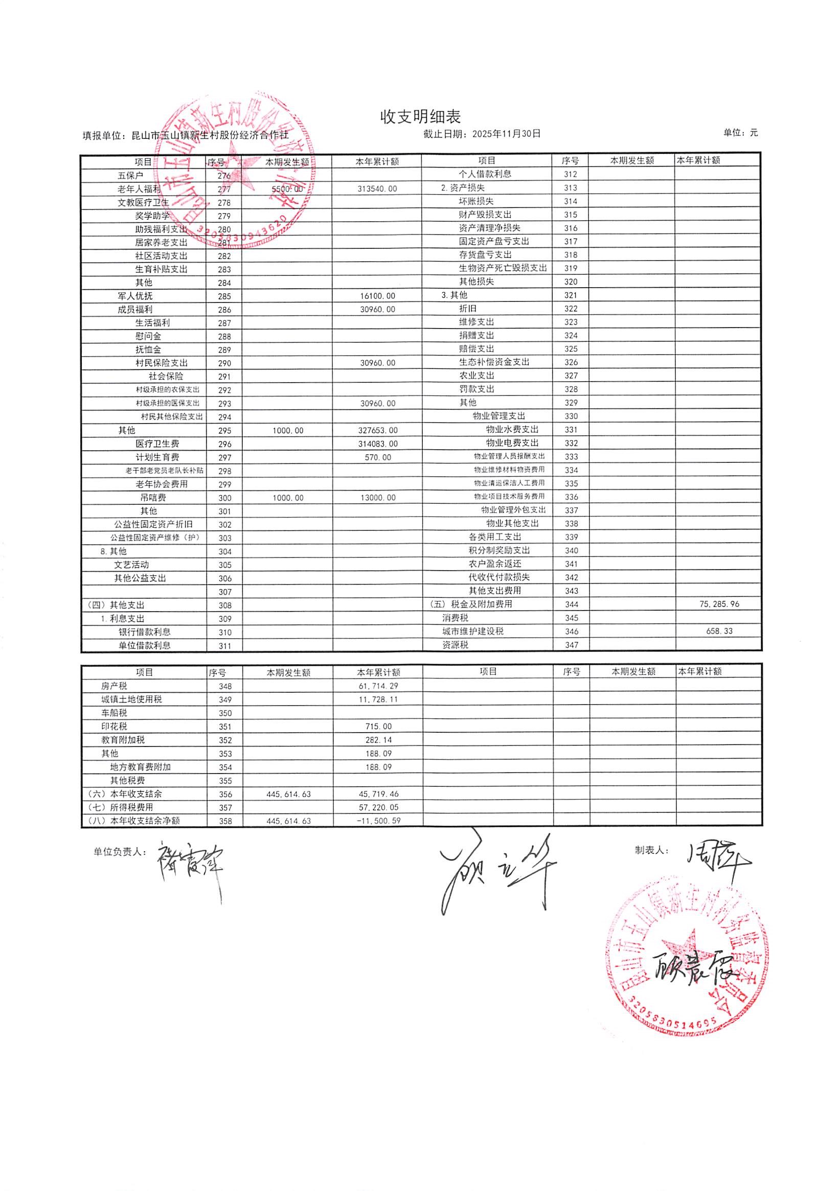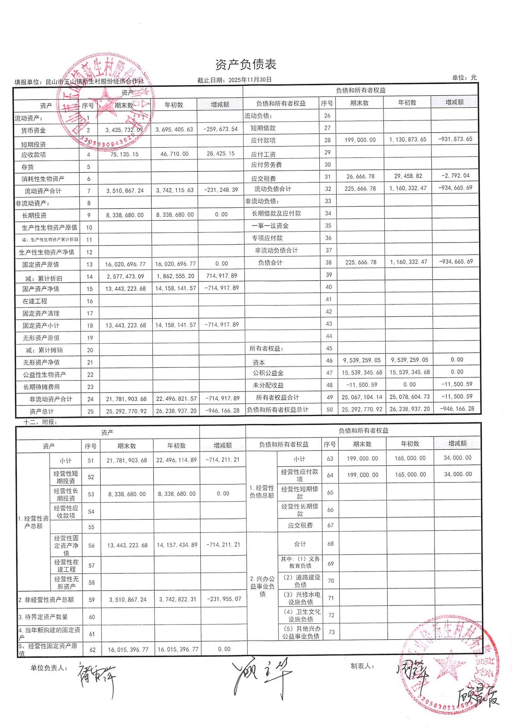 2025年12月新生村股份经济合作社财务公开