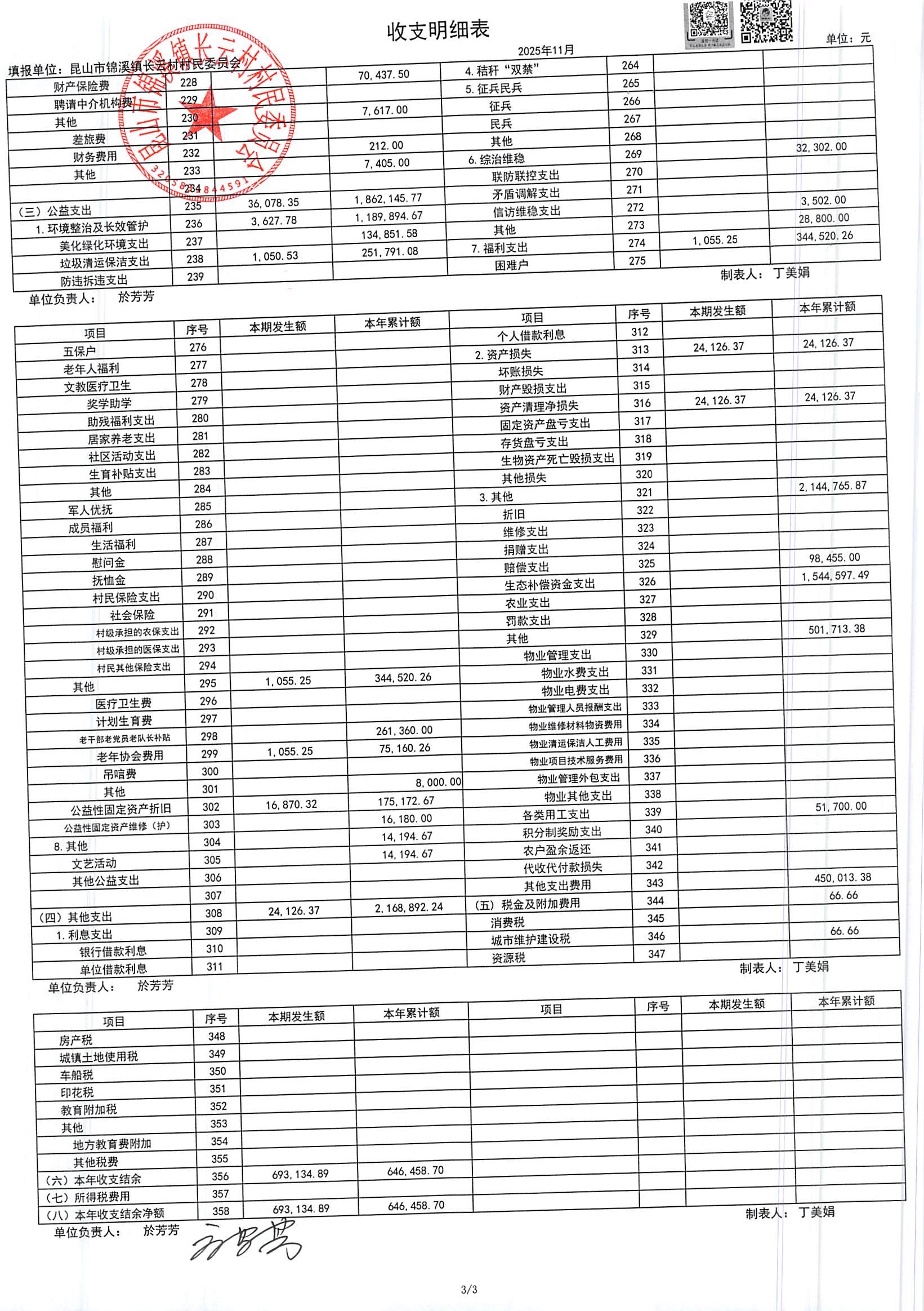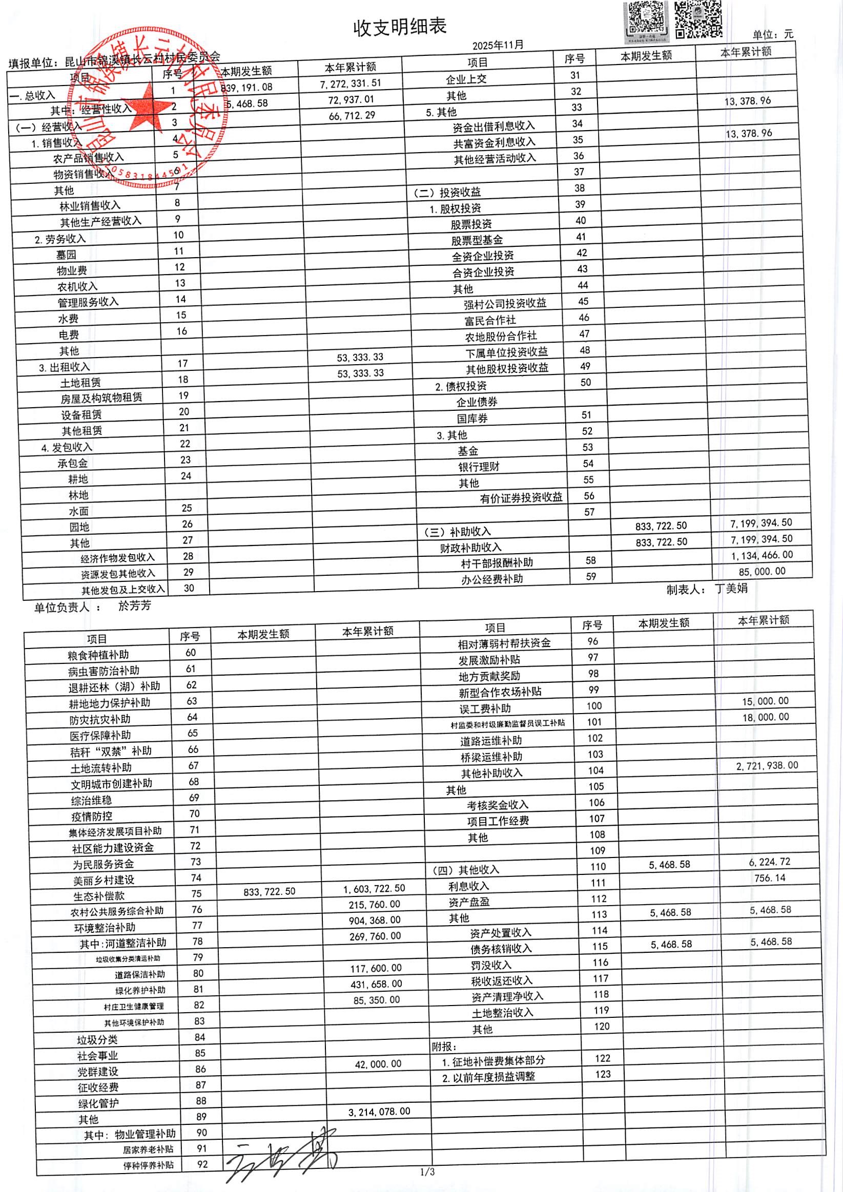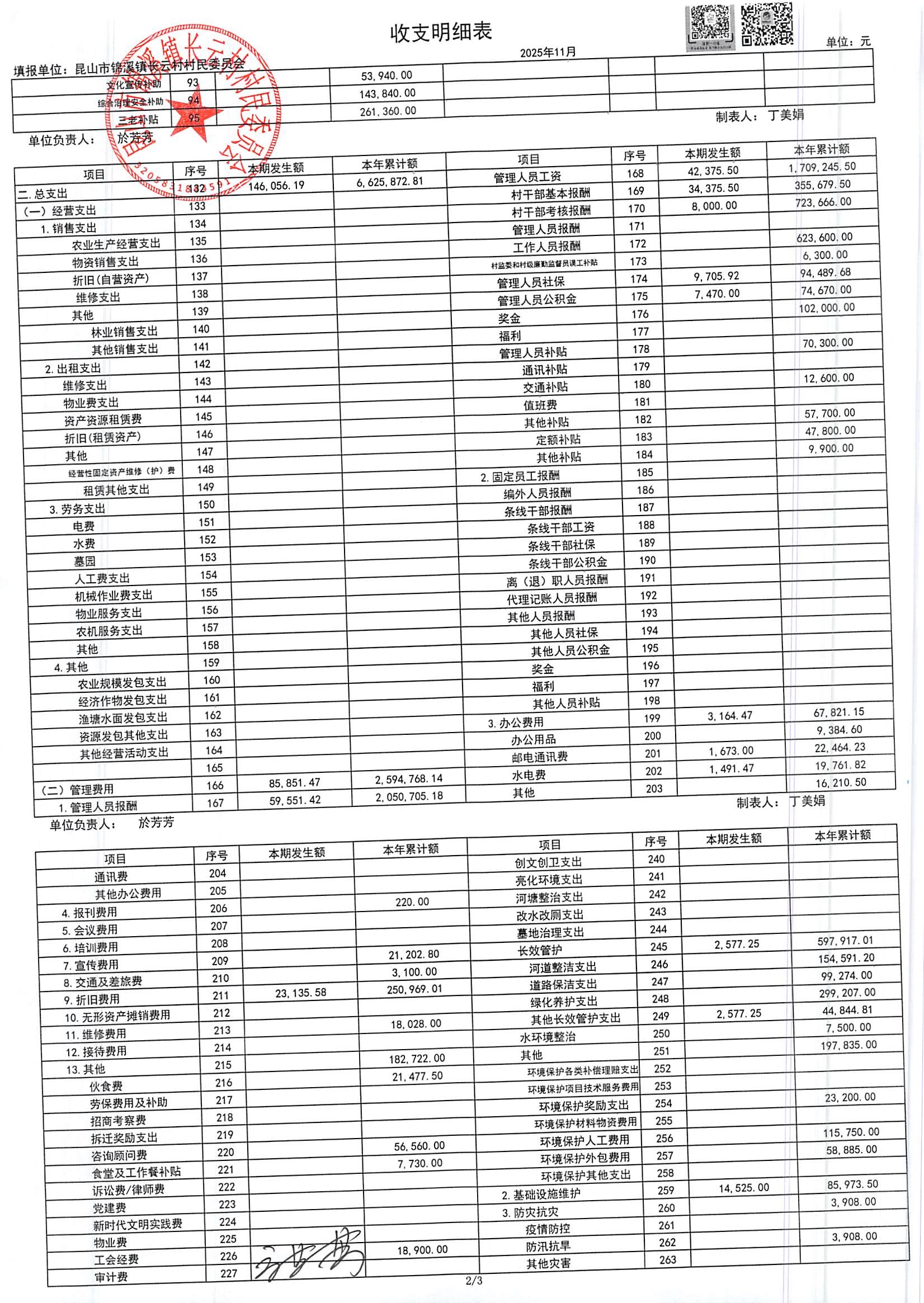 2025年第四季度财务公开定期公开(村委会)(11月份)