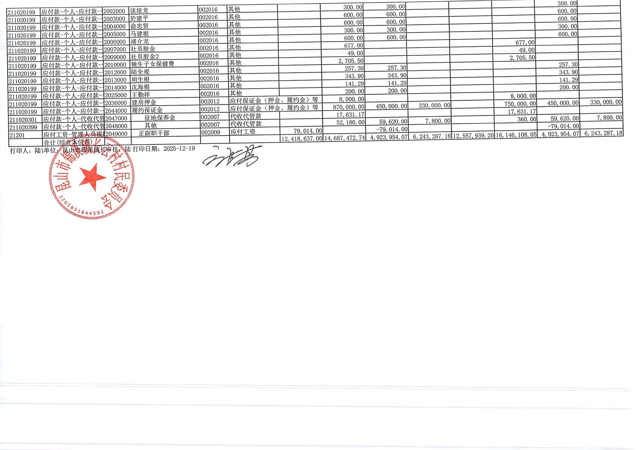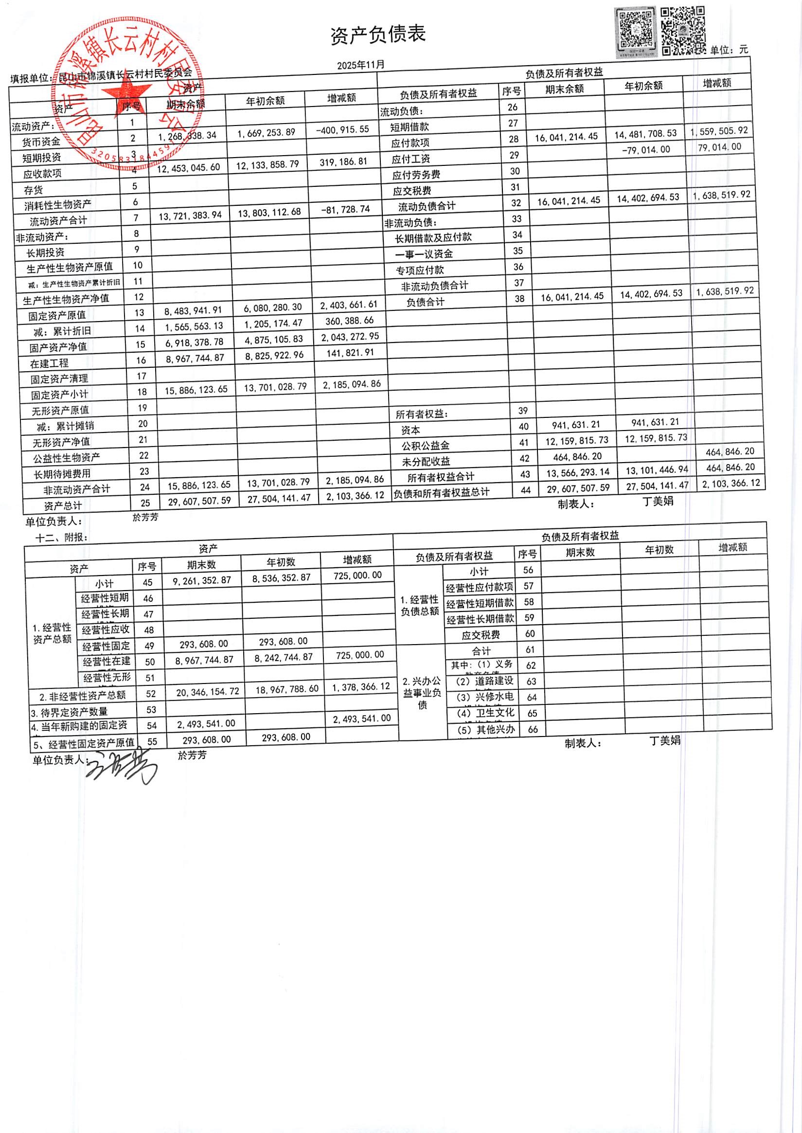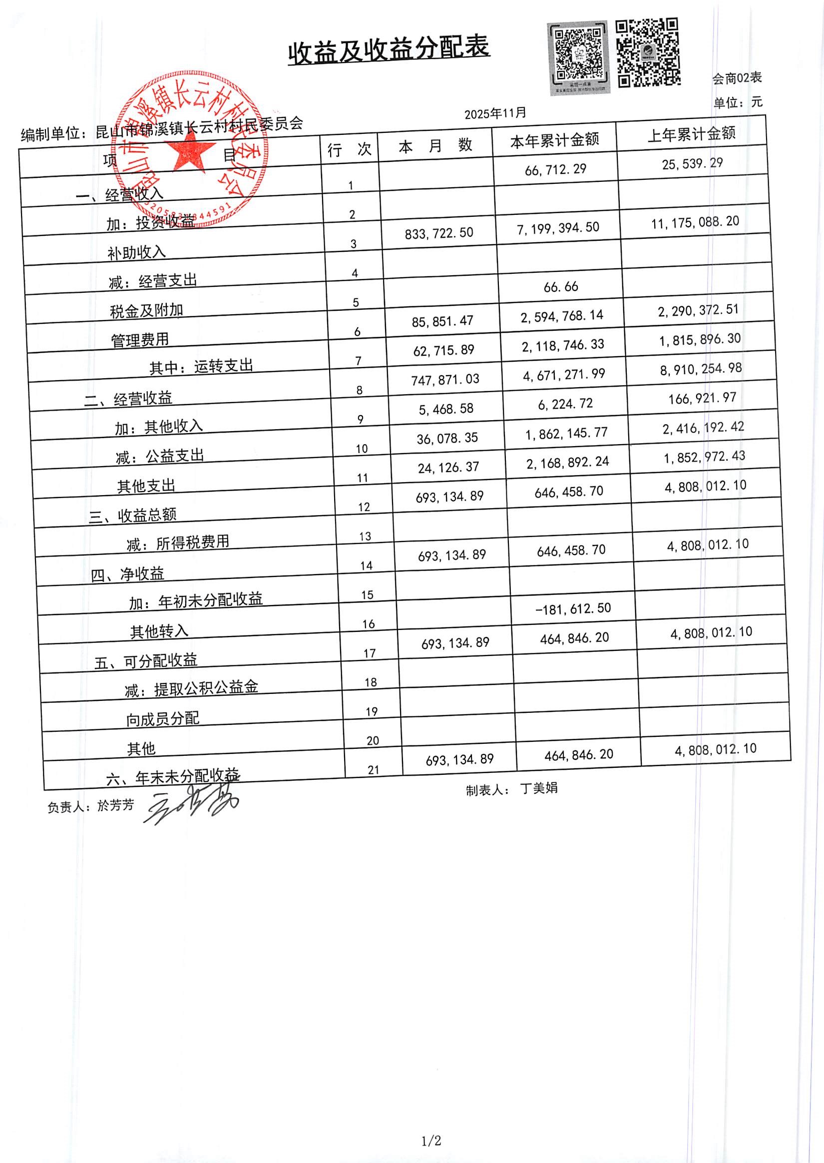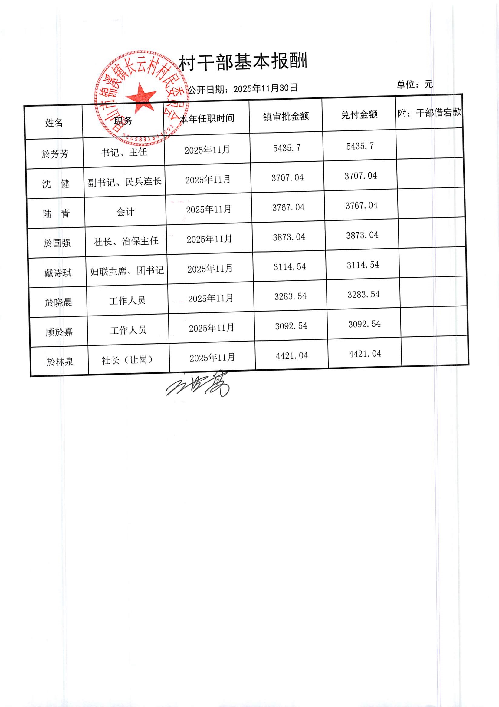 2025年第四季度财务公开定期公开(村委会)(11月份)