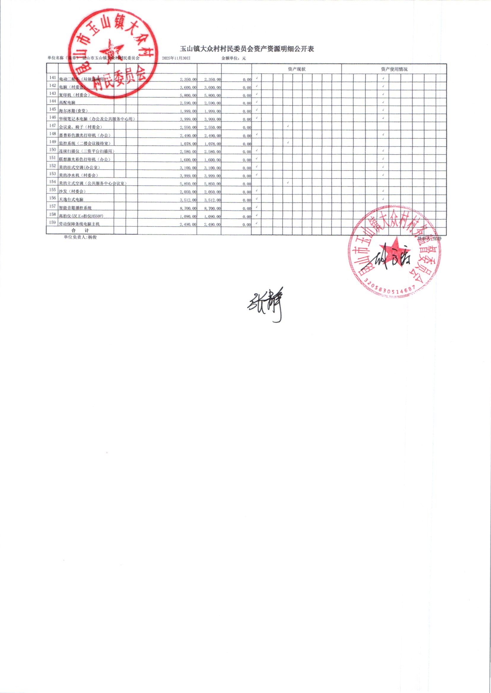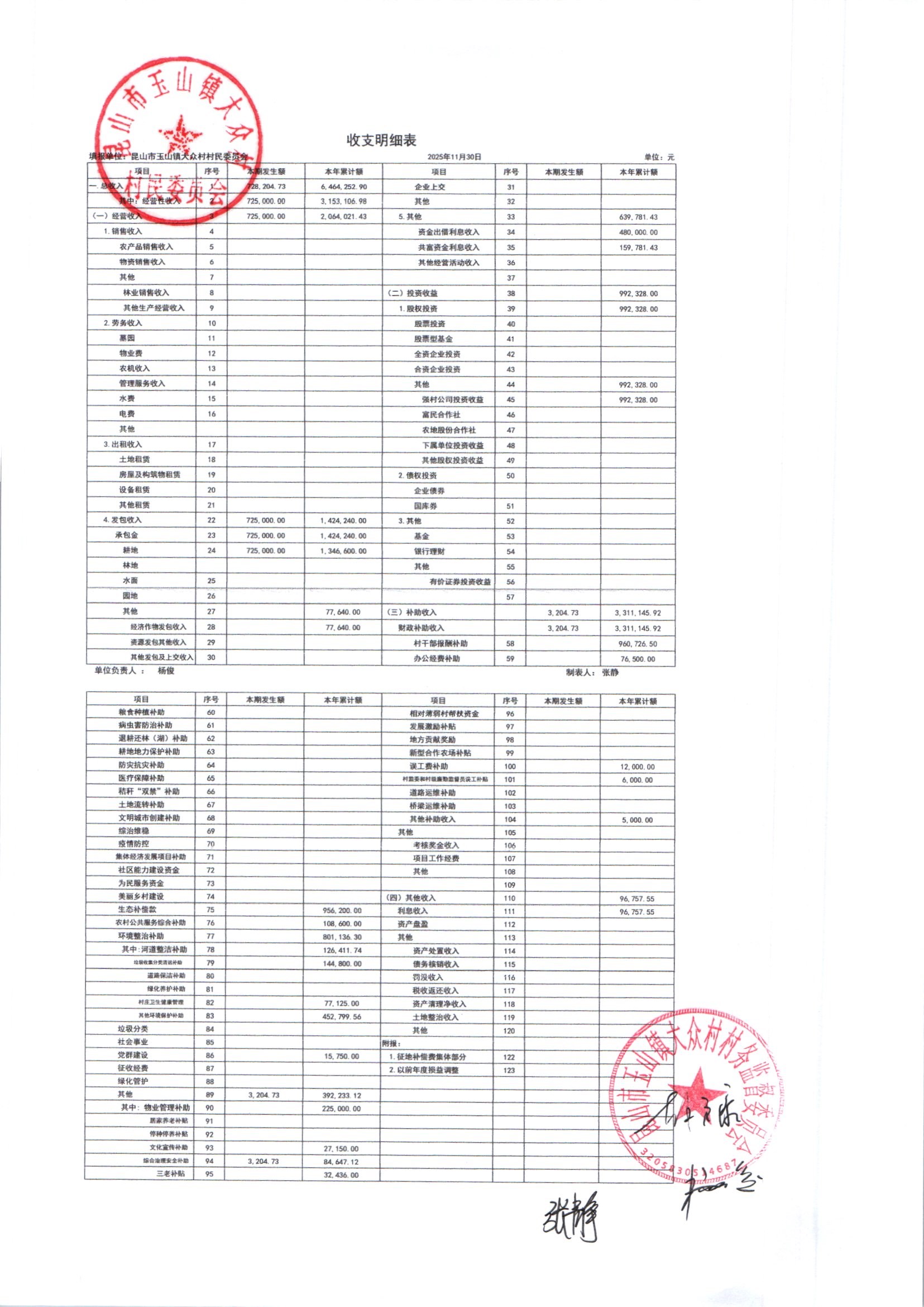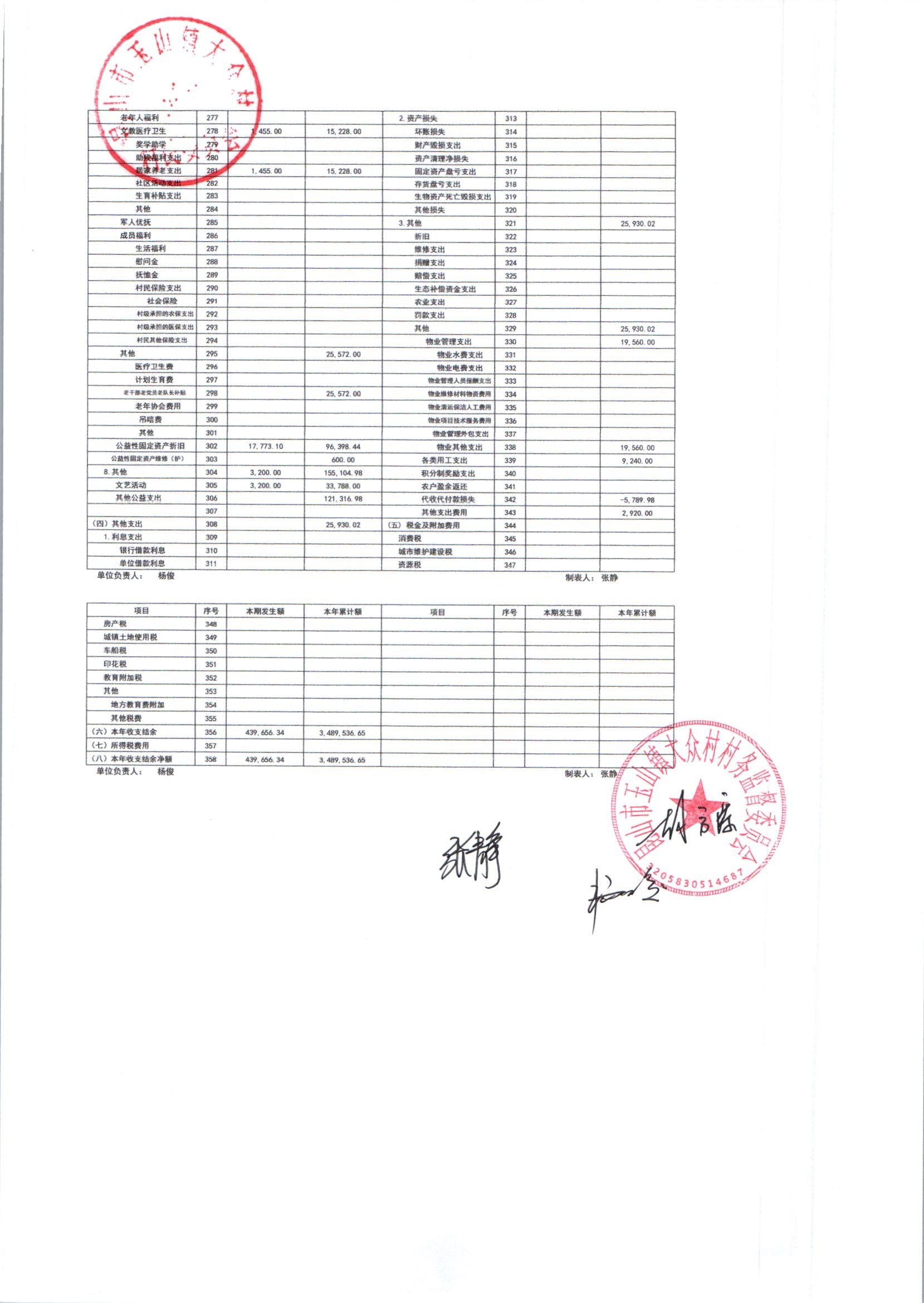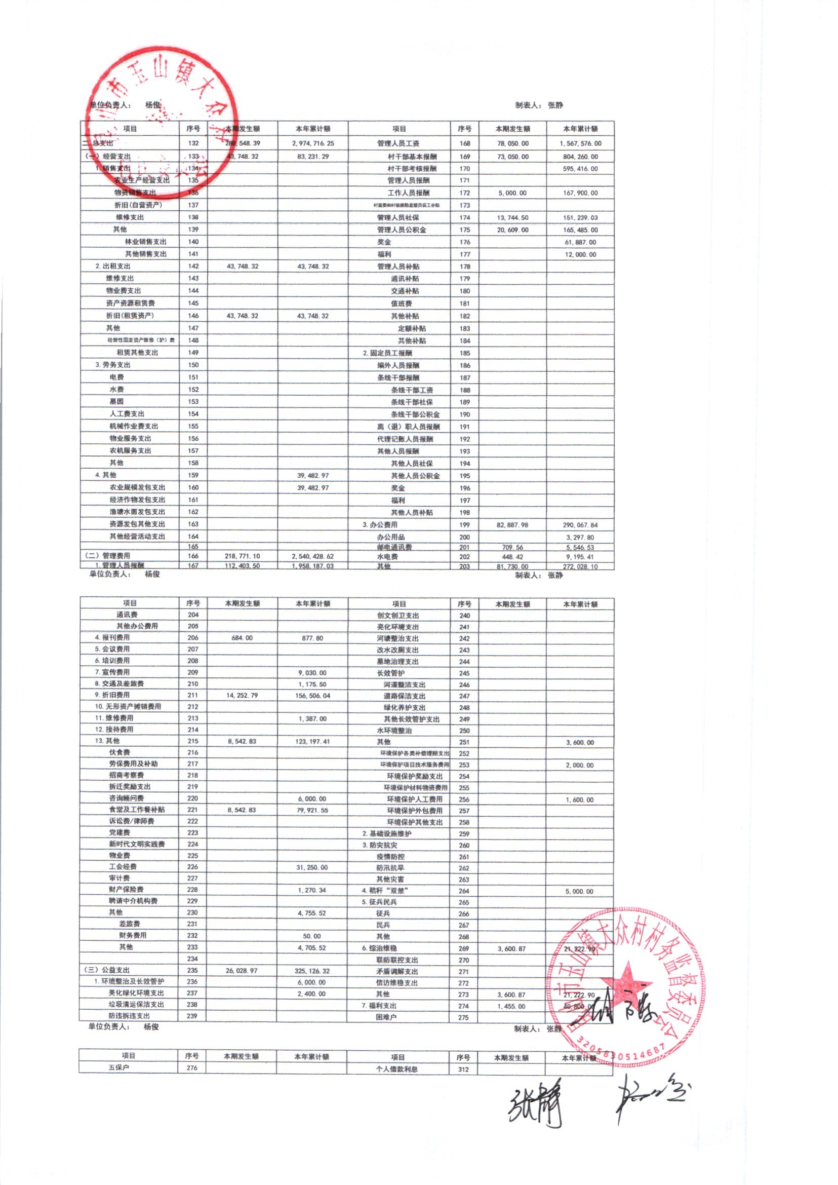 大众村2025年12月份村委会财务公开