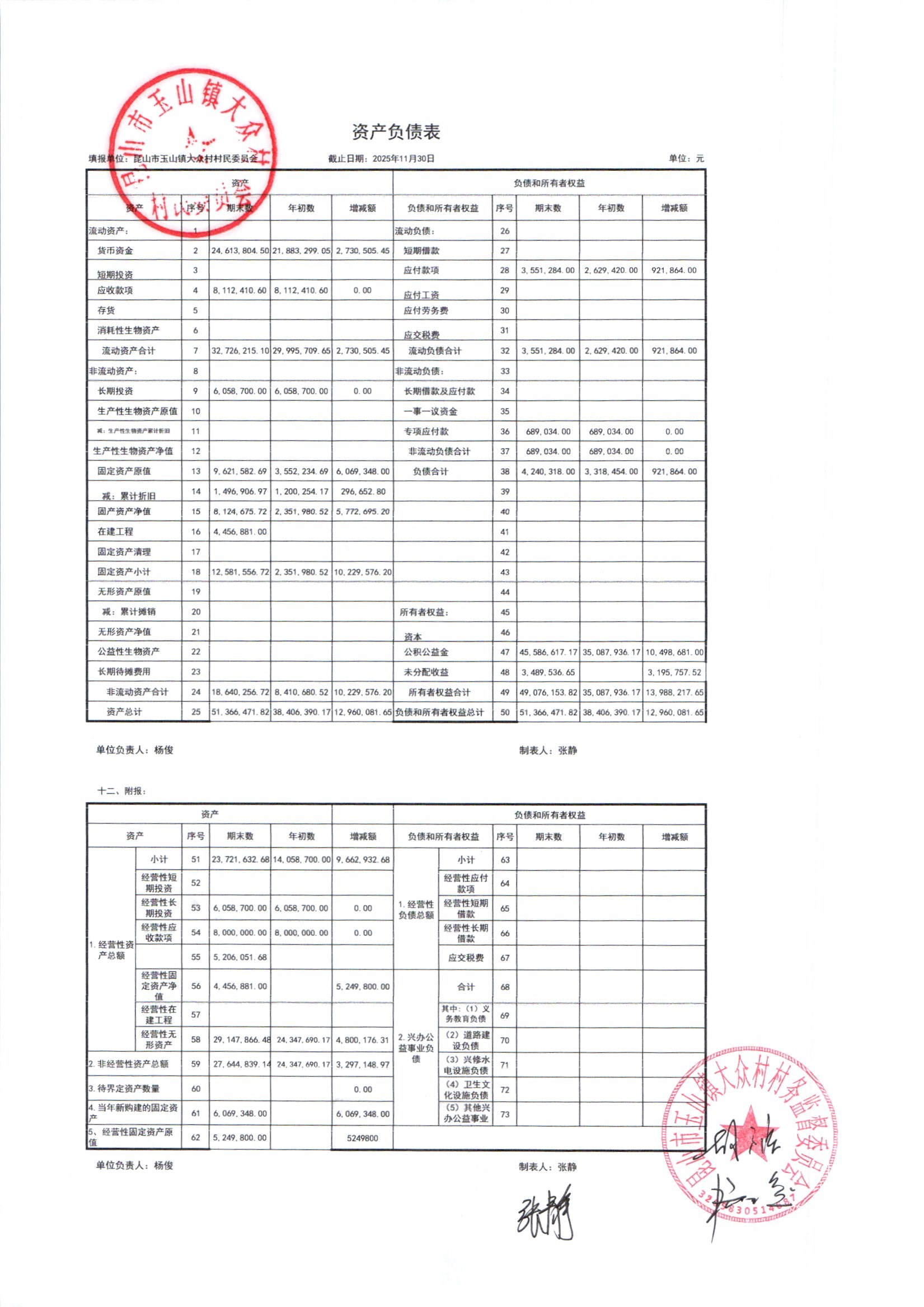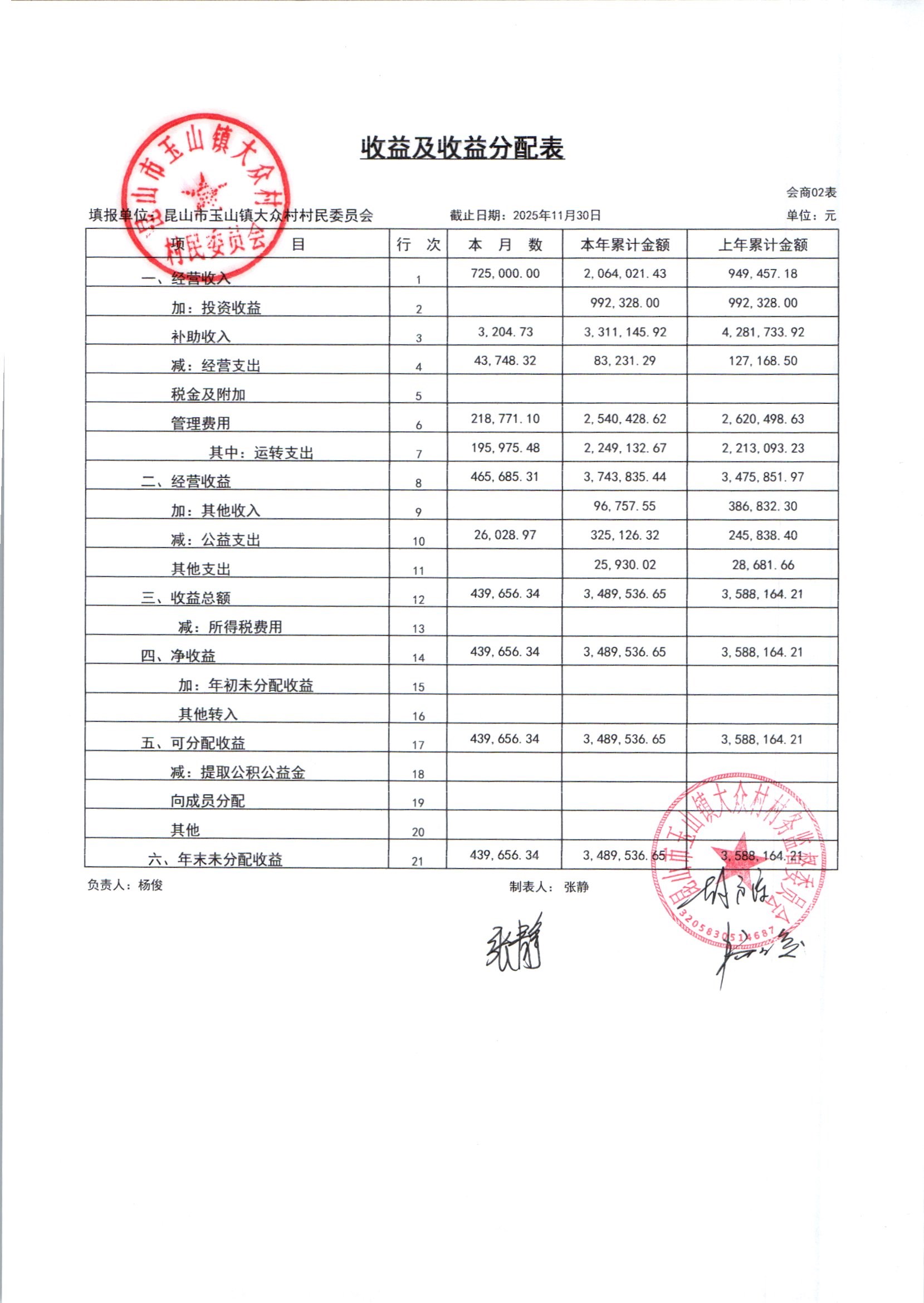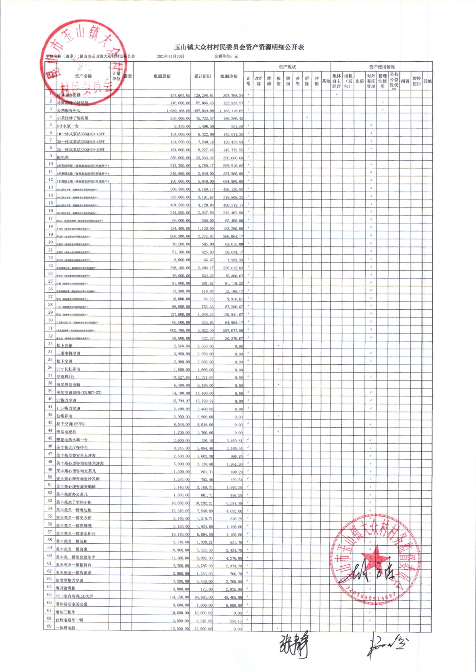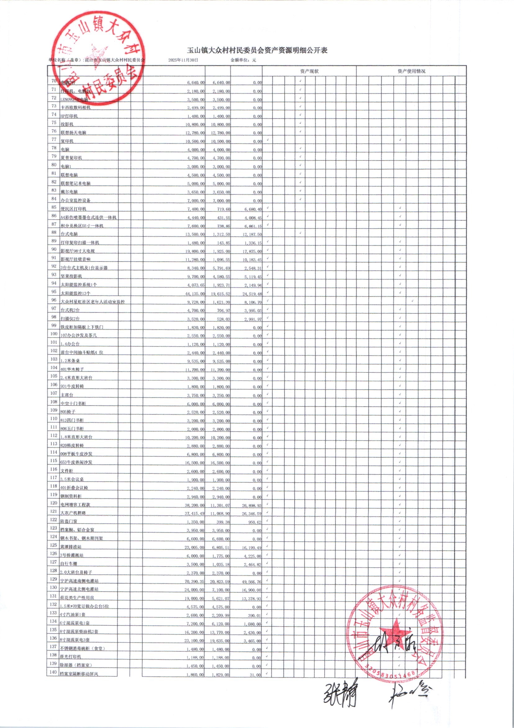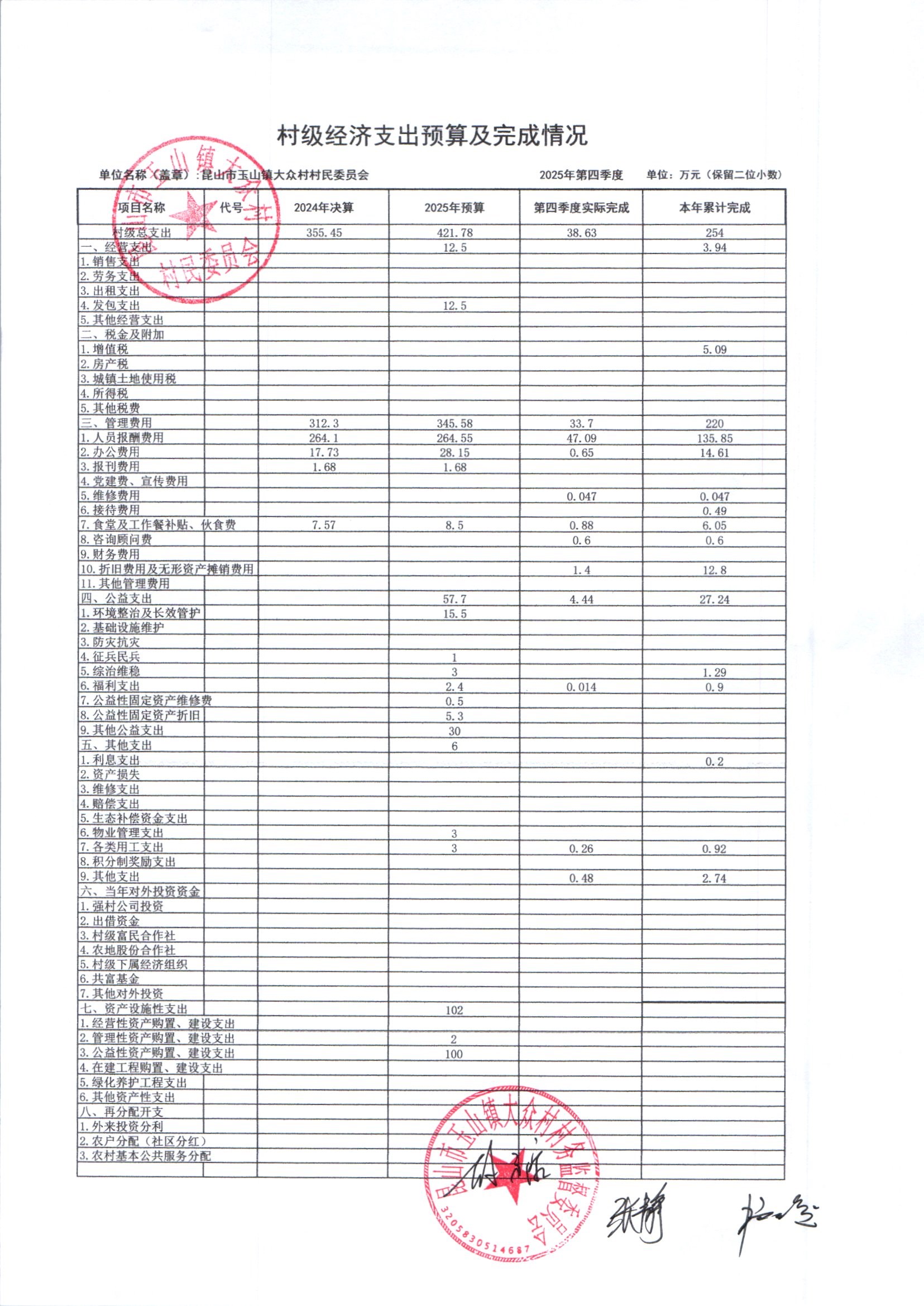 大众村2025年12月份村委会财务公开
