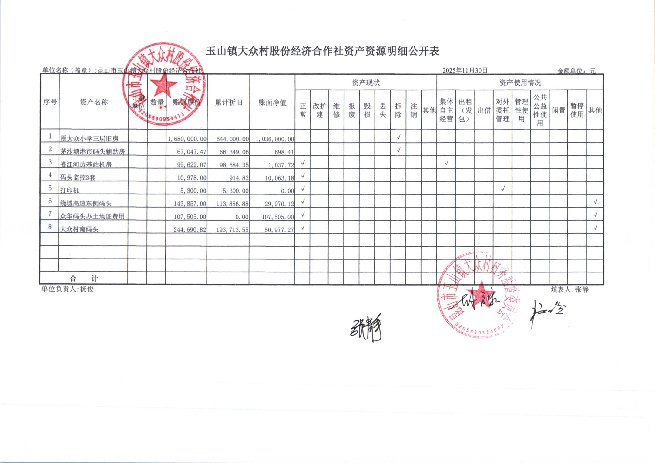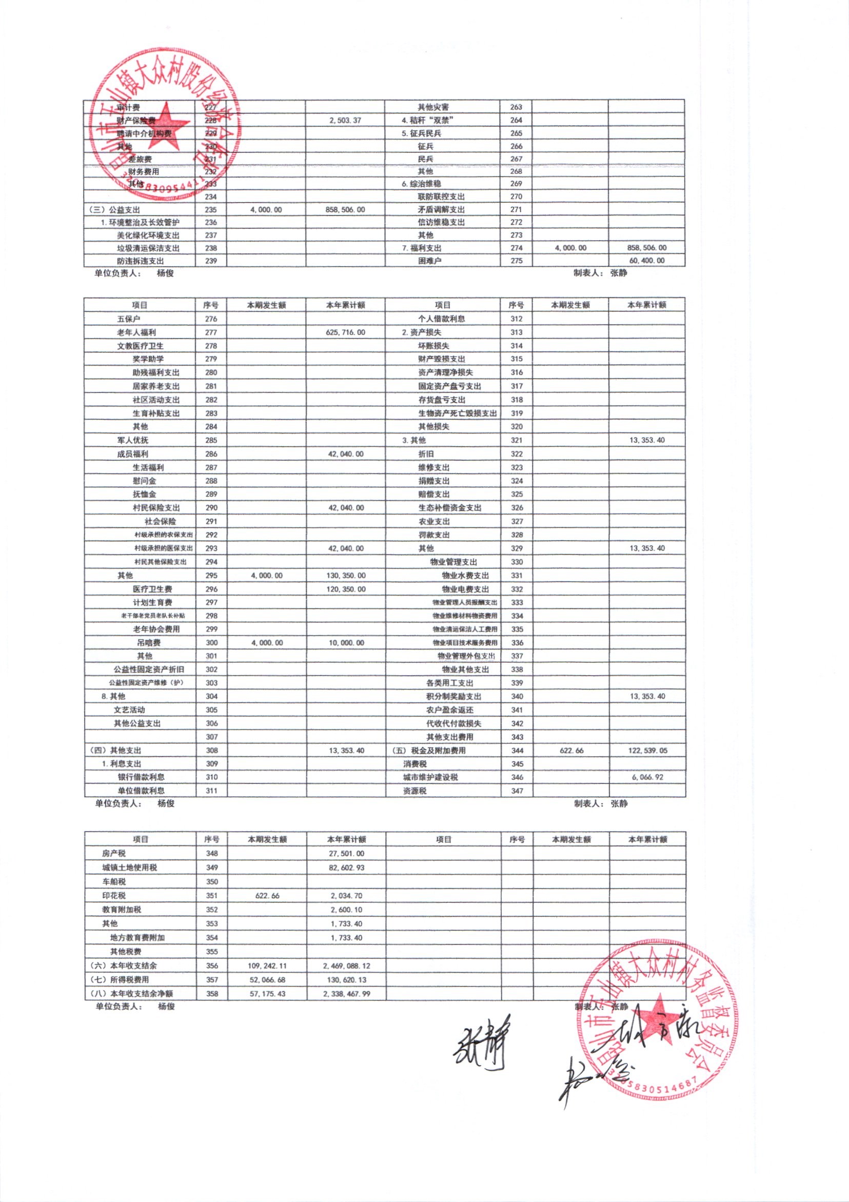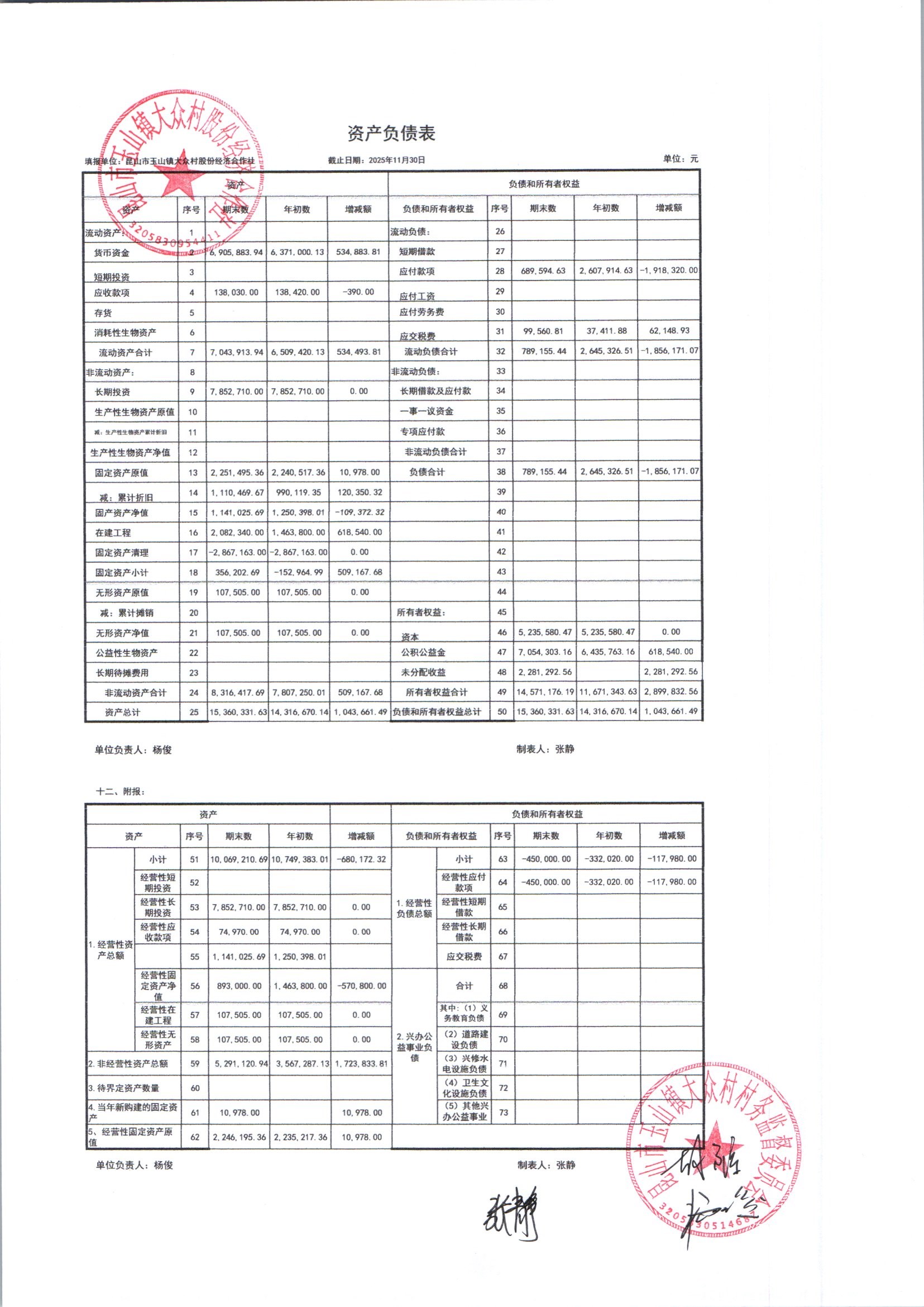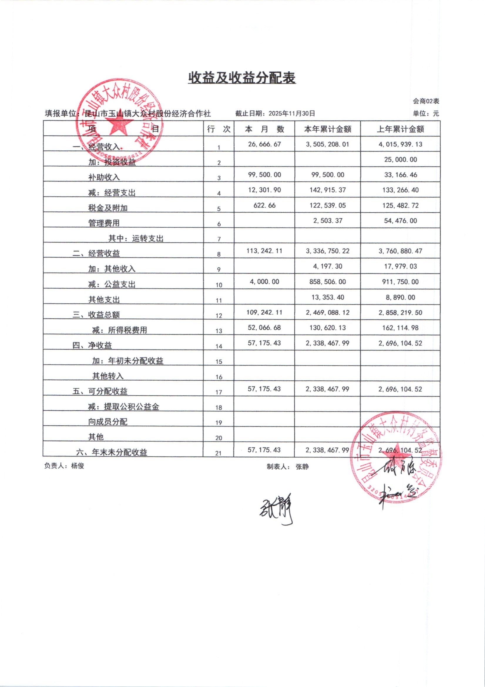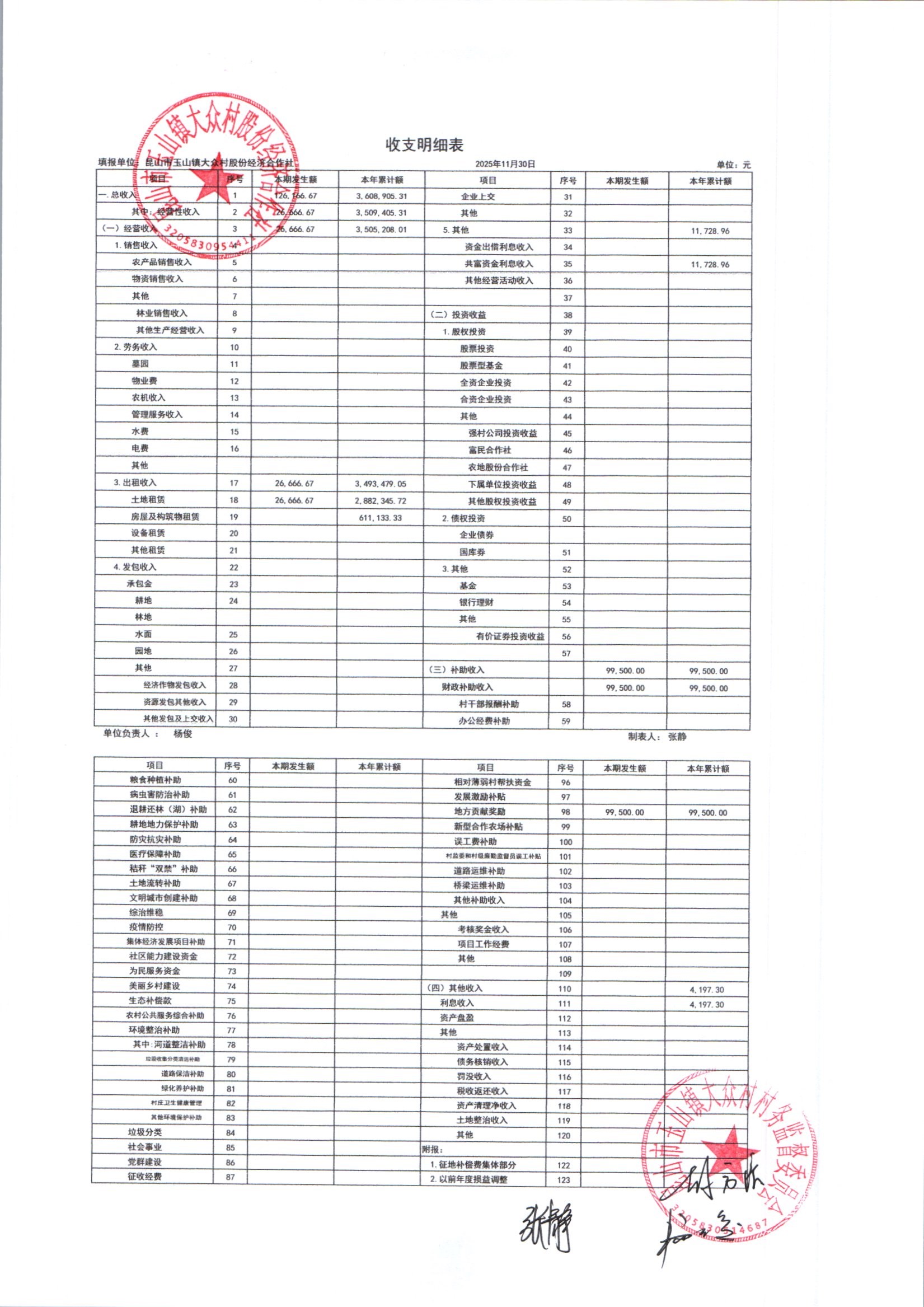 大众村2025年12月份股份经济合作社财务公开