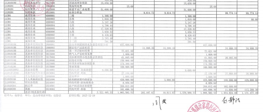 2025年11月村委会财务公开