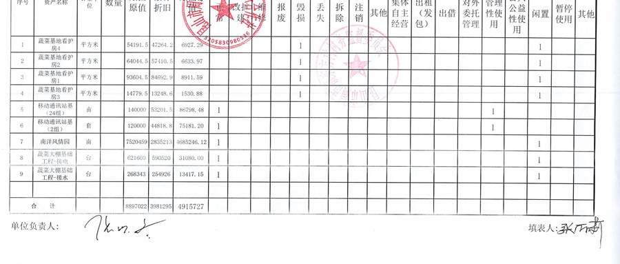 村盖章事项名录
