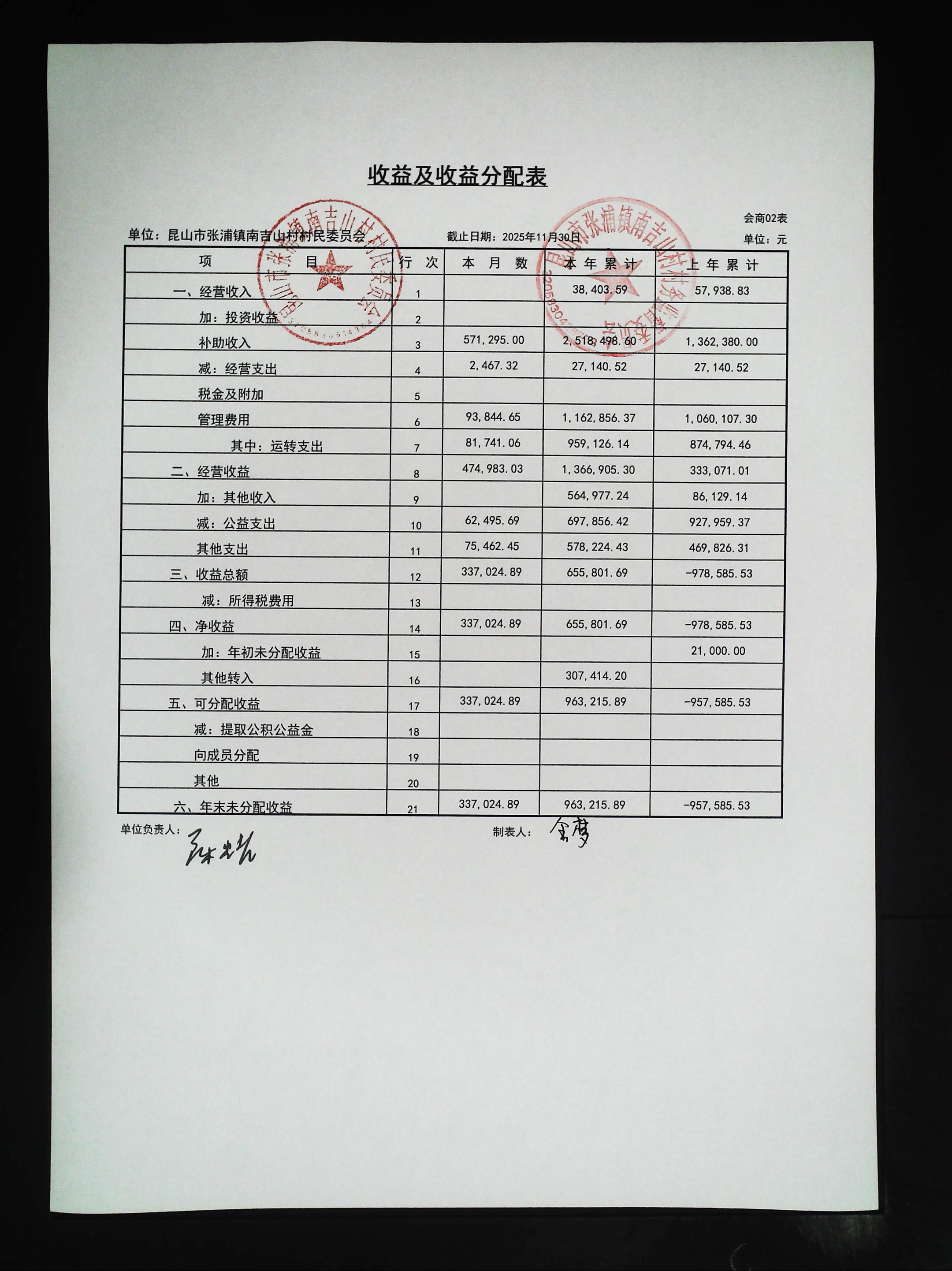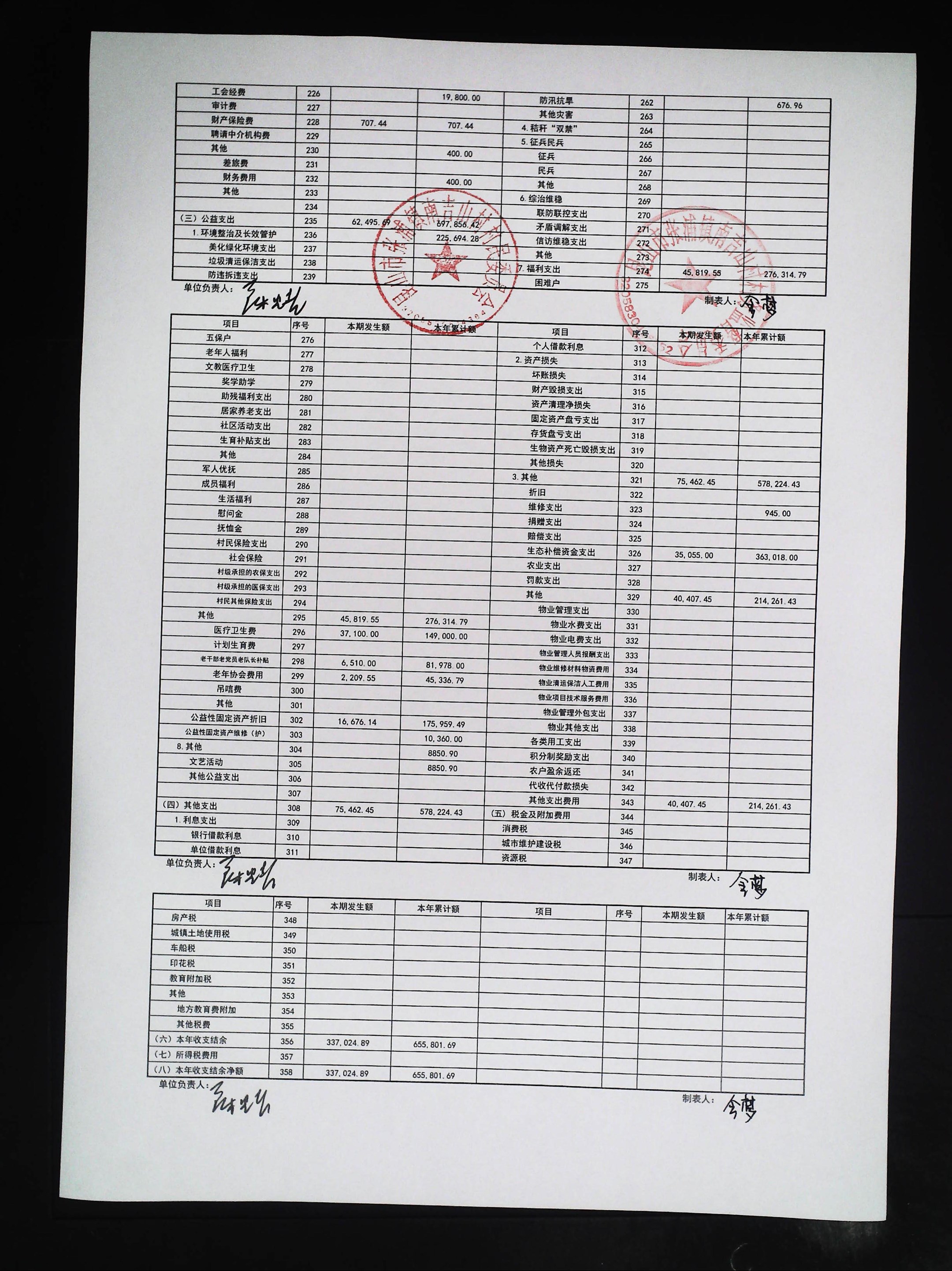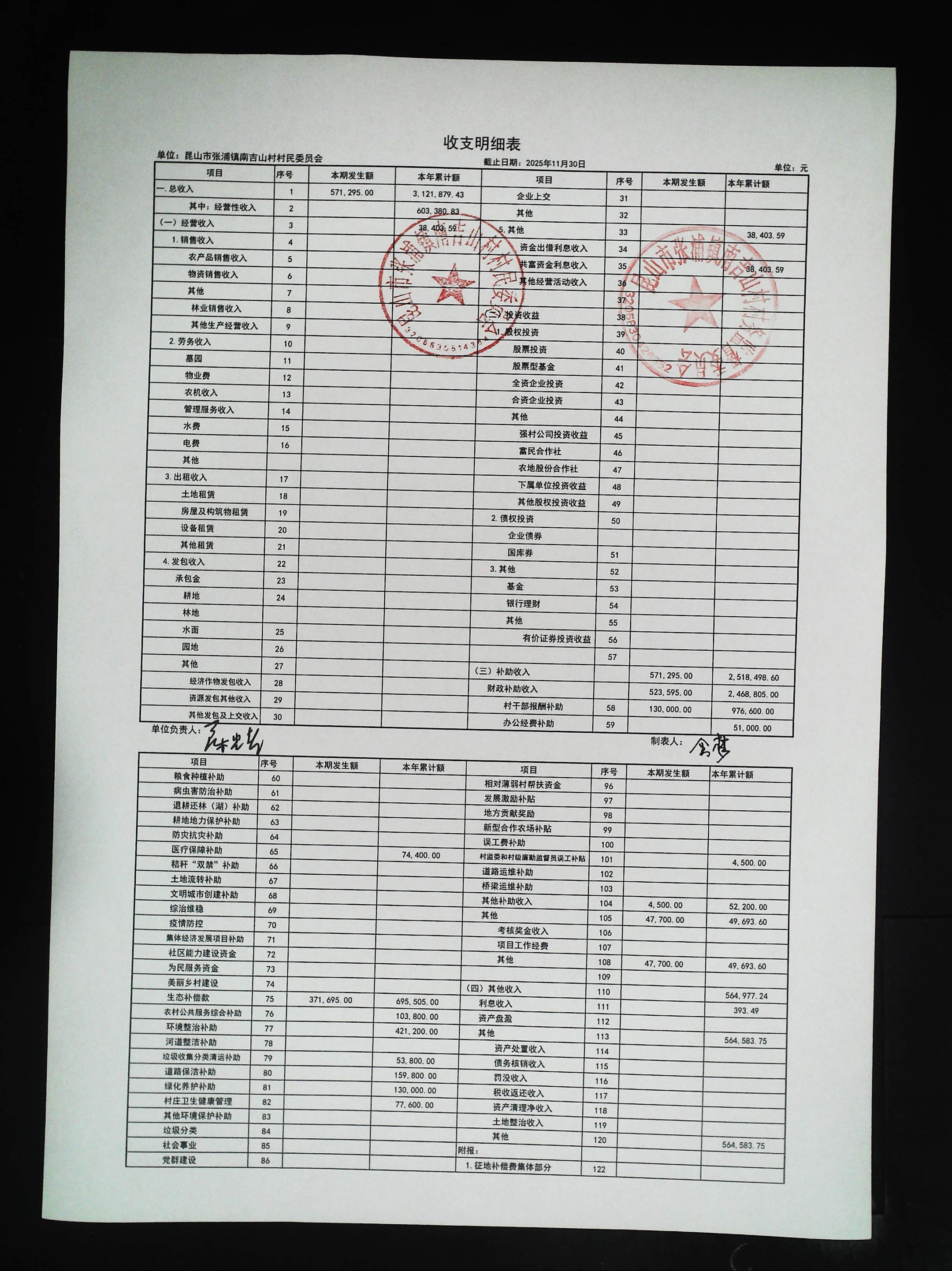 2025年11月村财务公开