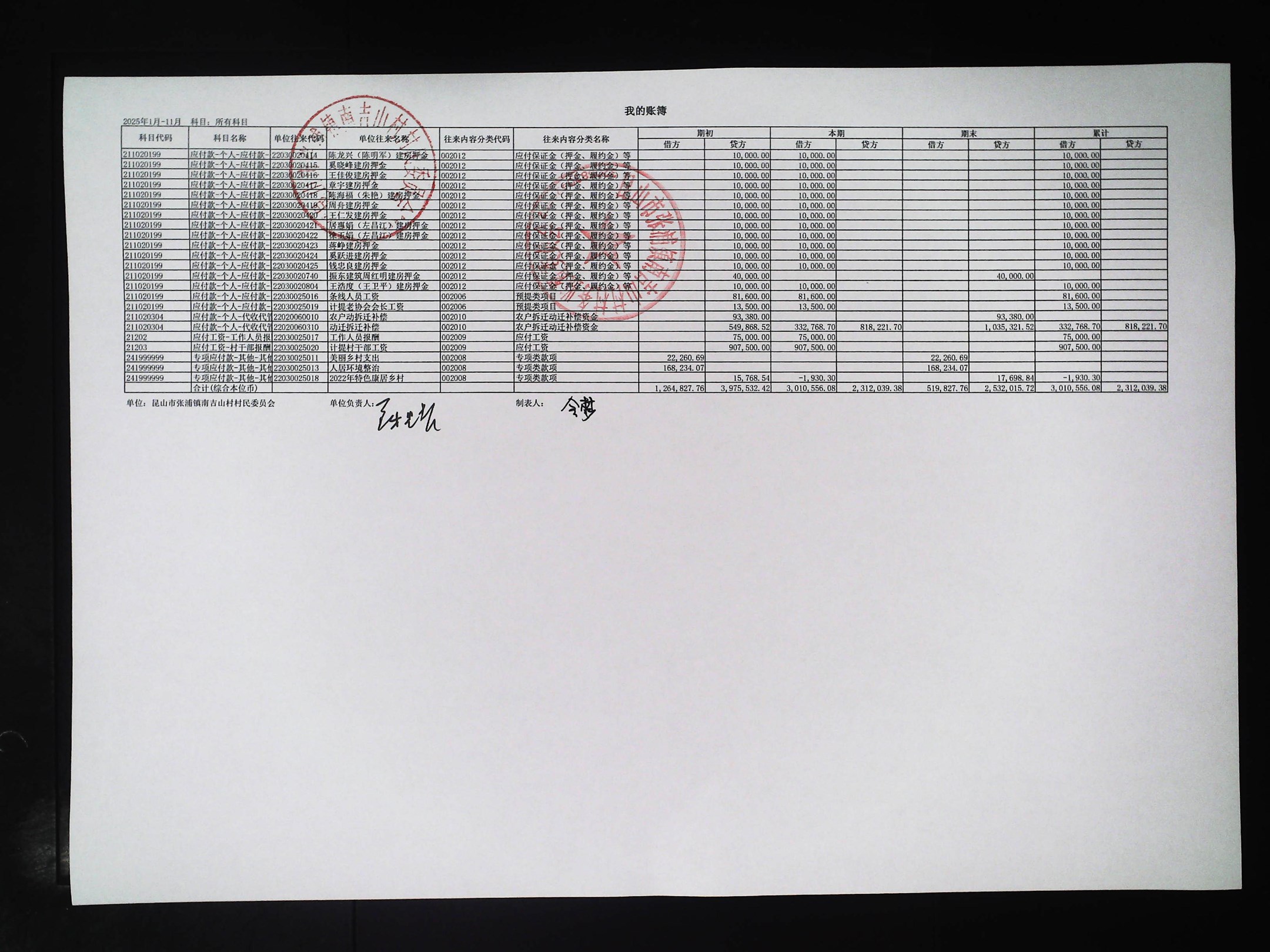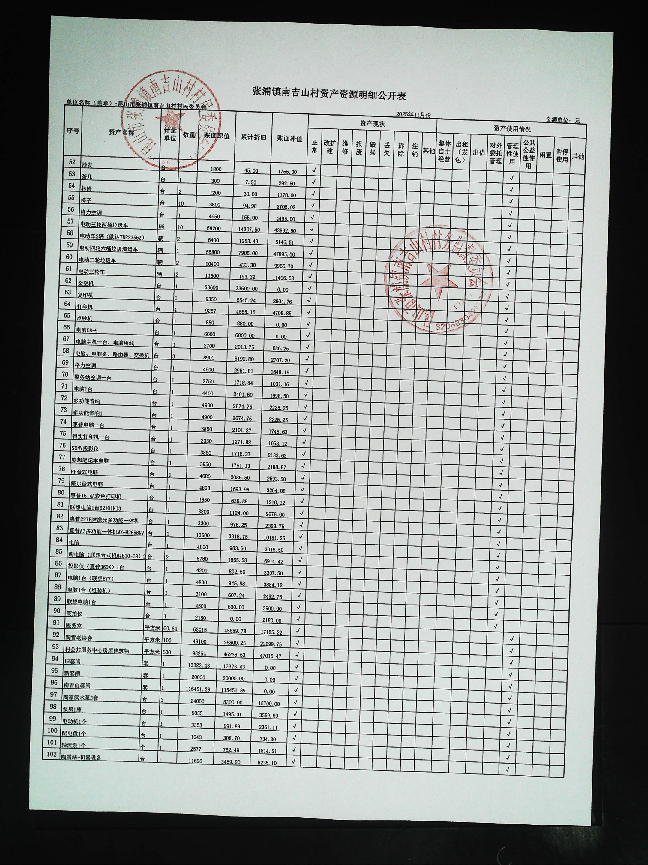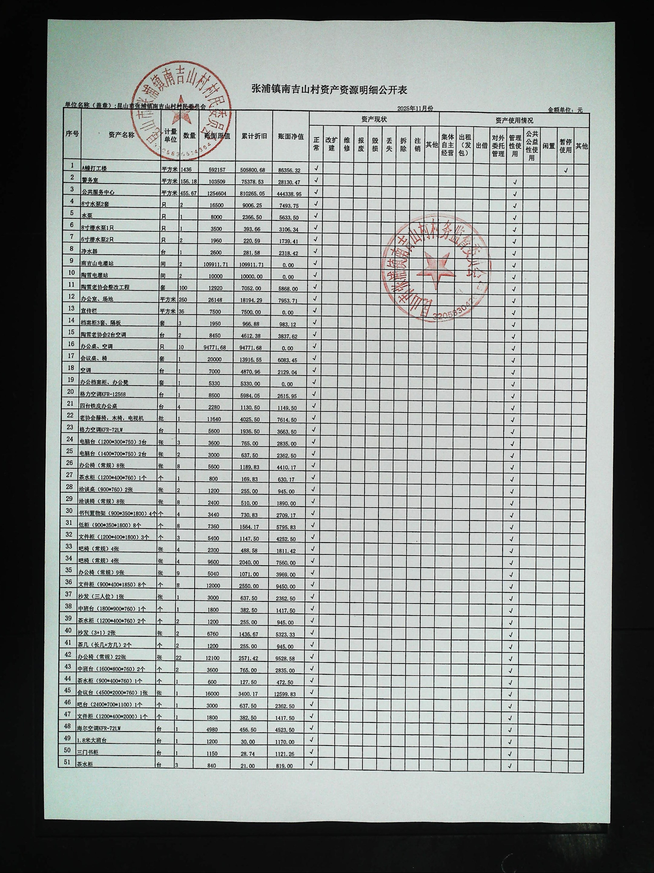 2025年11月村财务公开