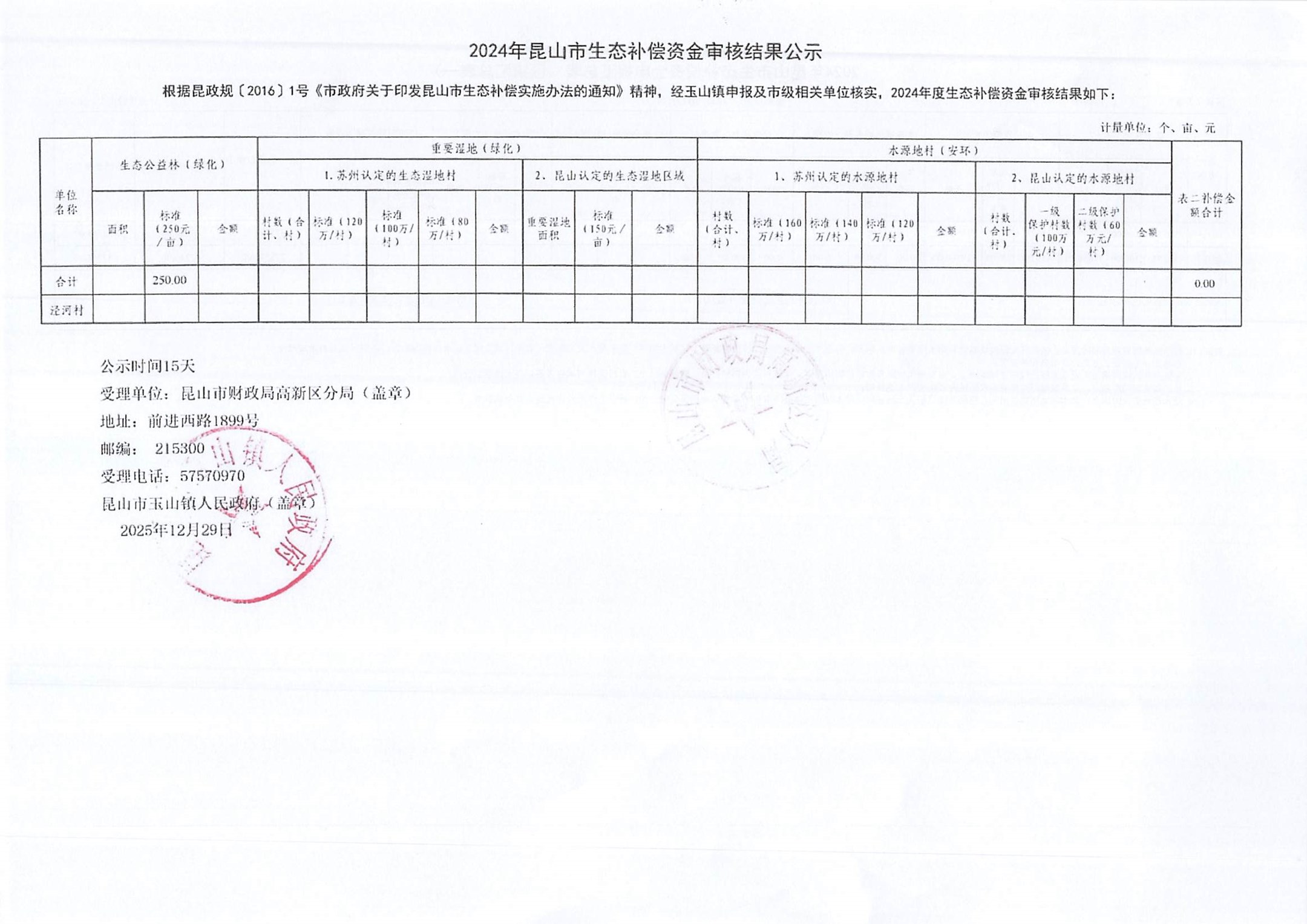 2024年度生态补偿金审核结果公示