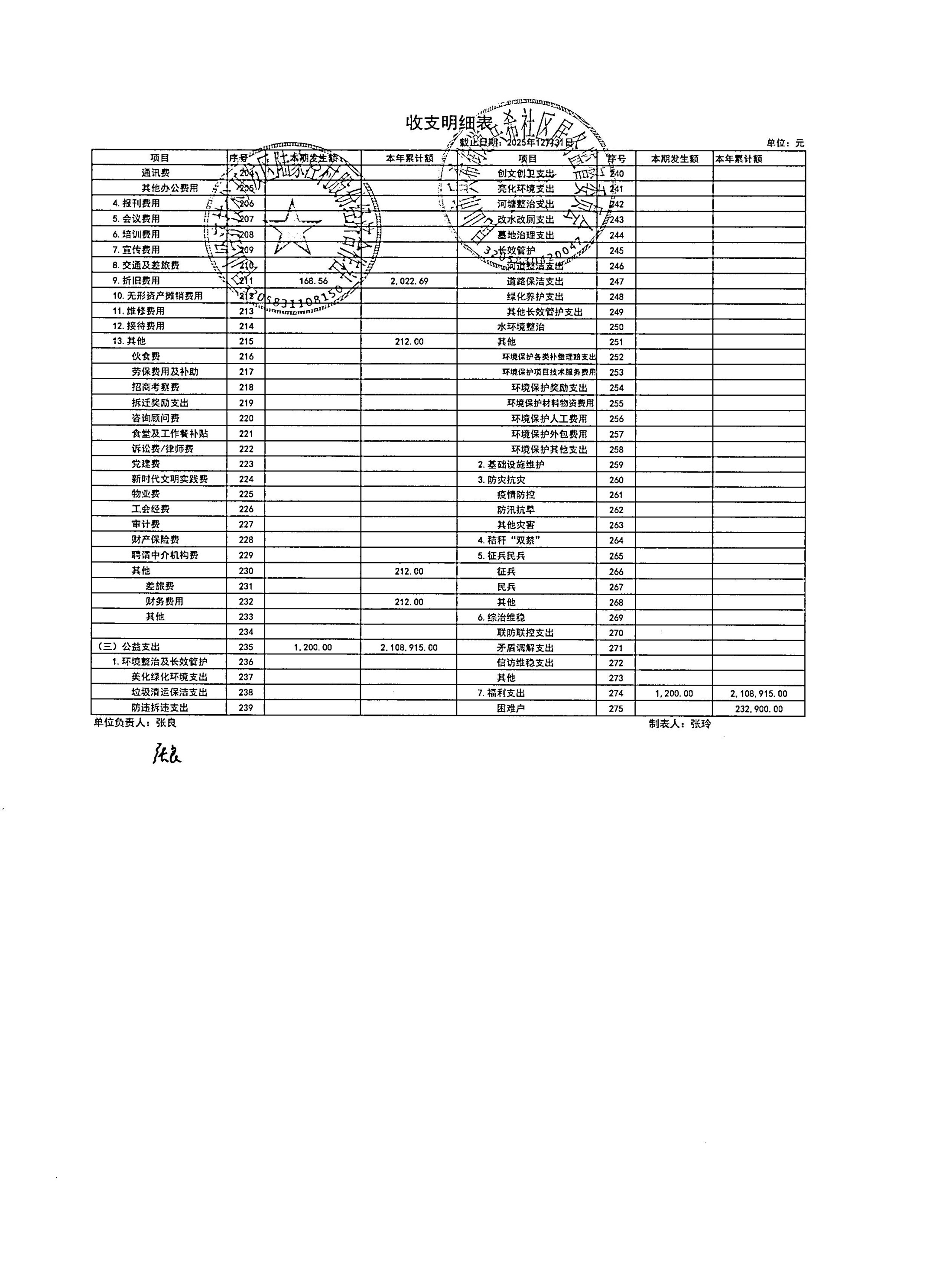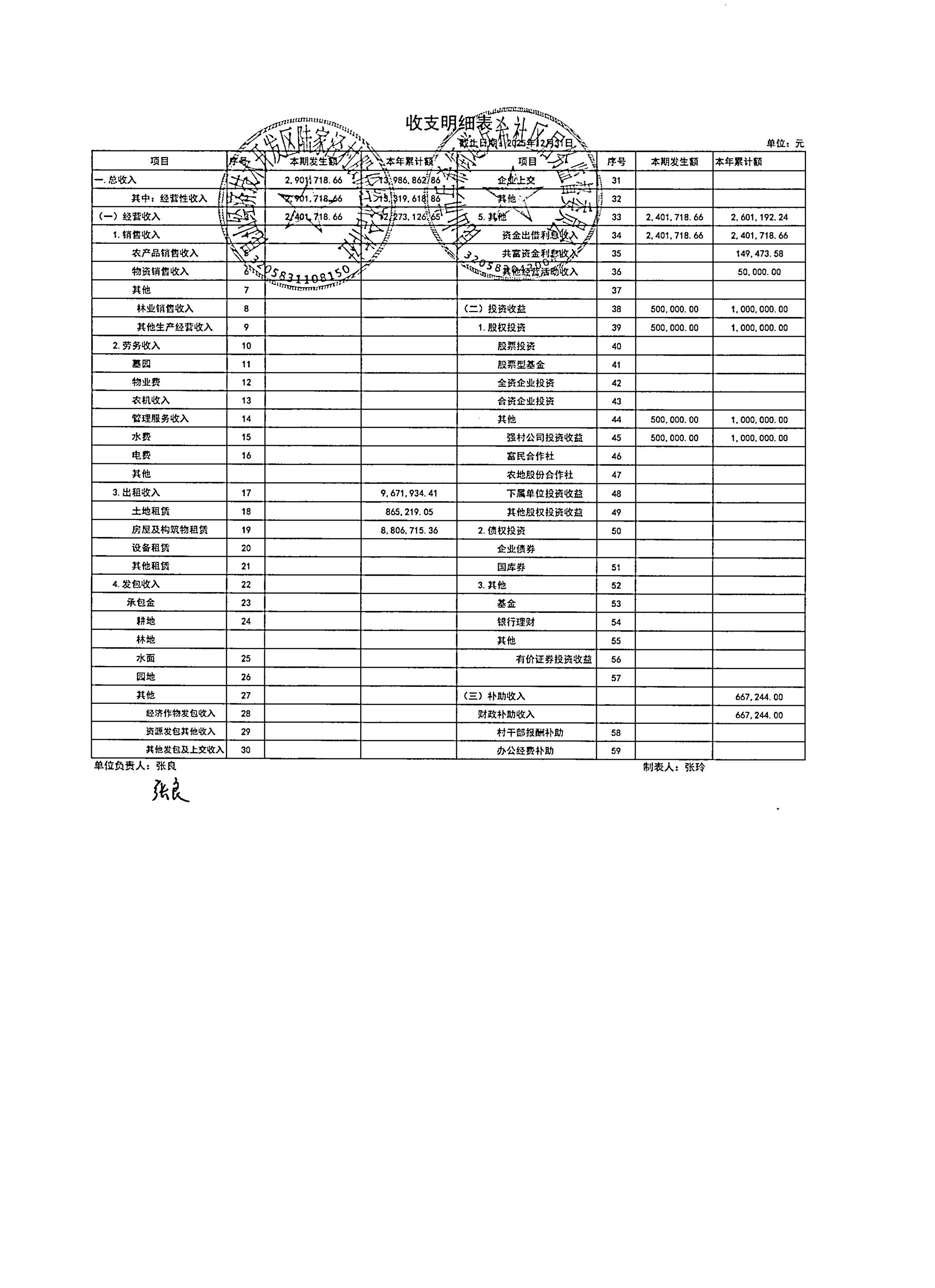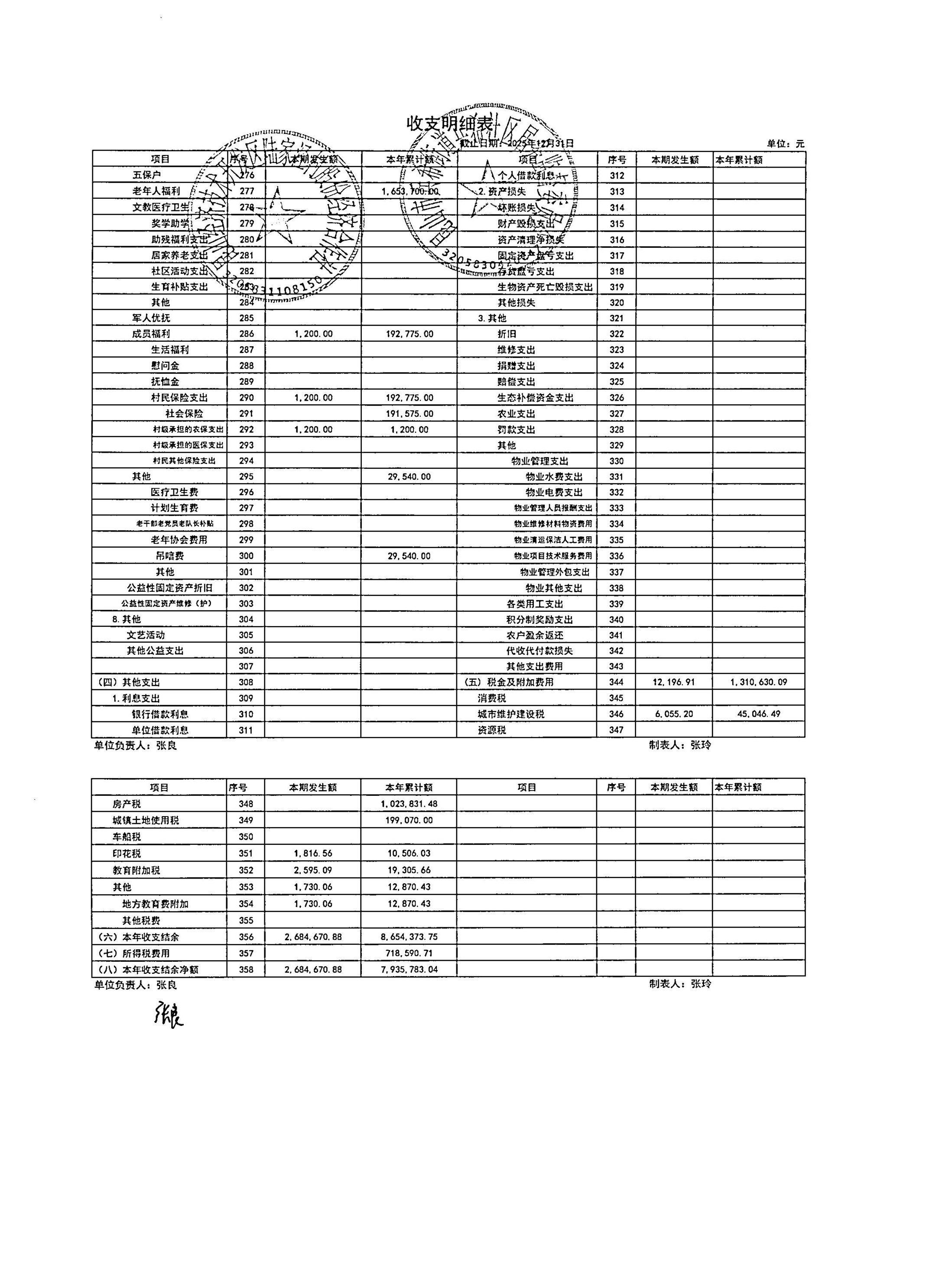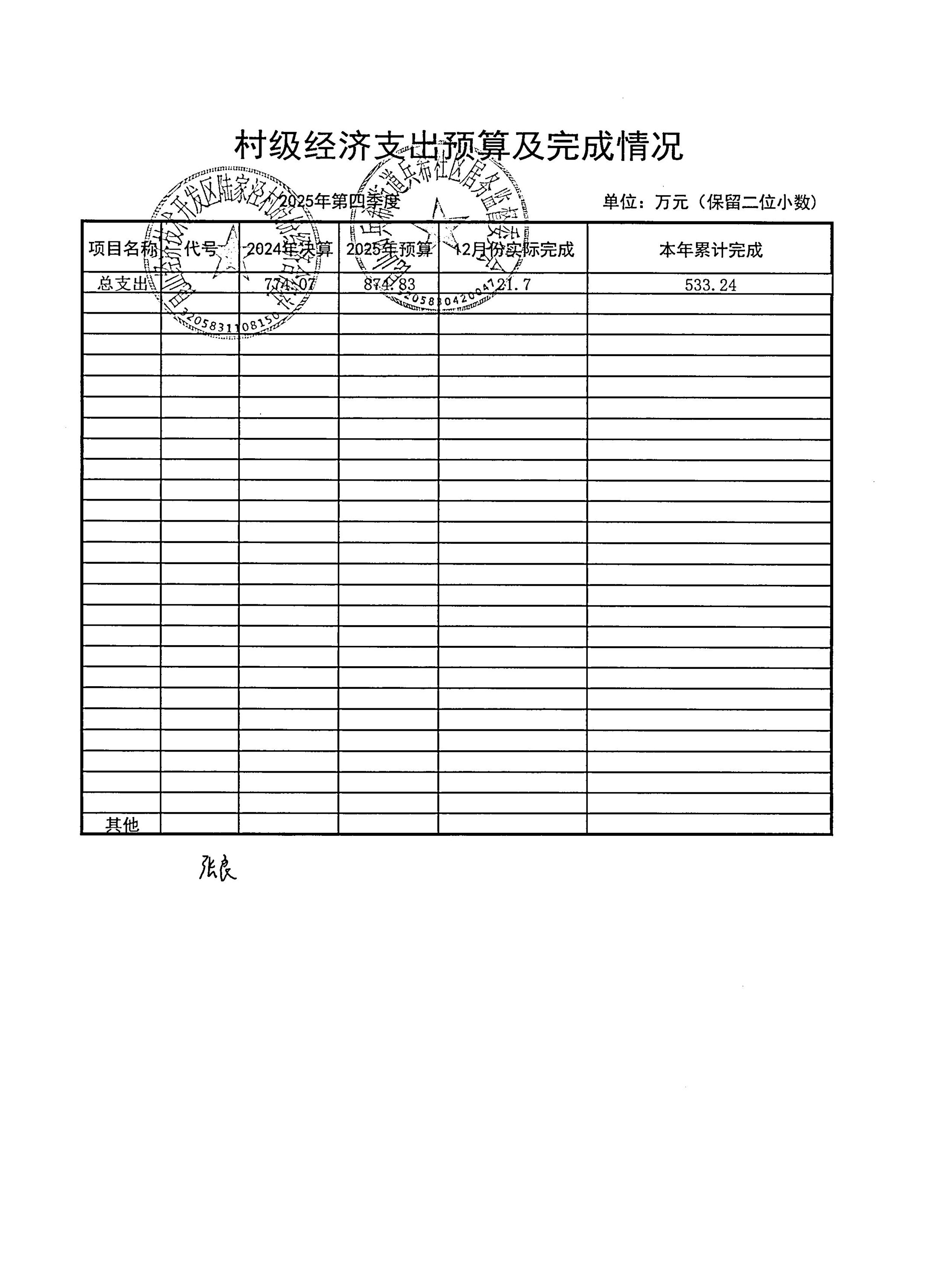 2026年1月陆家泾村财务公开