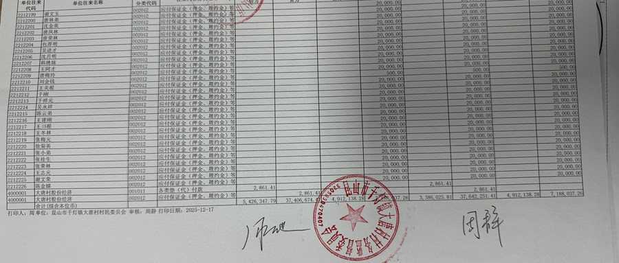 大唐村2025年11月财务公开内容(定期公开)