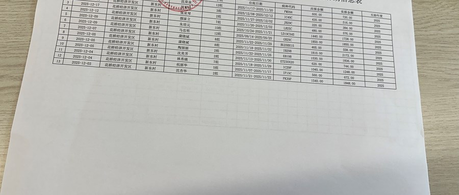 2025年新东村股份经济合作社 12月定期财务公示