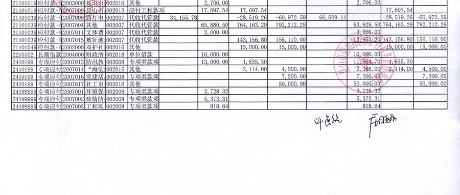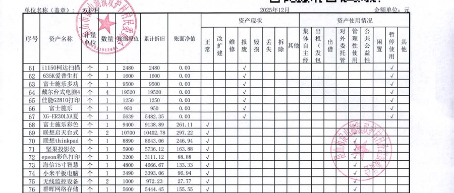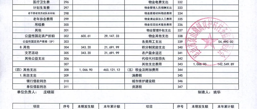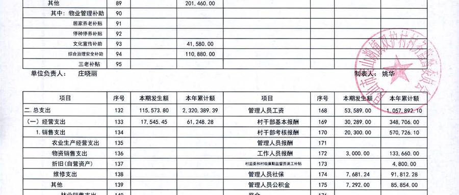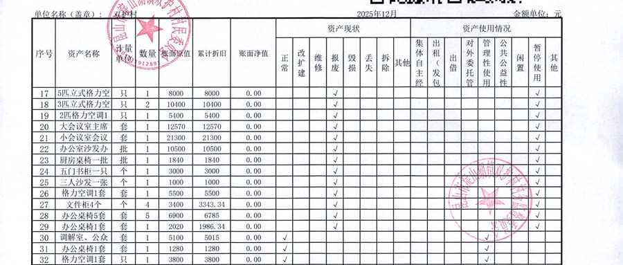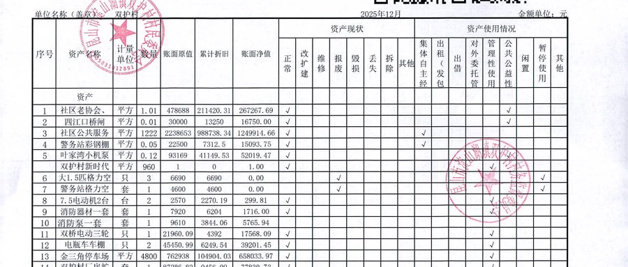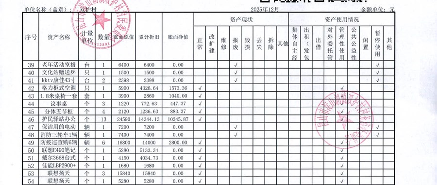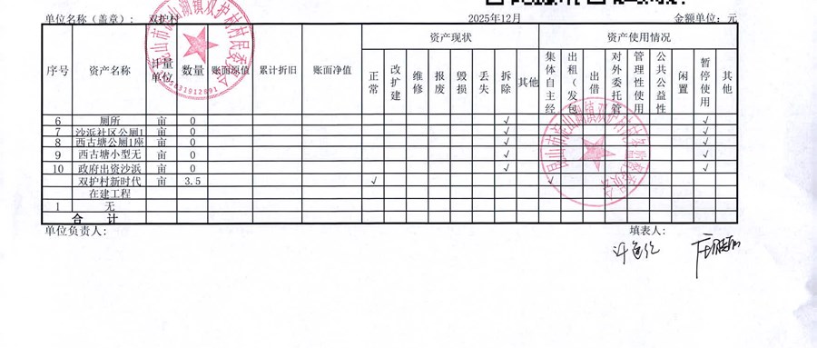 2025年12月双护村村民委员会财务公开