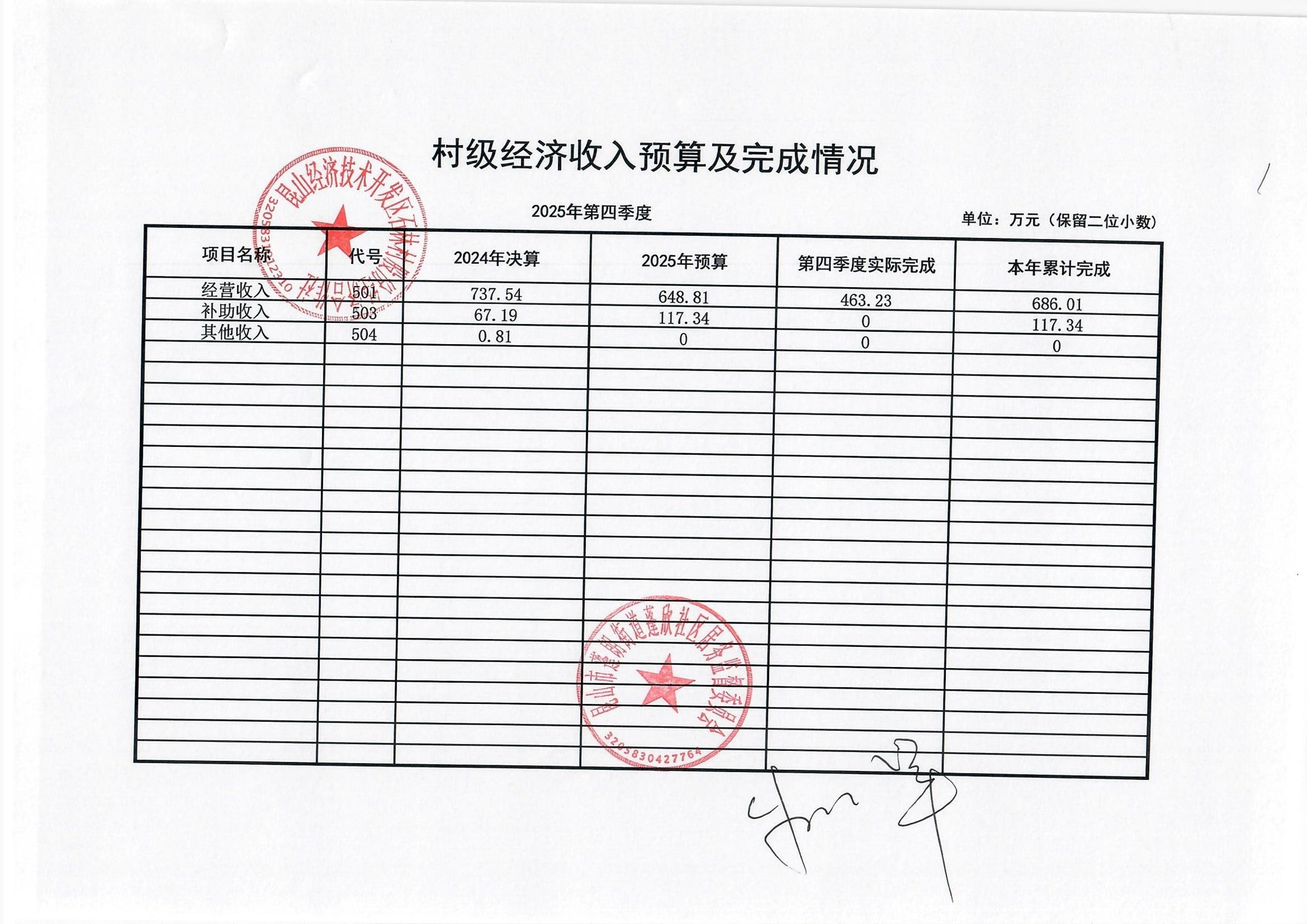 2025年第四季度村级经济收入支出预算及完成情况