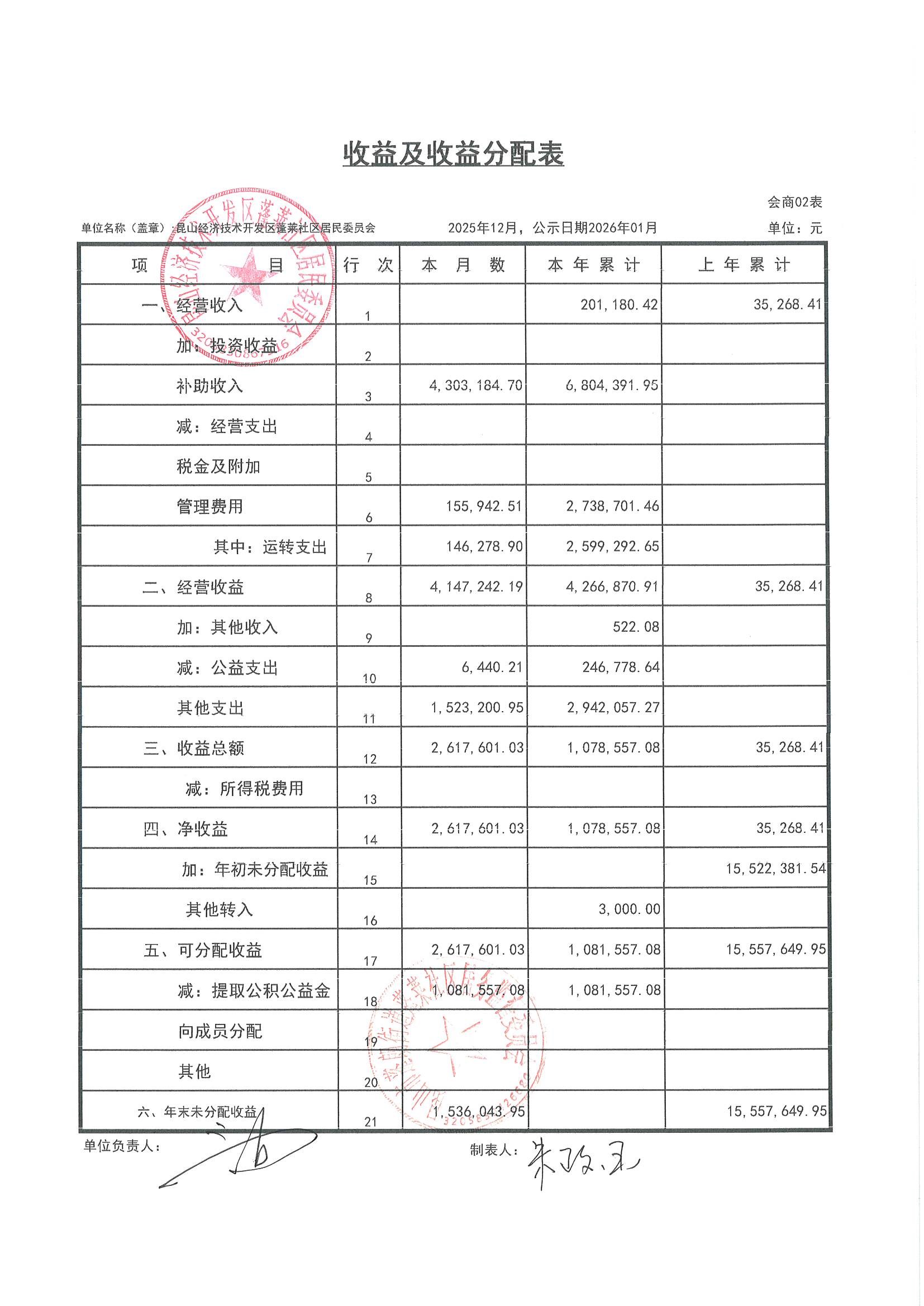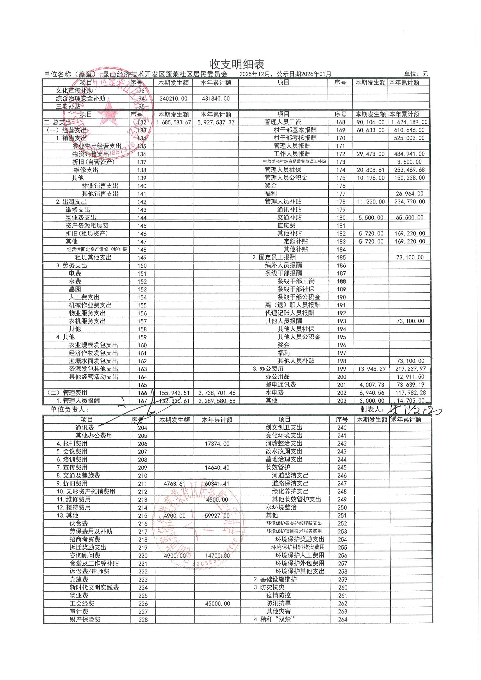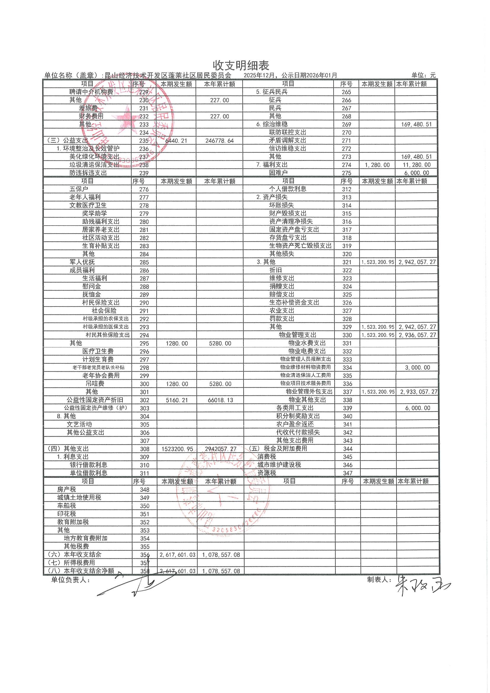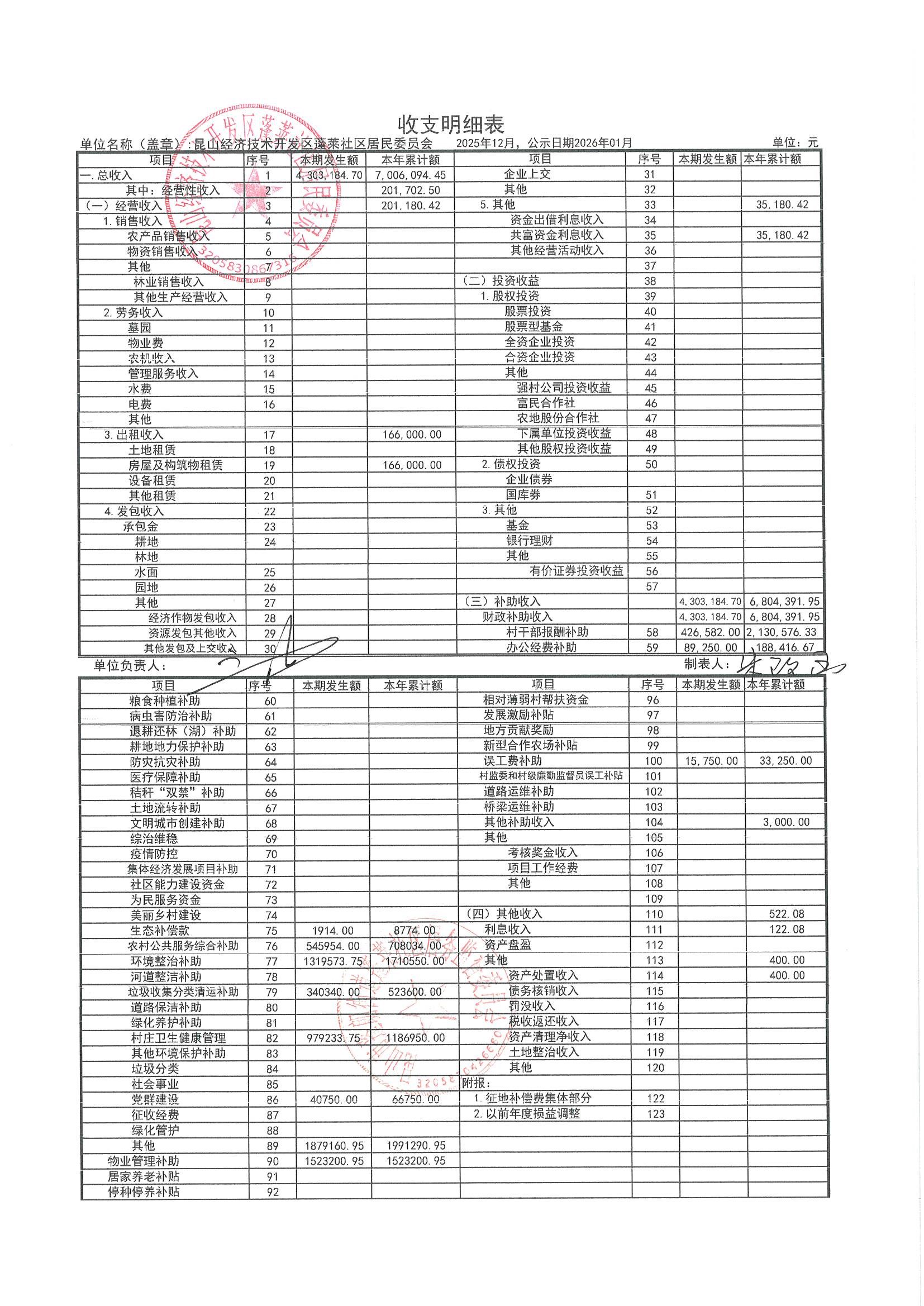2025年12月财务公开(蓬莱社区居委会)