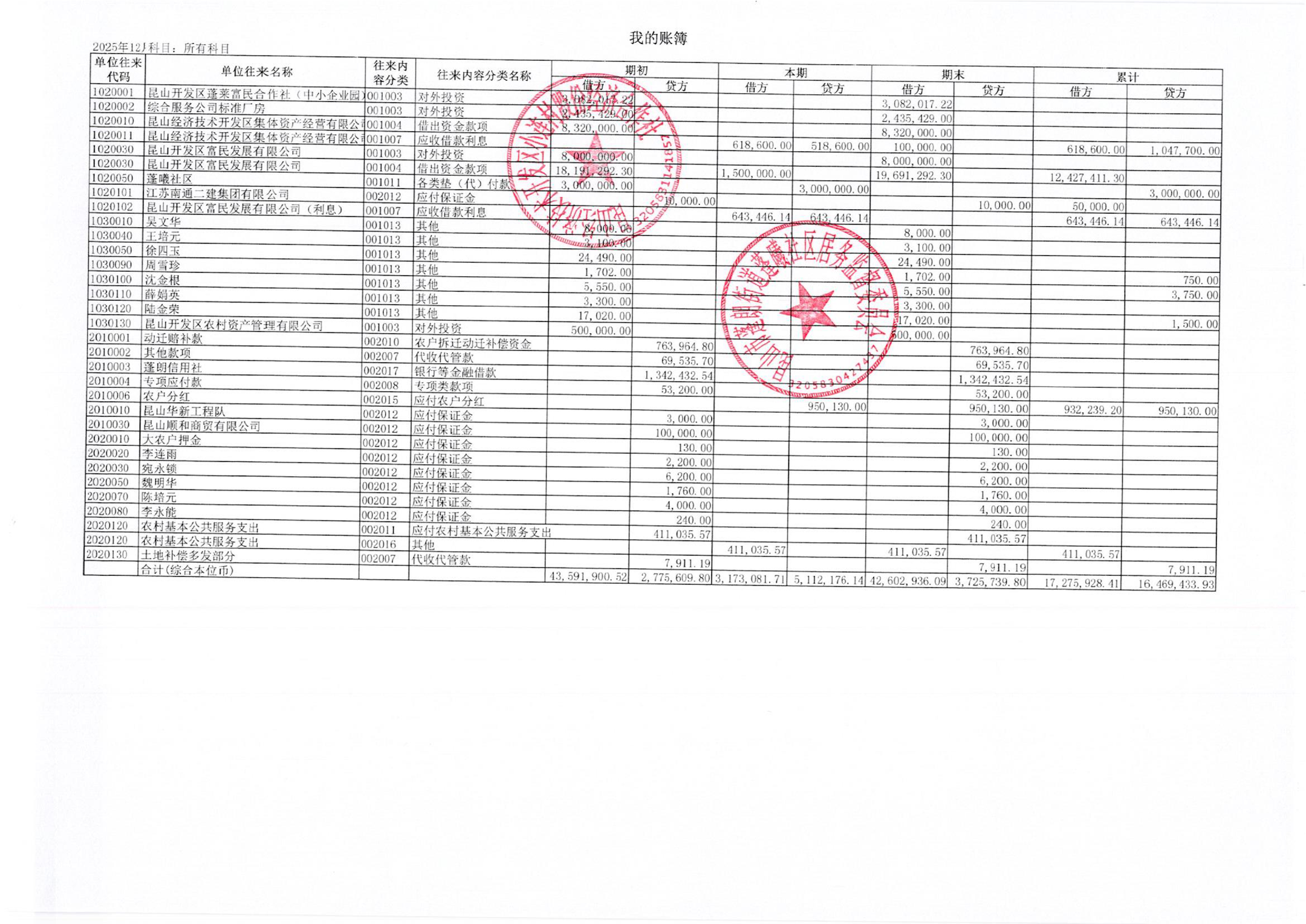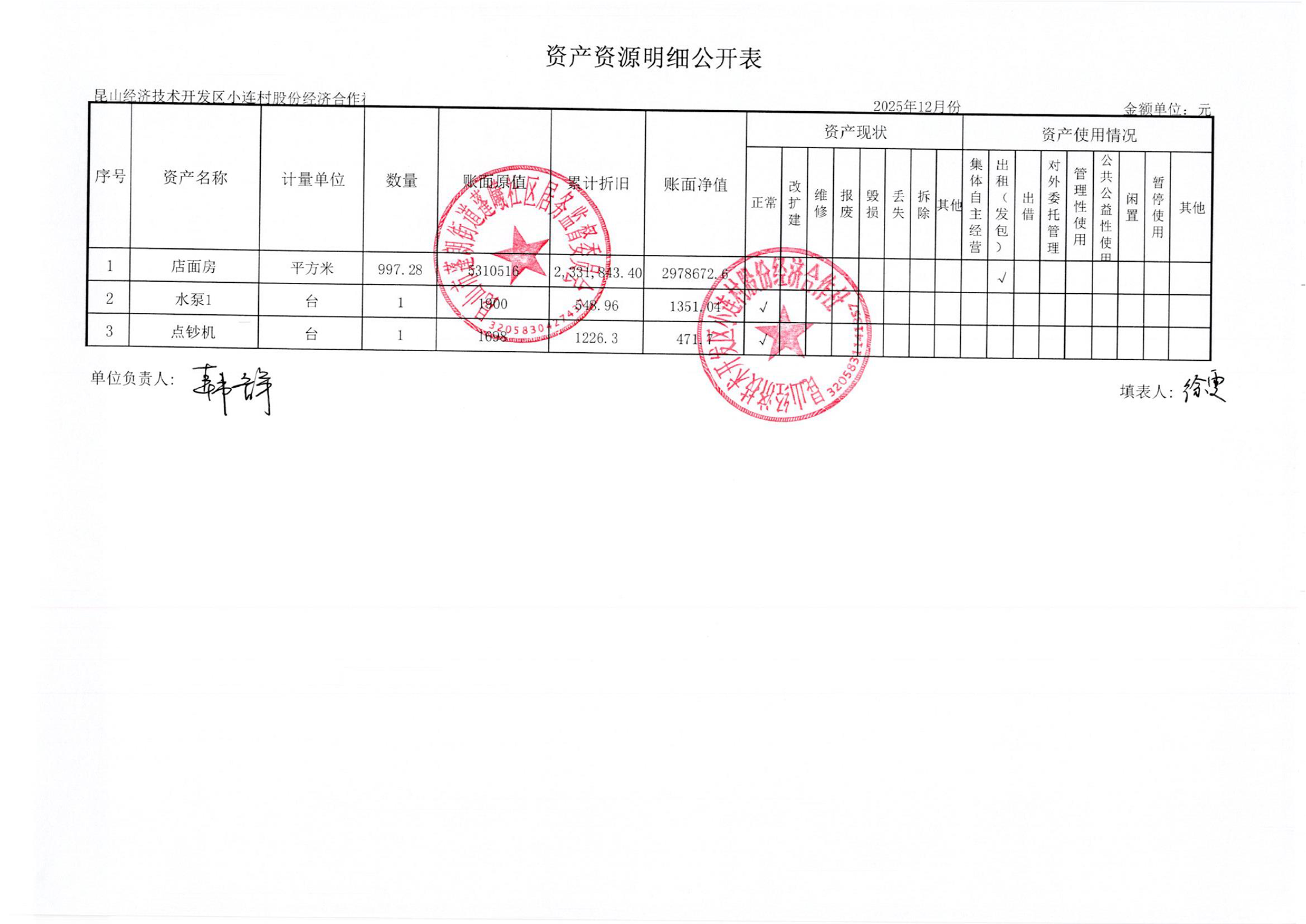 2025年12月小连村股份经济合作社财务公开