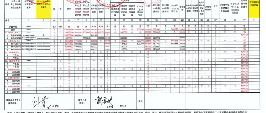 姜巷村第四季度农村集体资产经济清缴明细