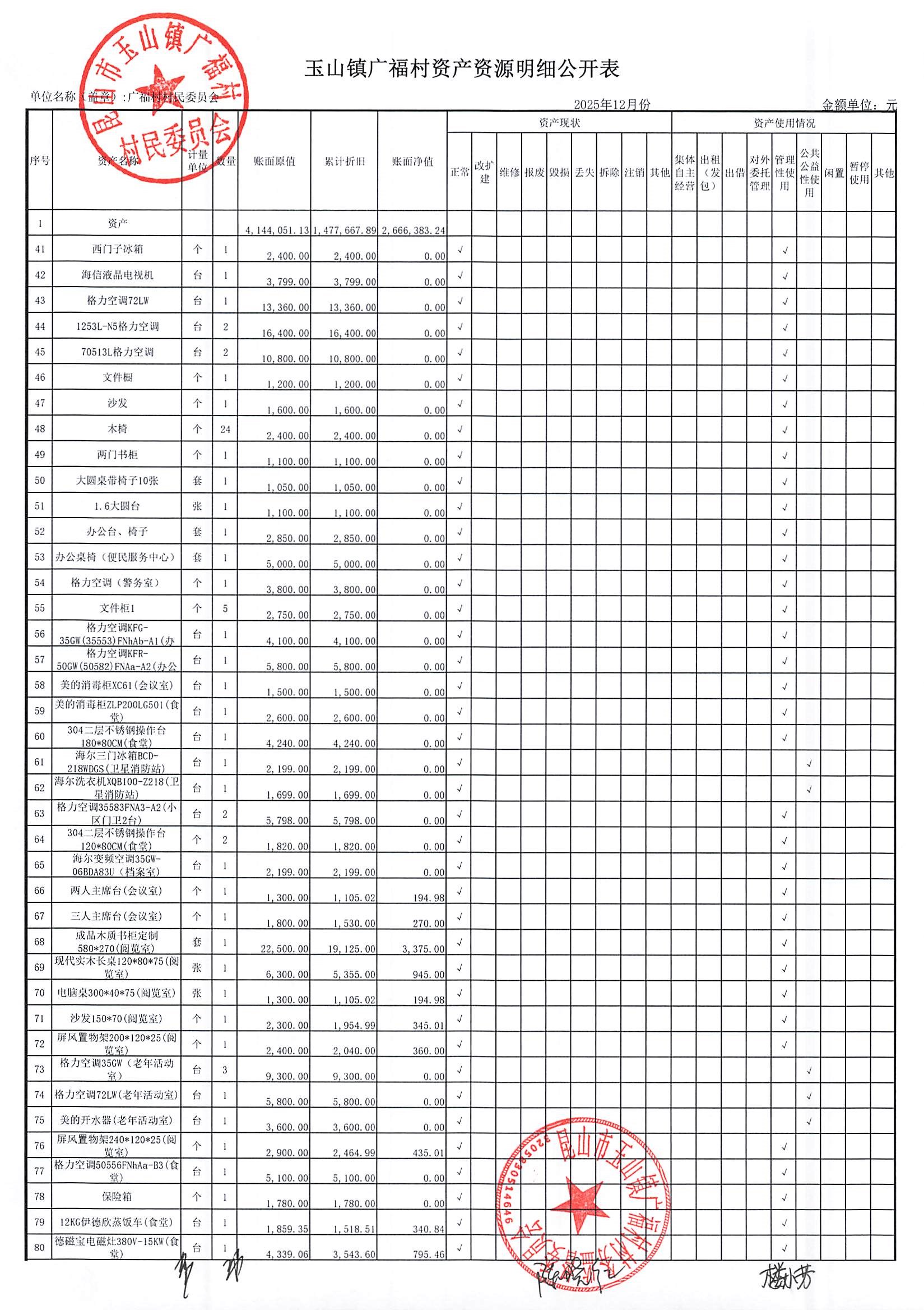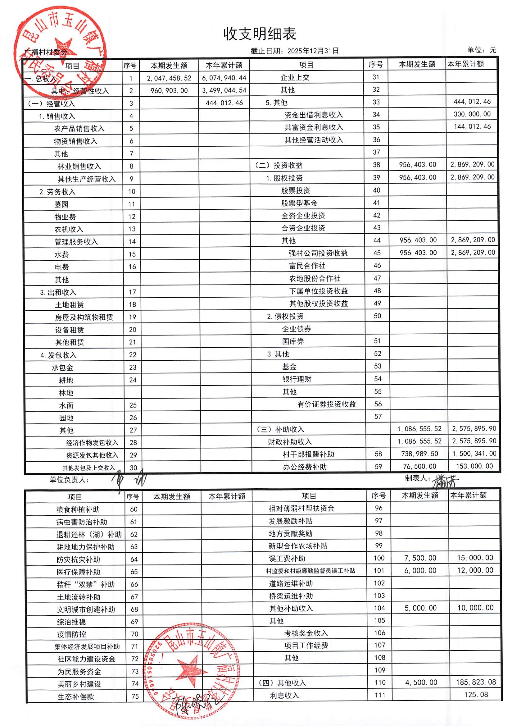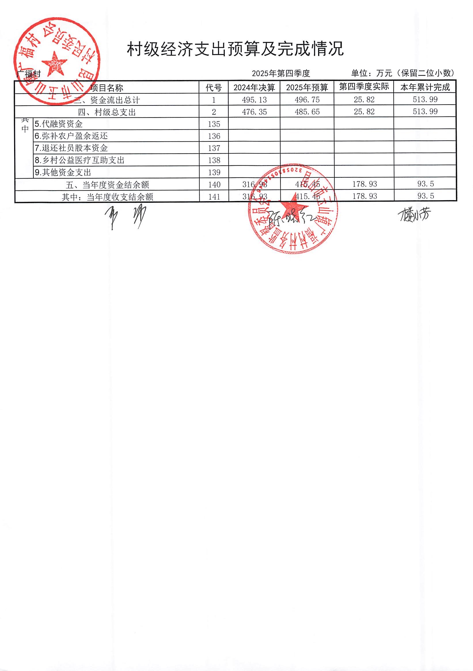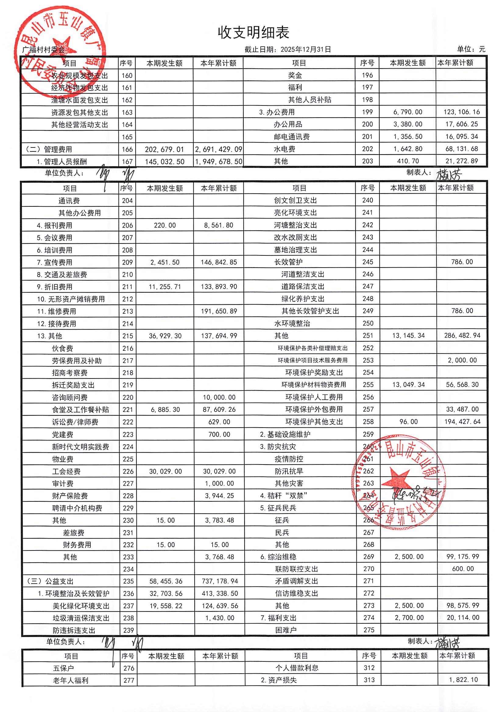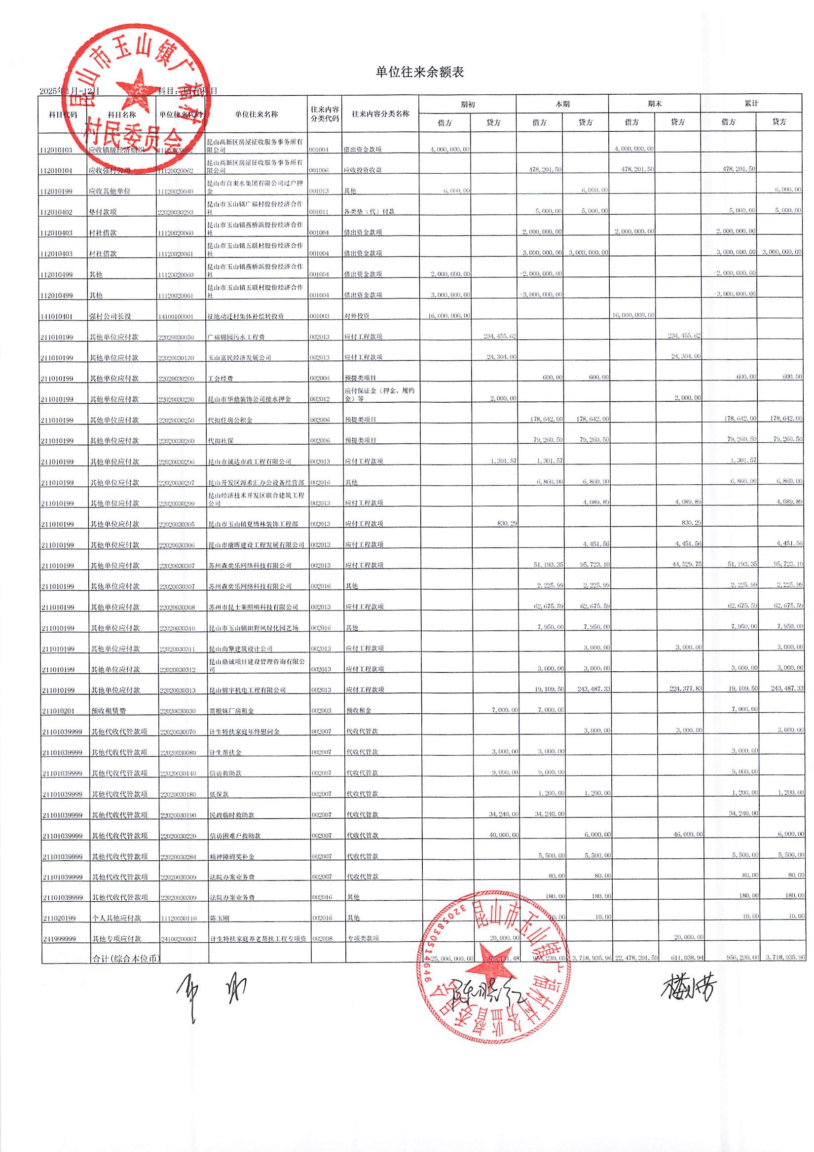 2026年广福村村委会1月份财务公开内容