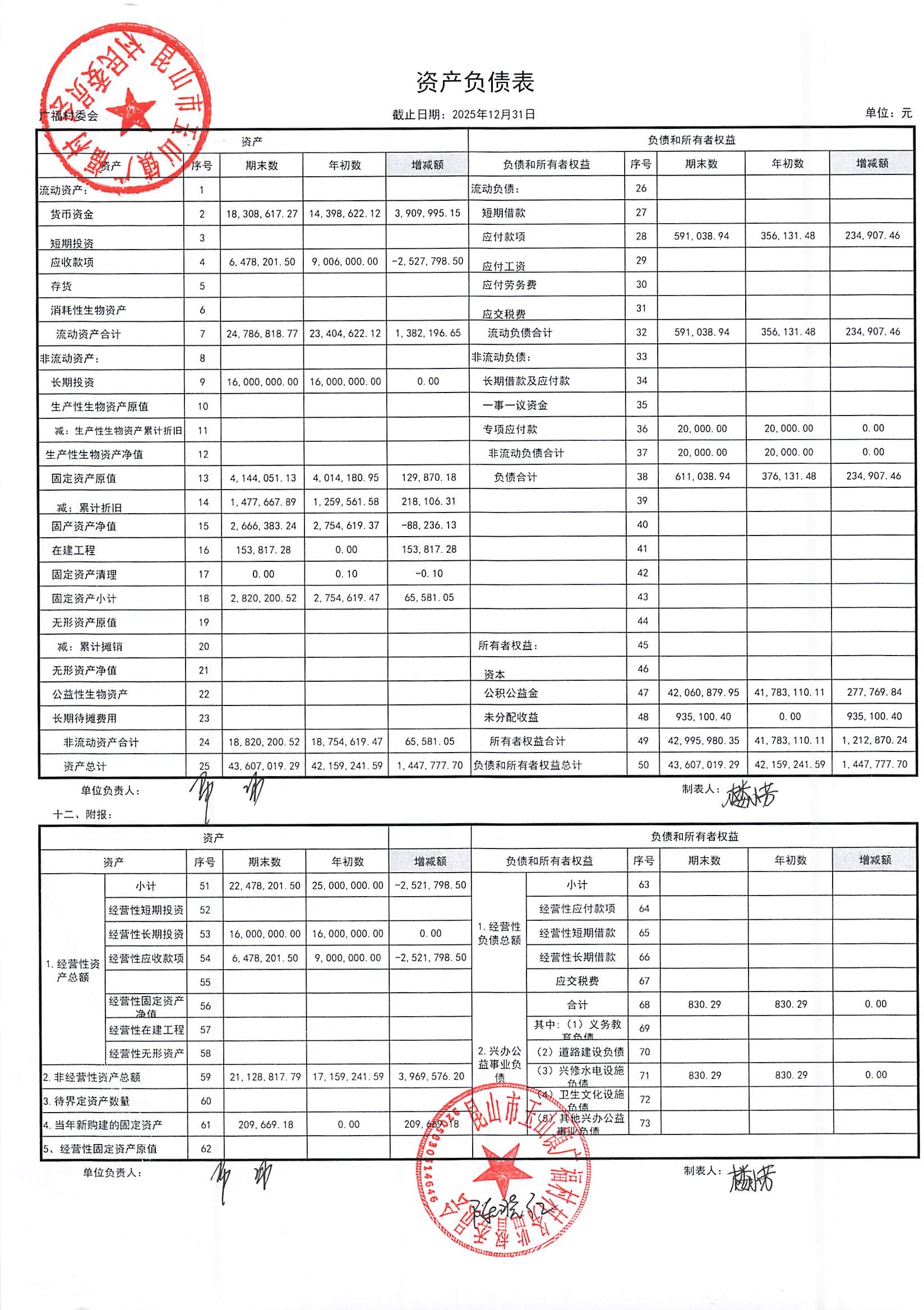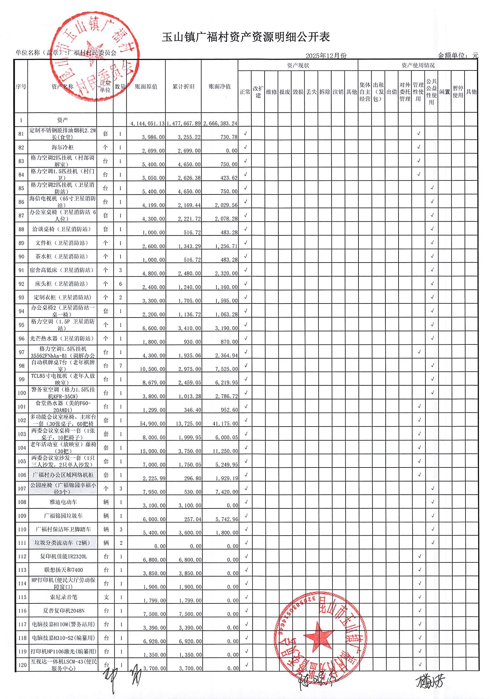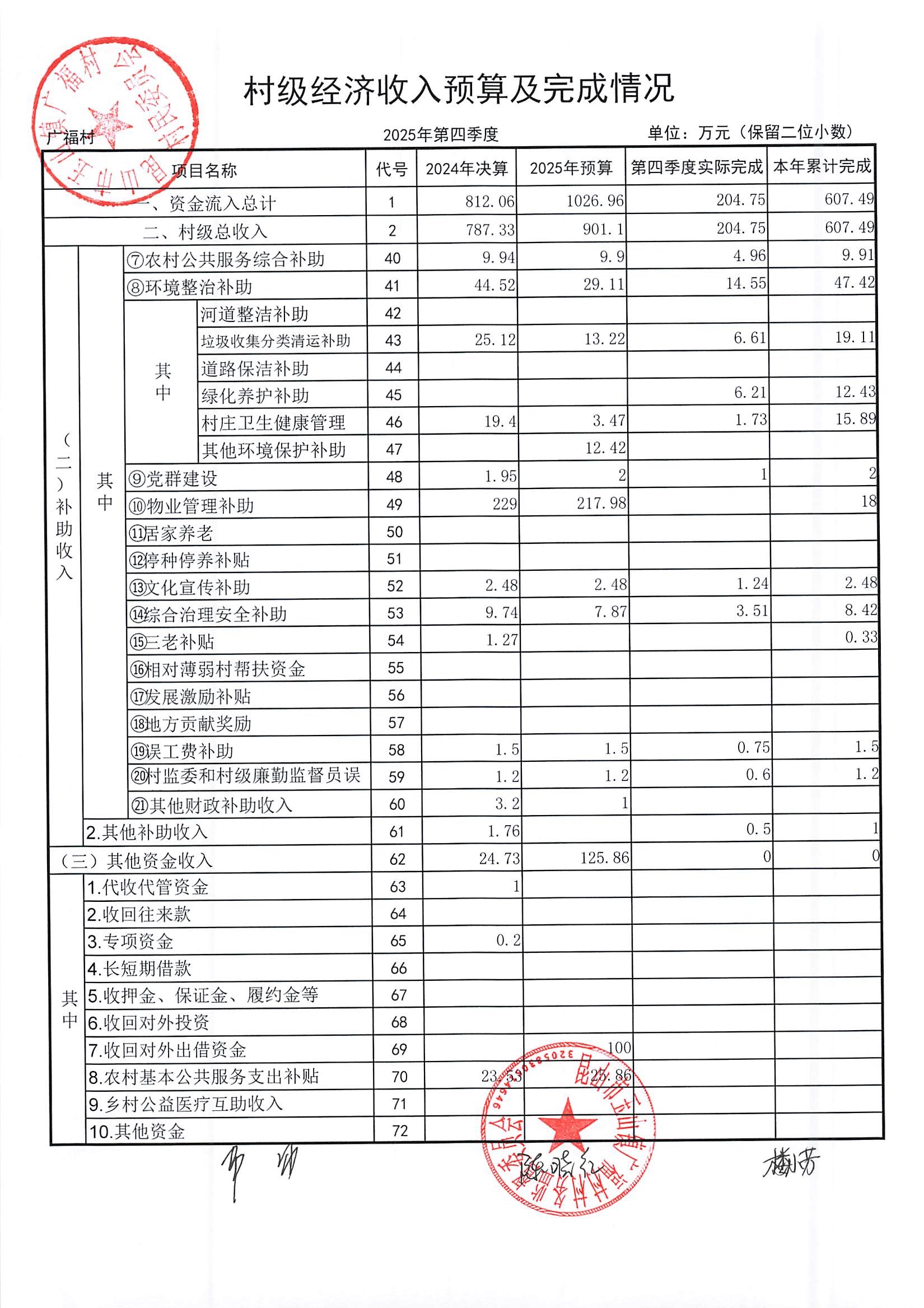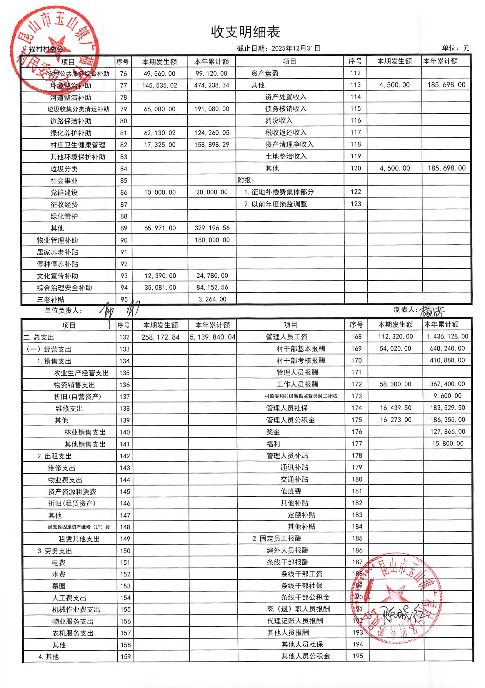 2026年广福村村委会1月份财务公开内容
