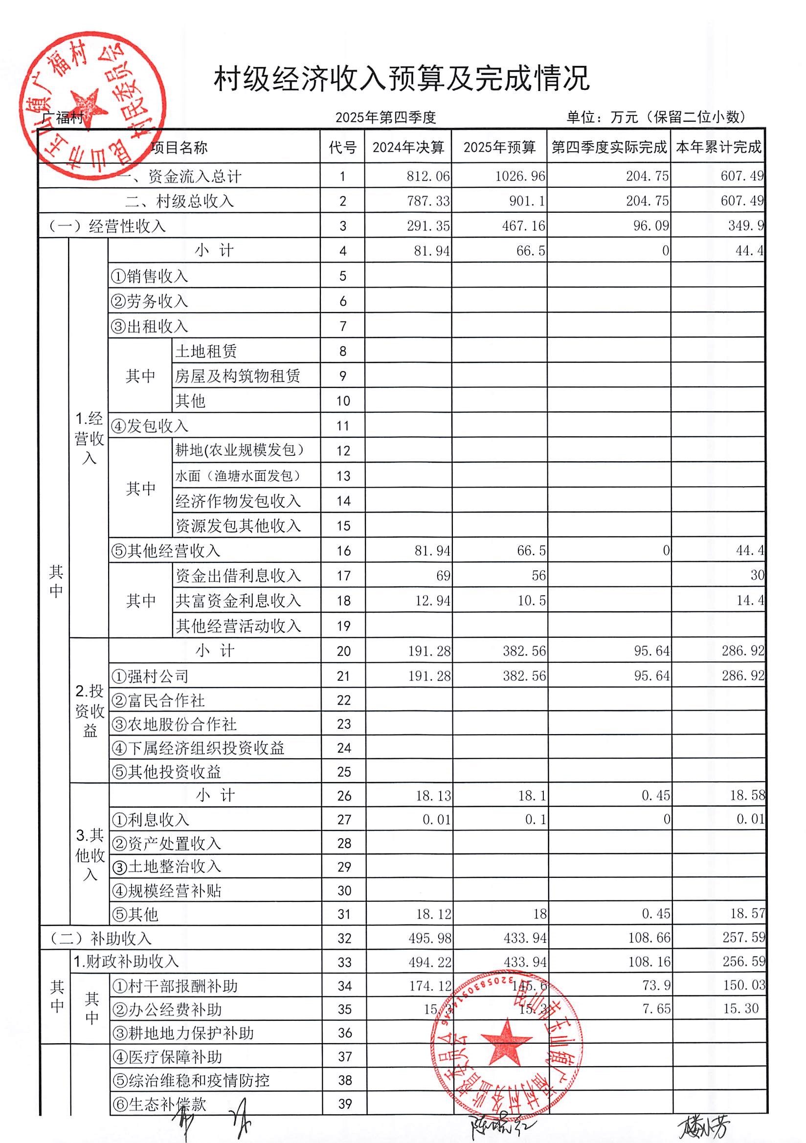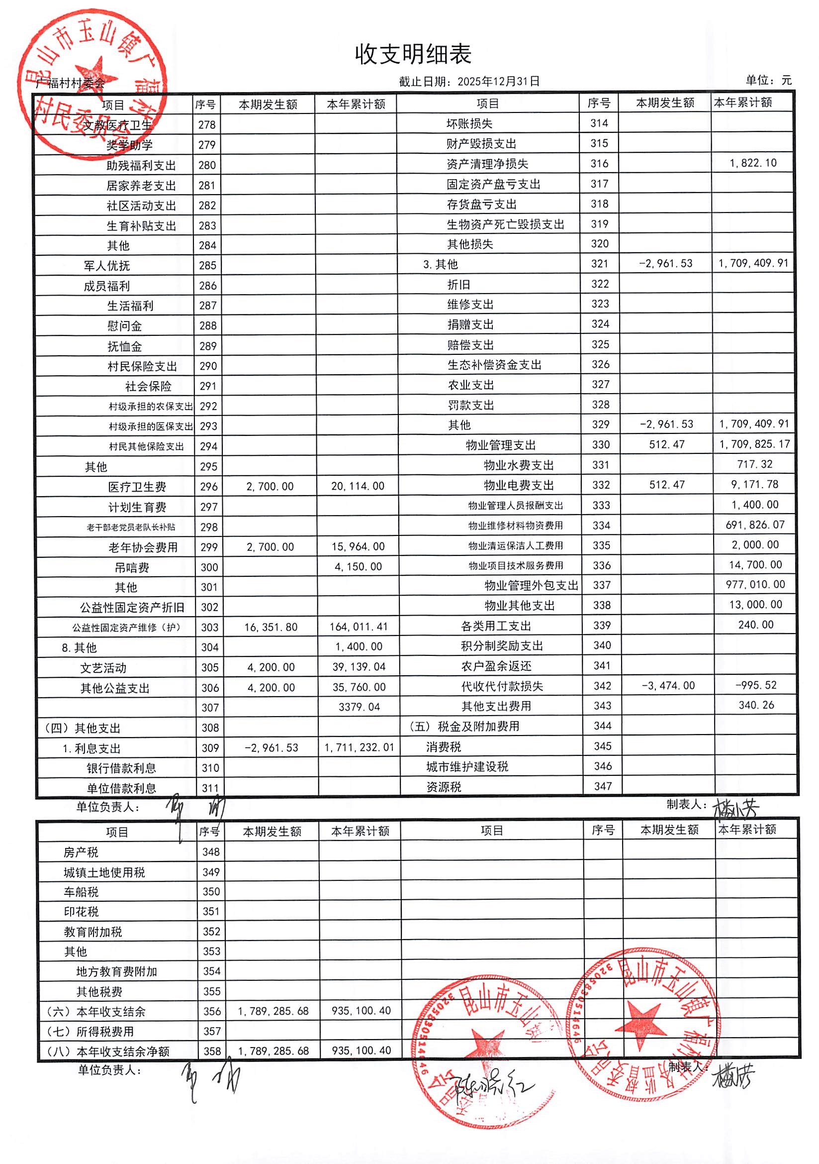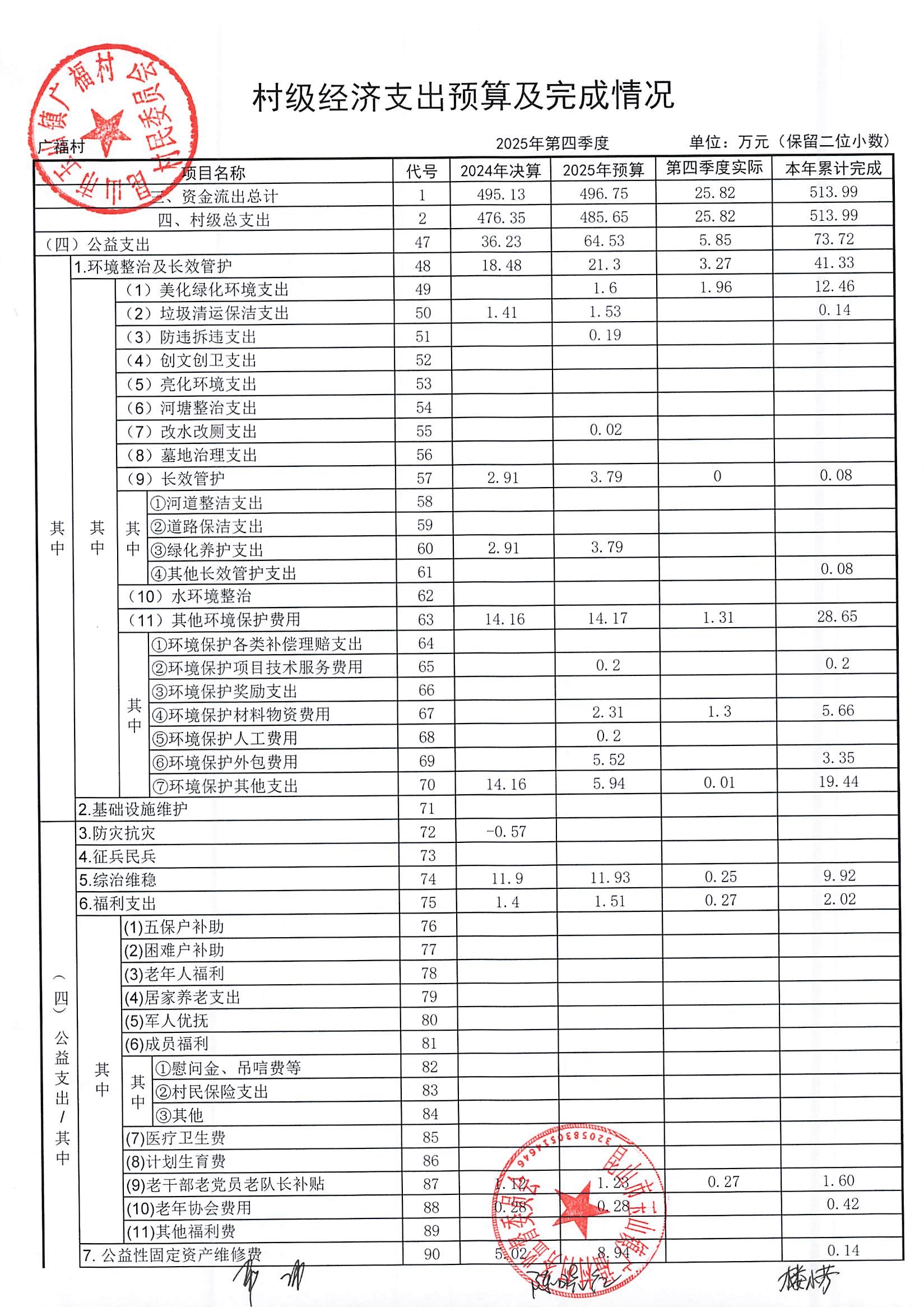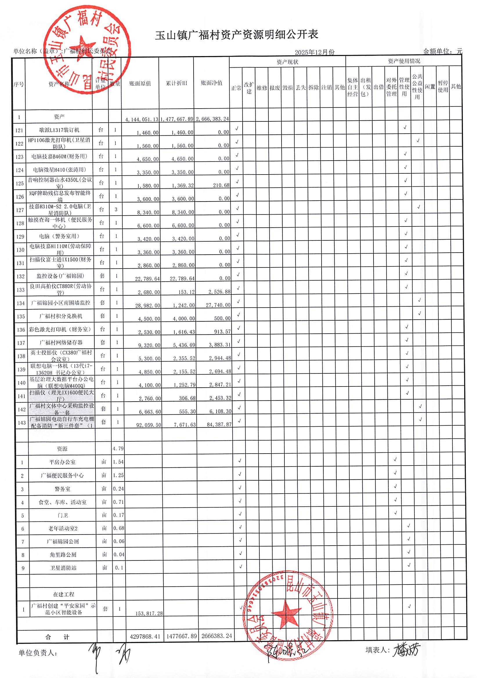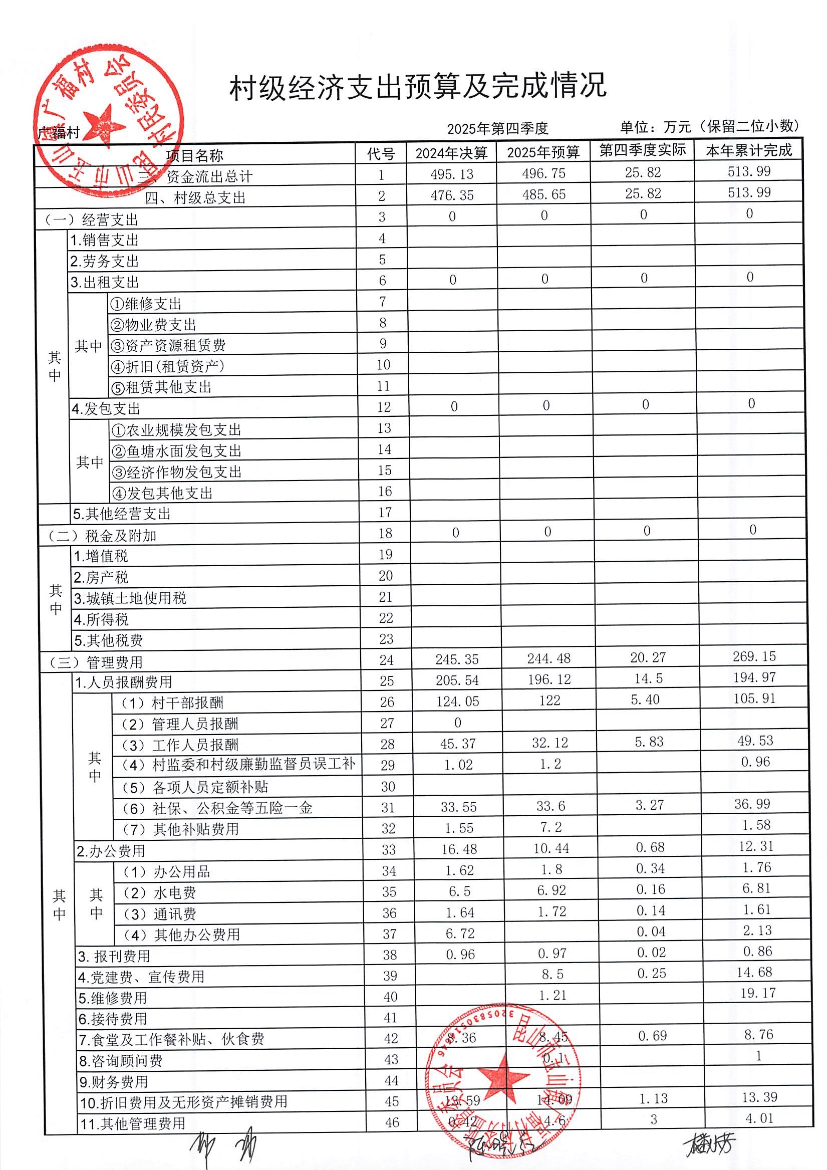 2026年广福村村委会1月份财务公开内容