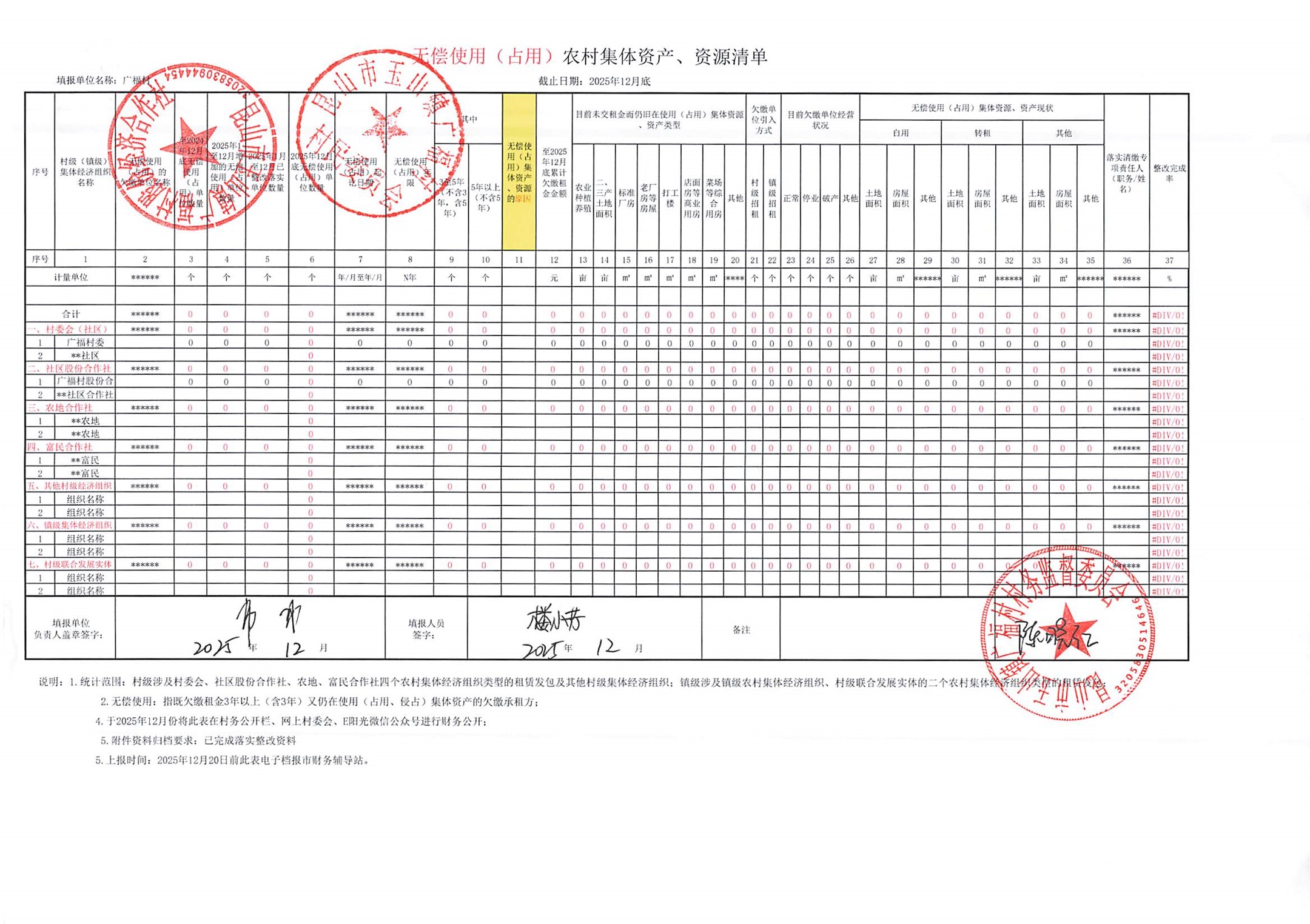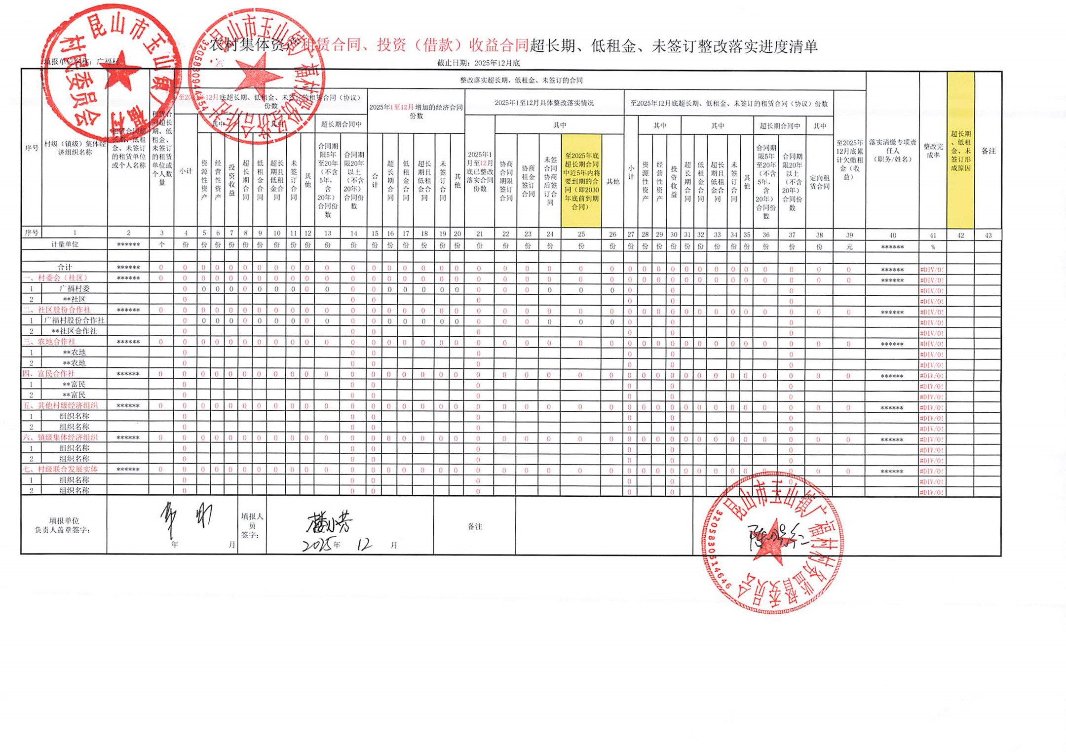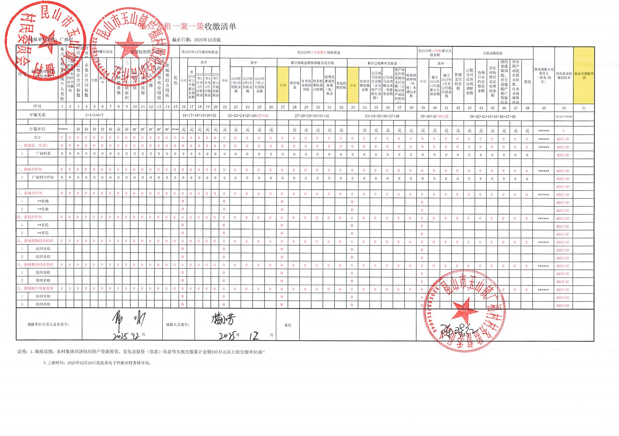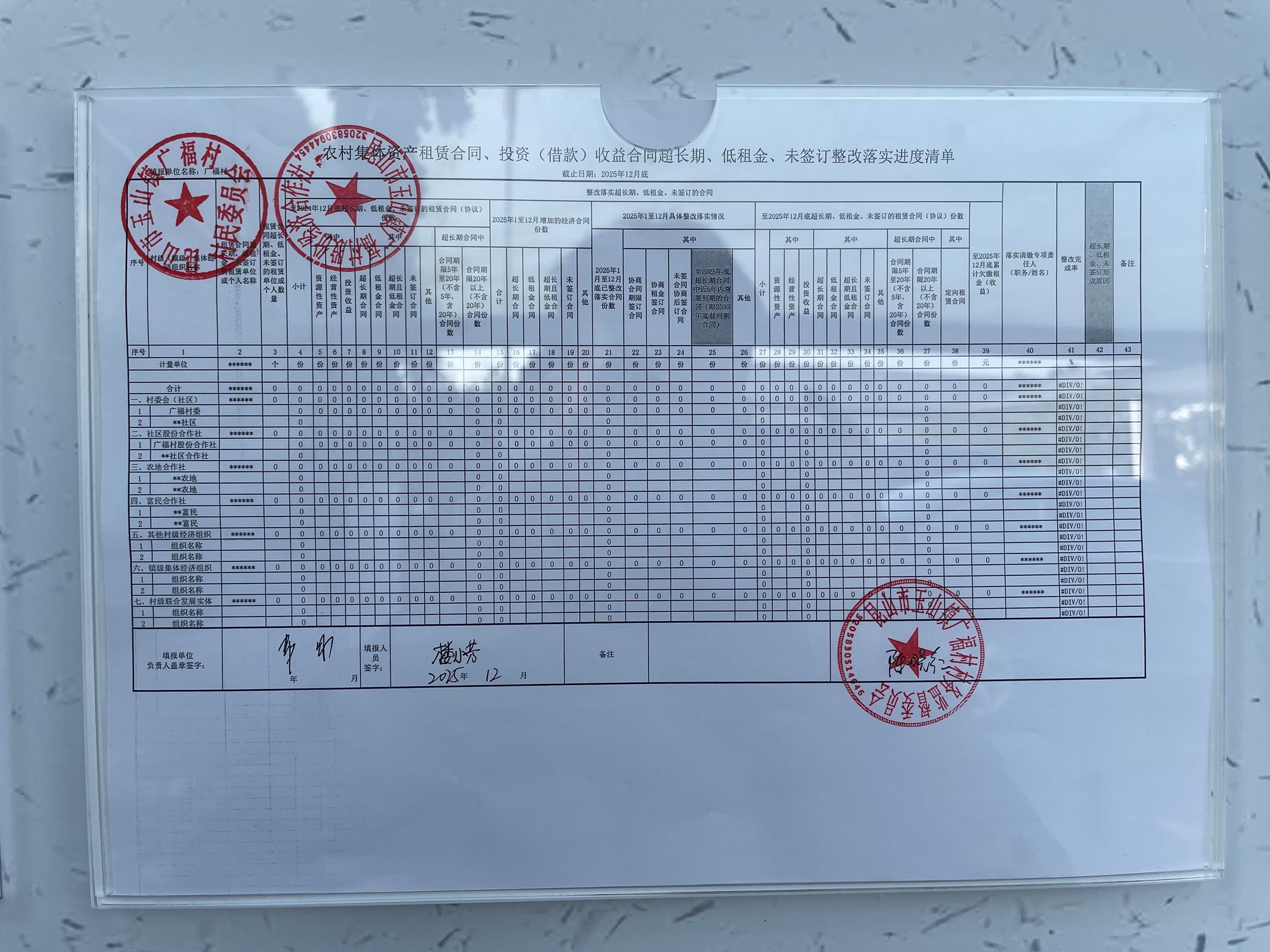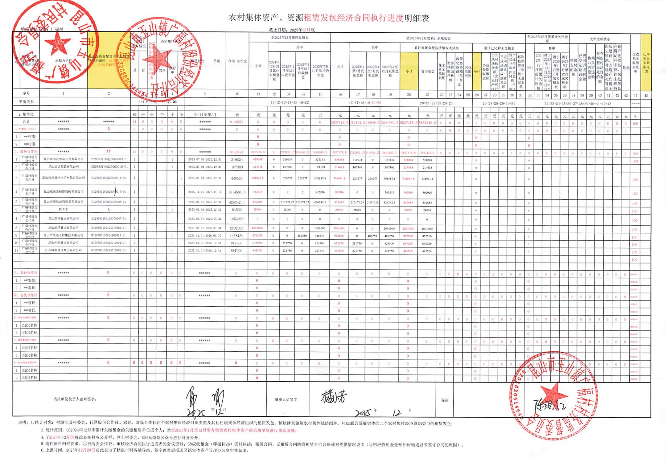 2025年农村集体资产经济合同收缴进度调查表及公示照片(第四季度)
