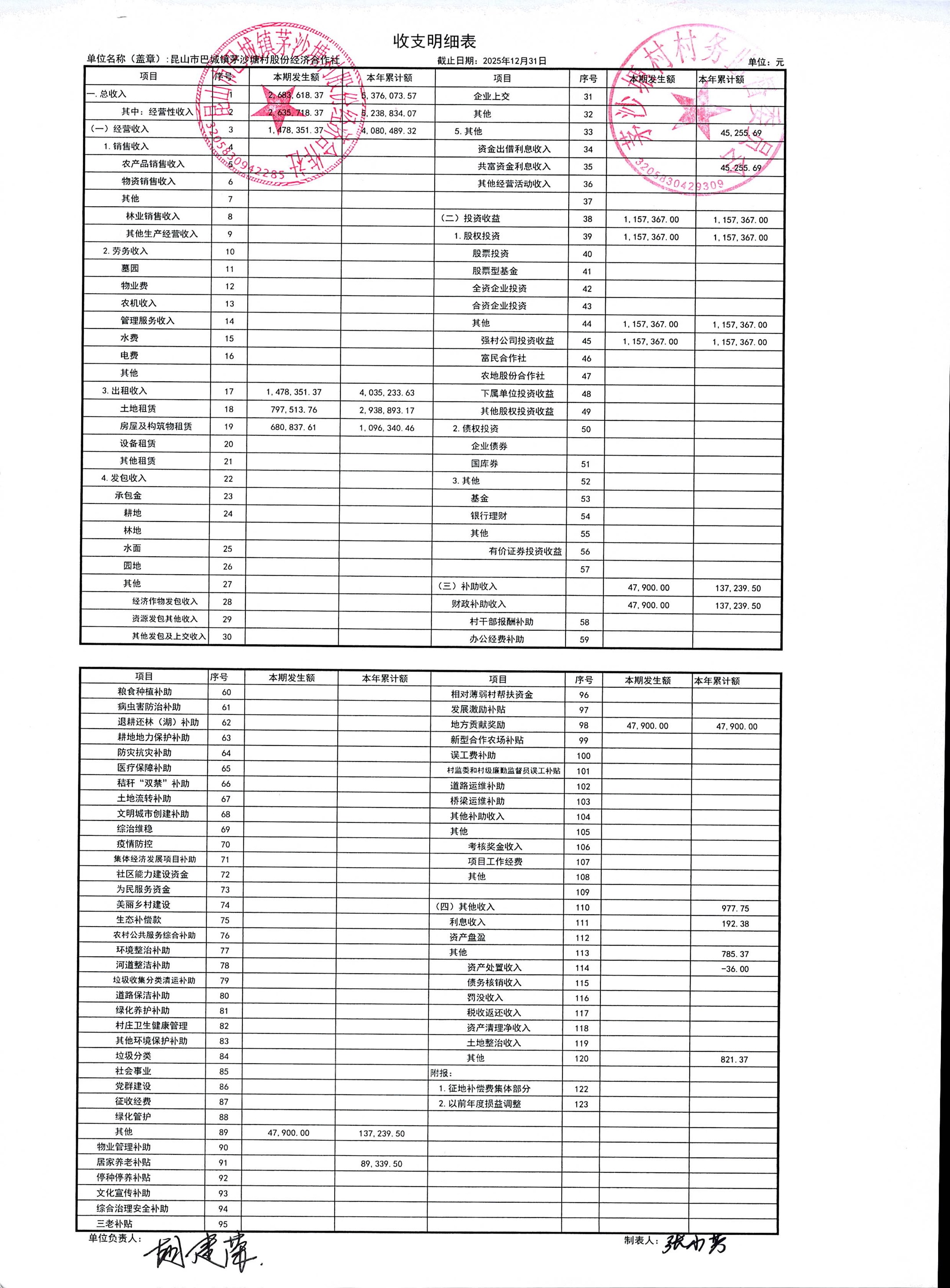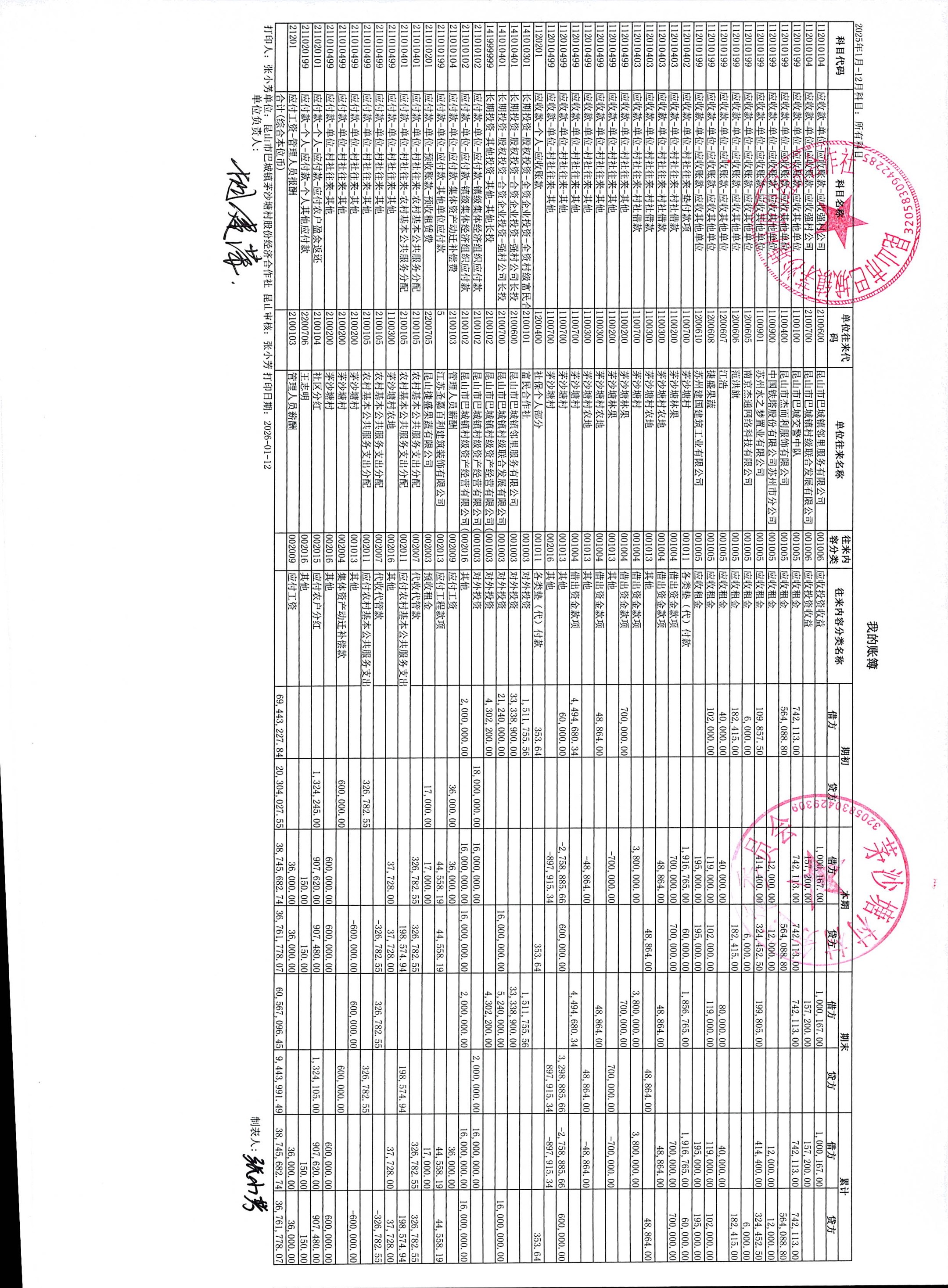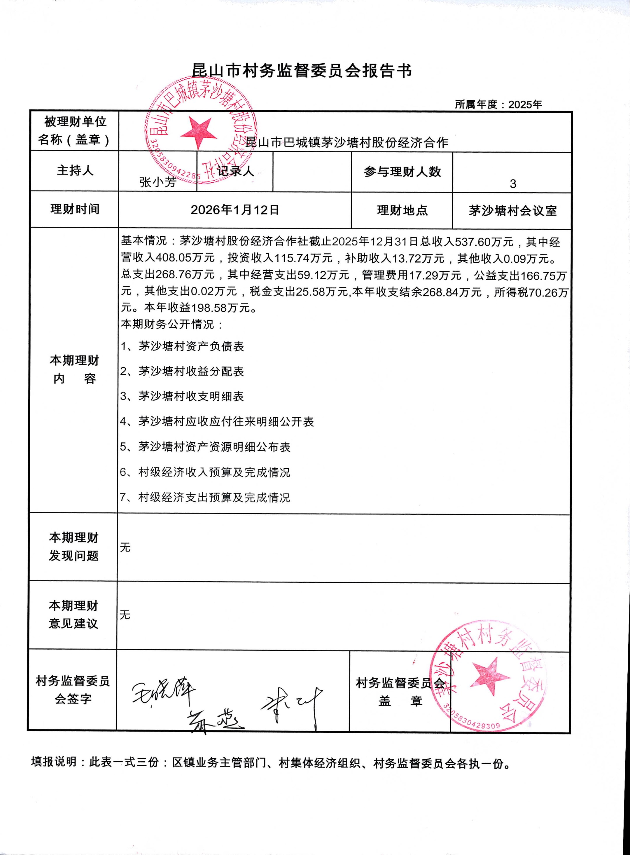2026年1月份财务公开(股份经济合作社)