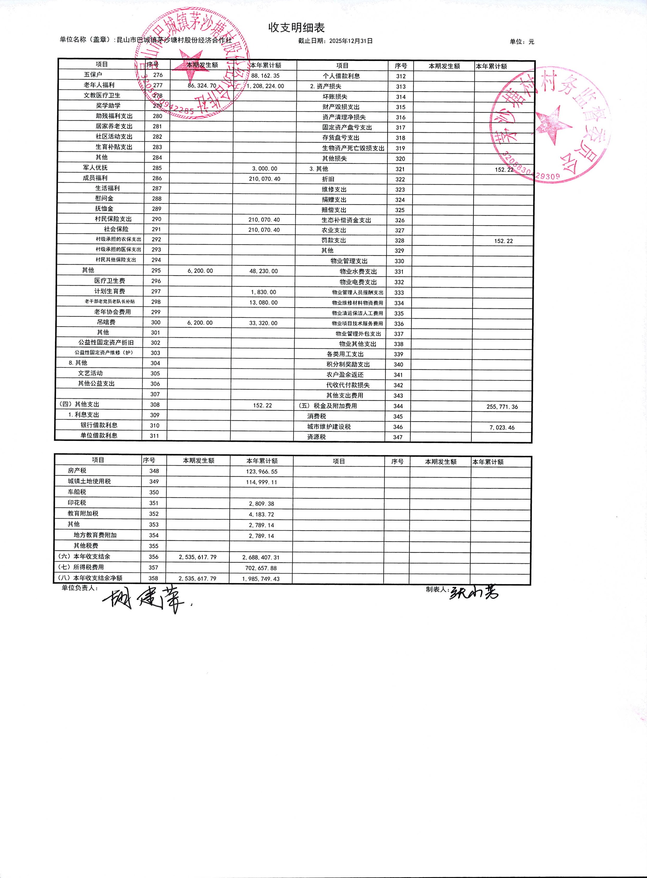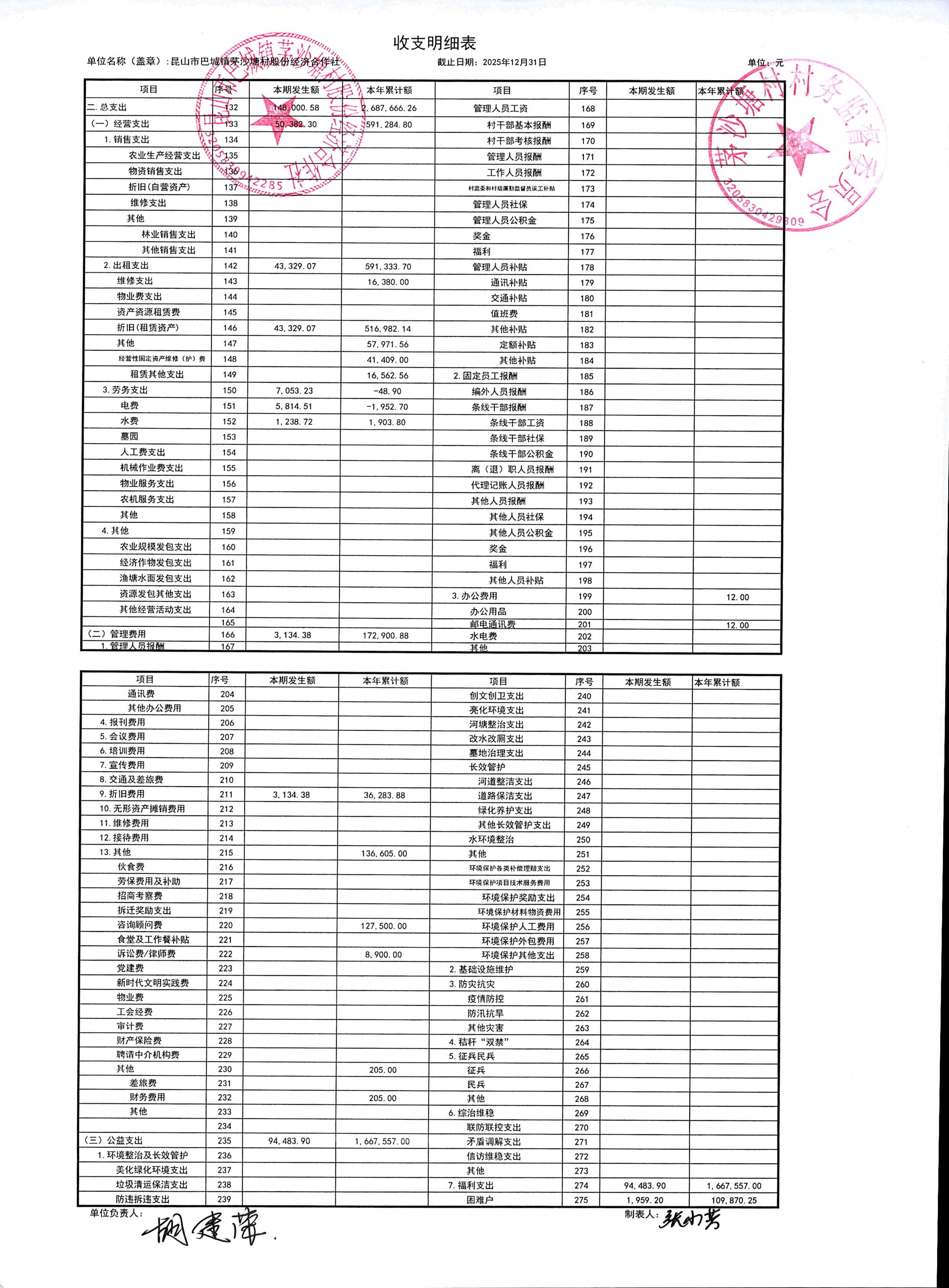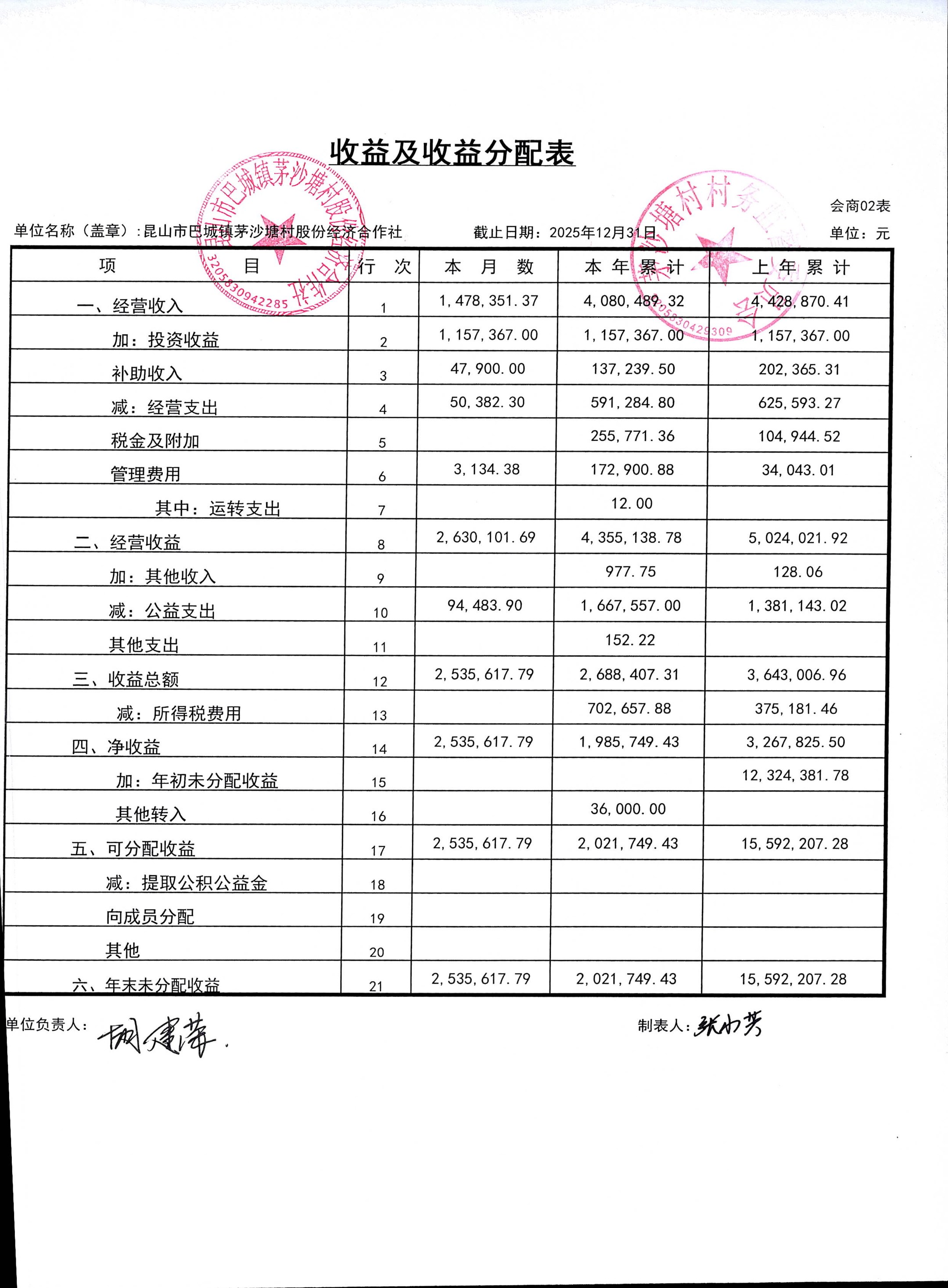 2026年1月份财务公开(股份经济合作社)