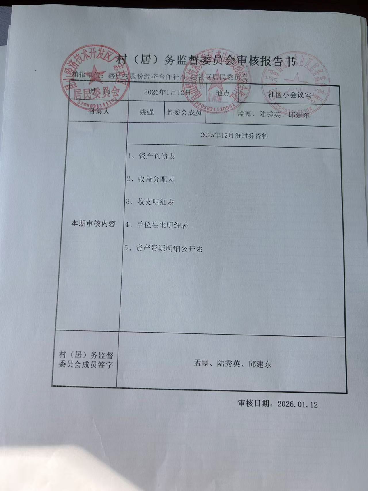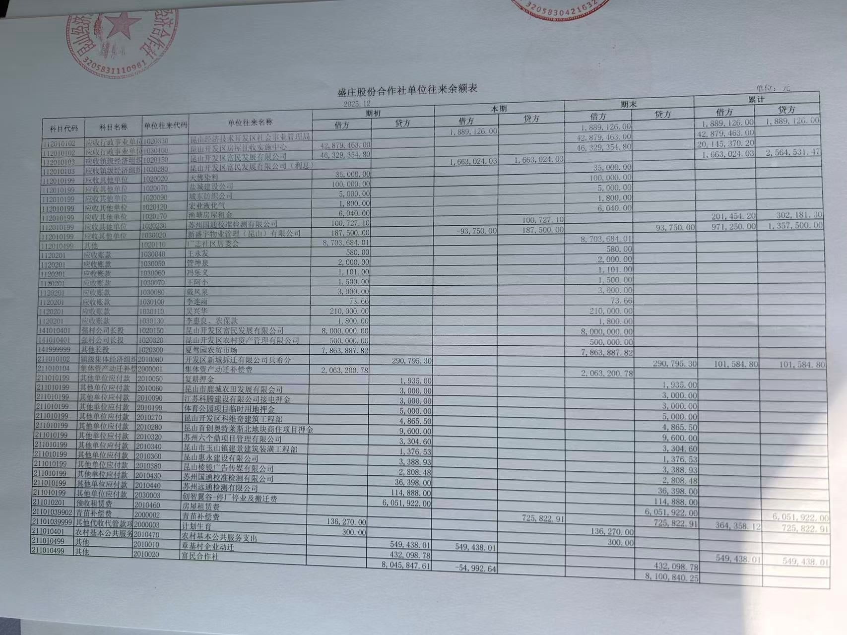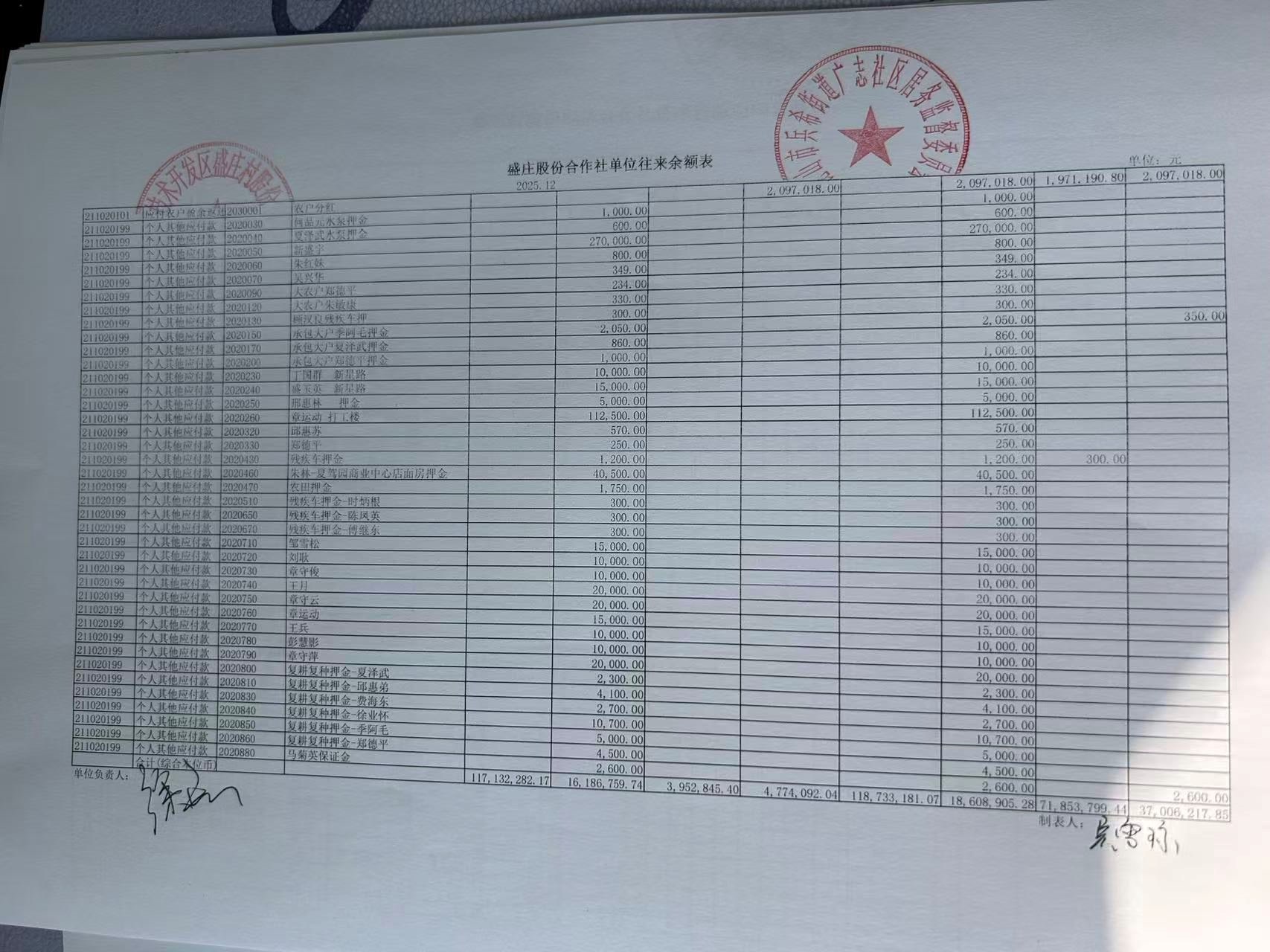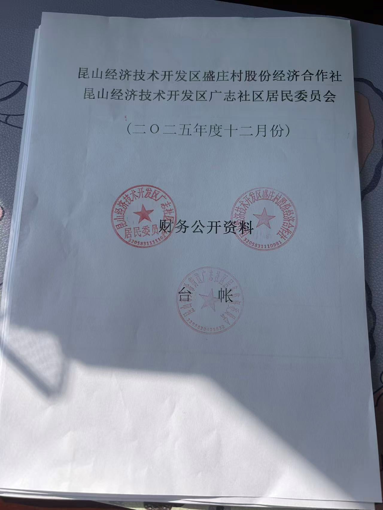 2025年12月份盛庄村股份经济合作社财务公开资料