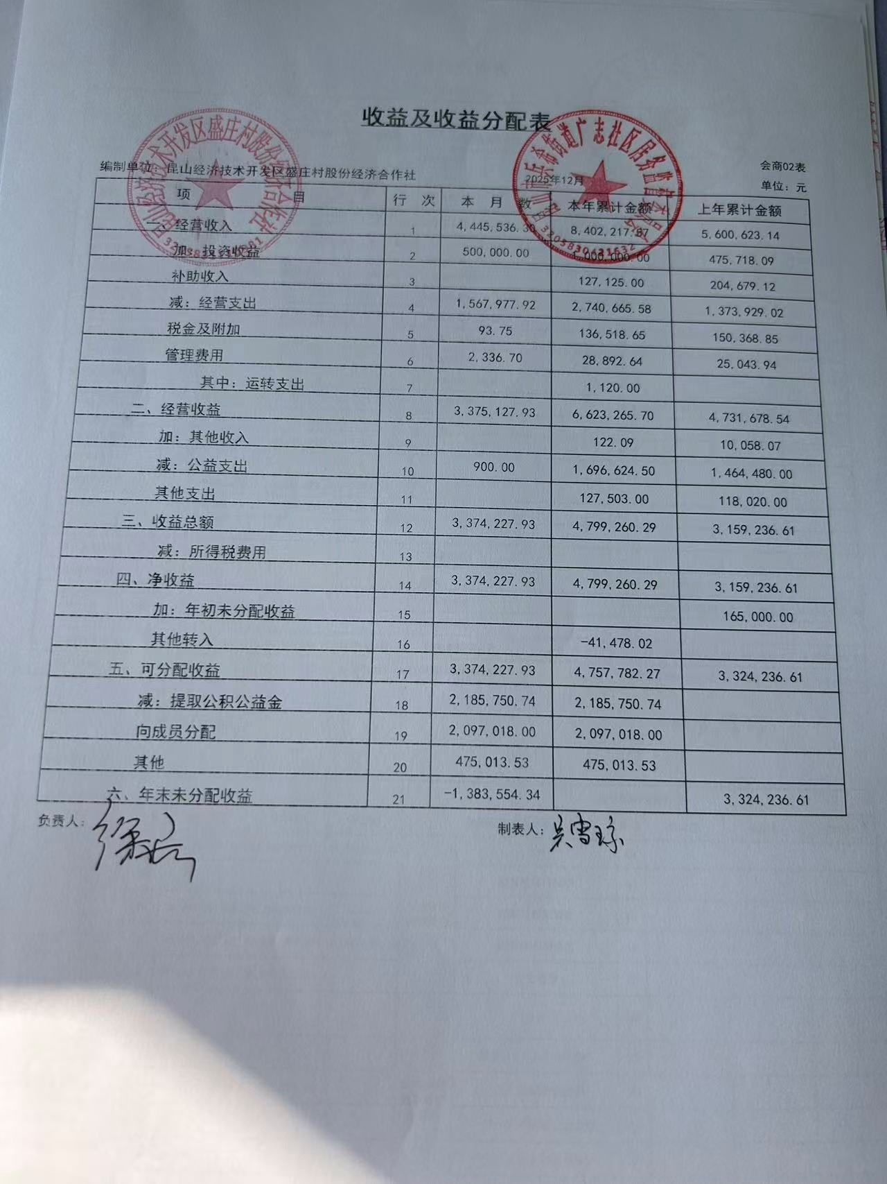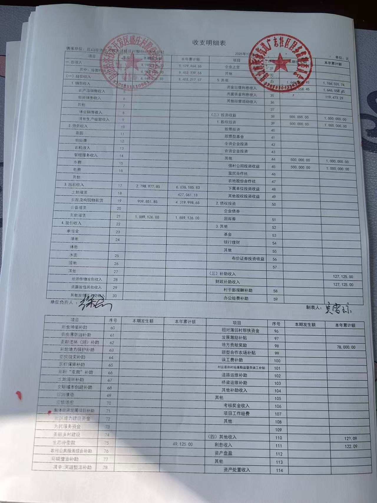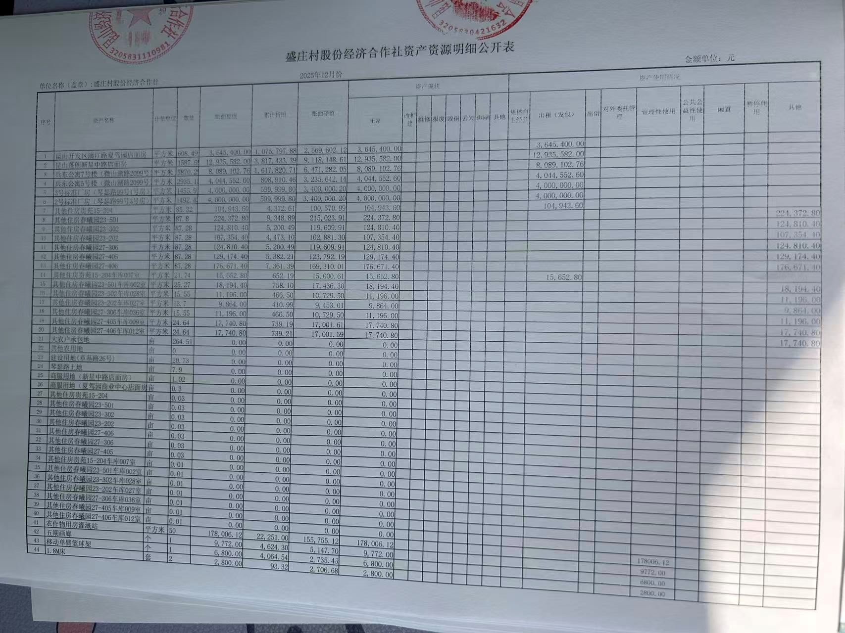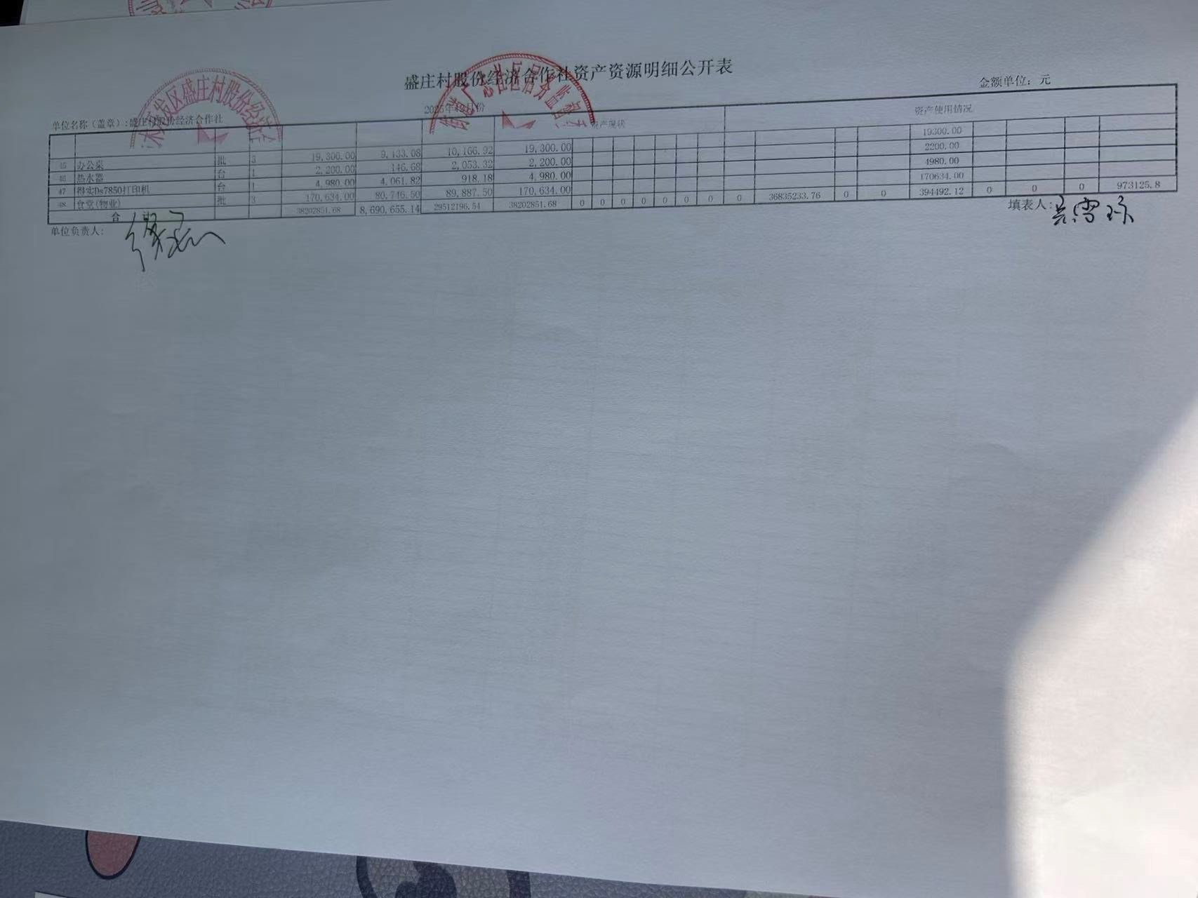 2025年12月份盛庄村股份经济合作社财务公开资料
