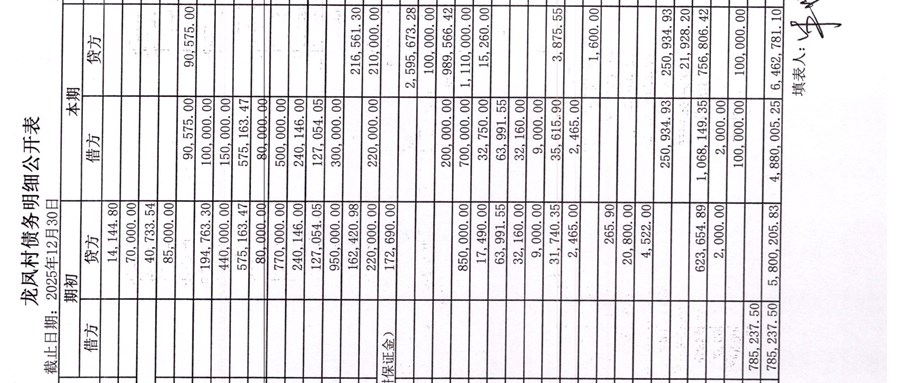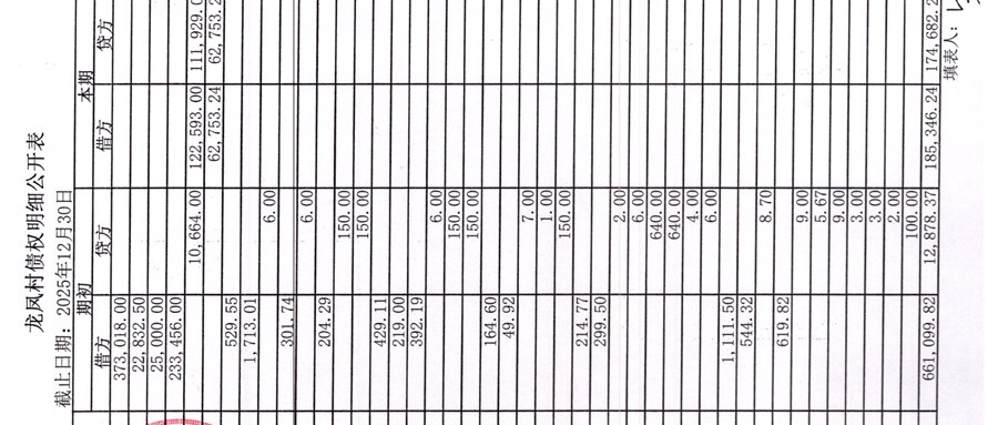 龙凤村村委会2026年1月份财务公开