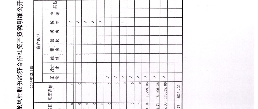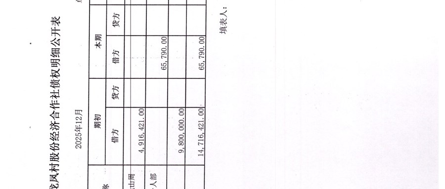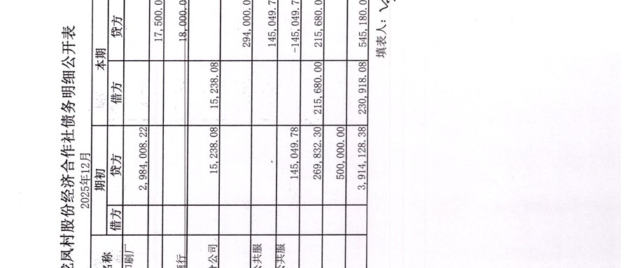 龙凤村股份经济合作社2026年1月份财务公开