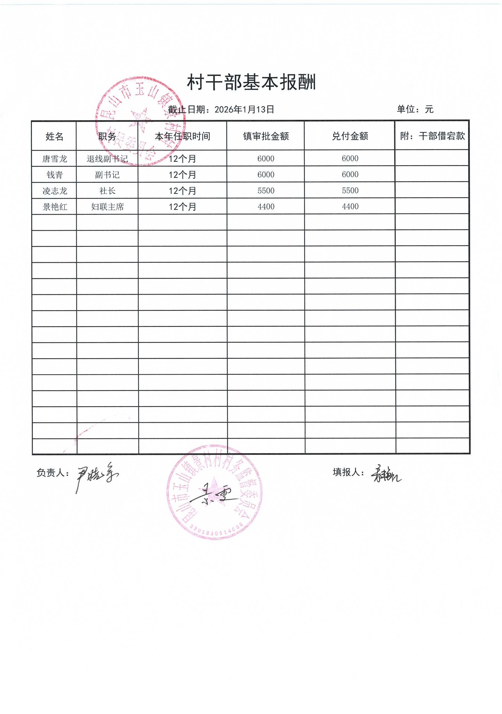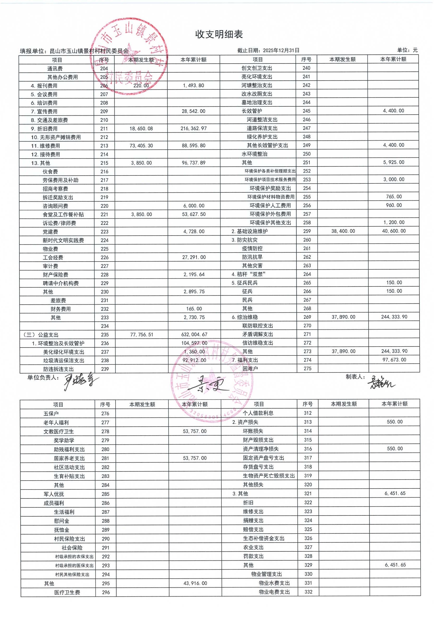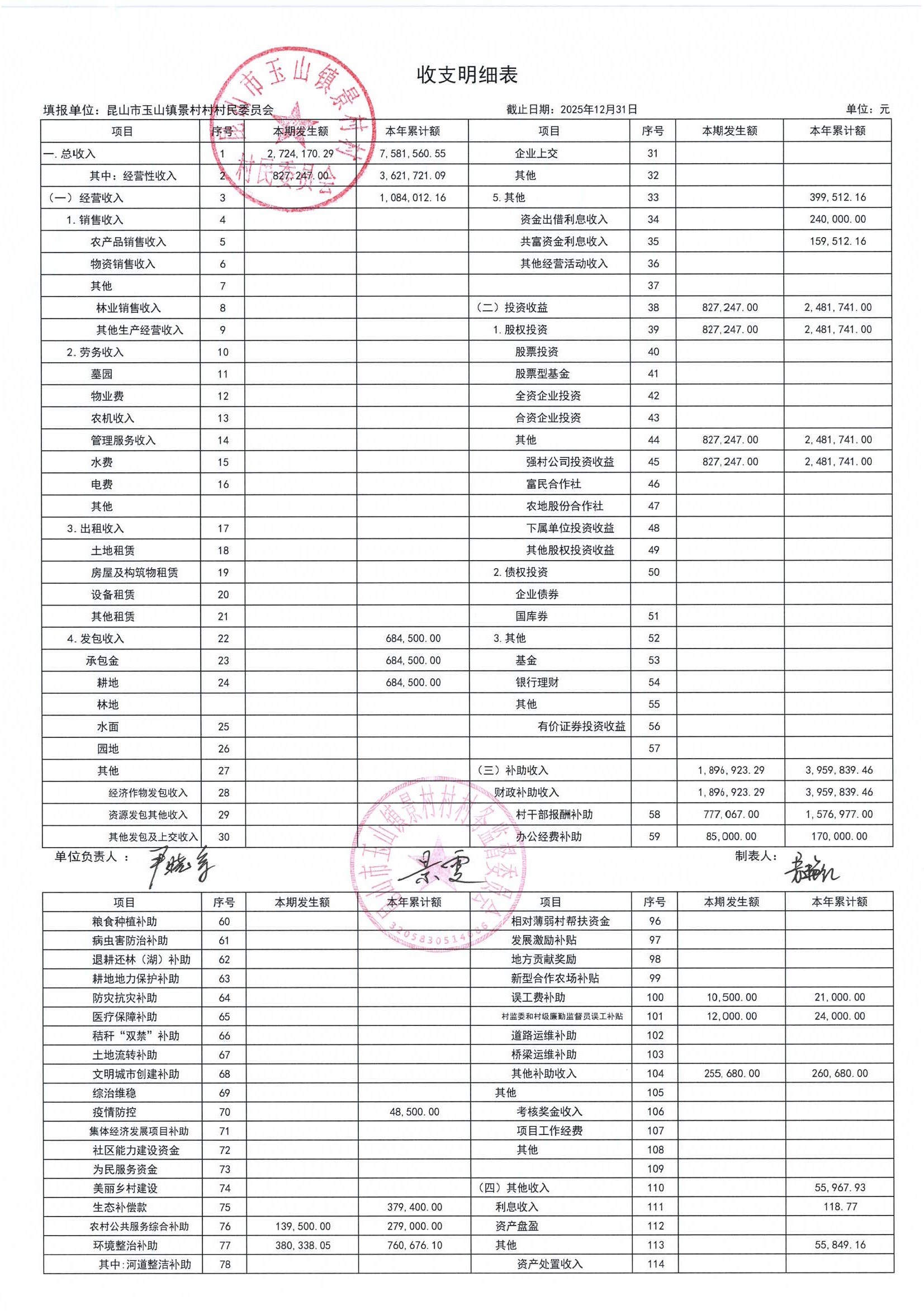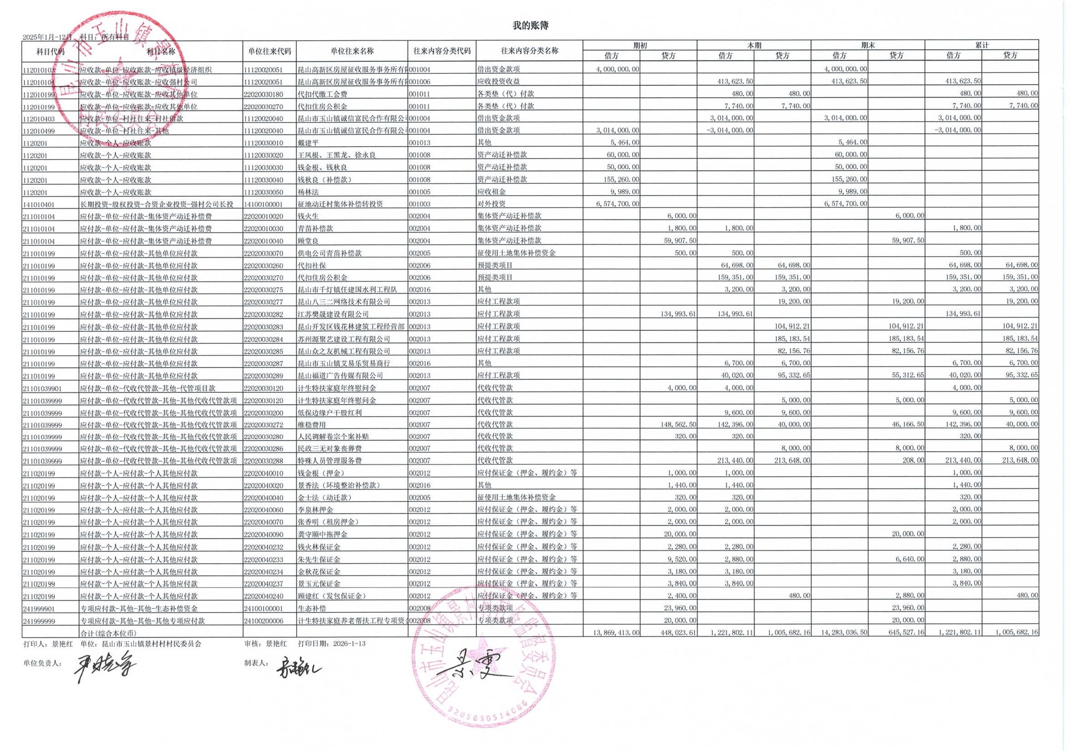 高新区景村村委会2026年1月财务公开: